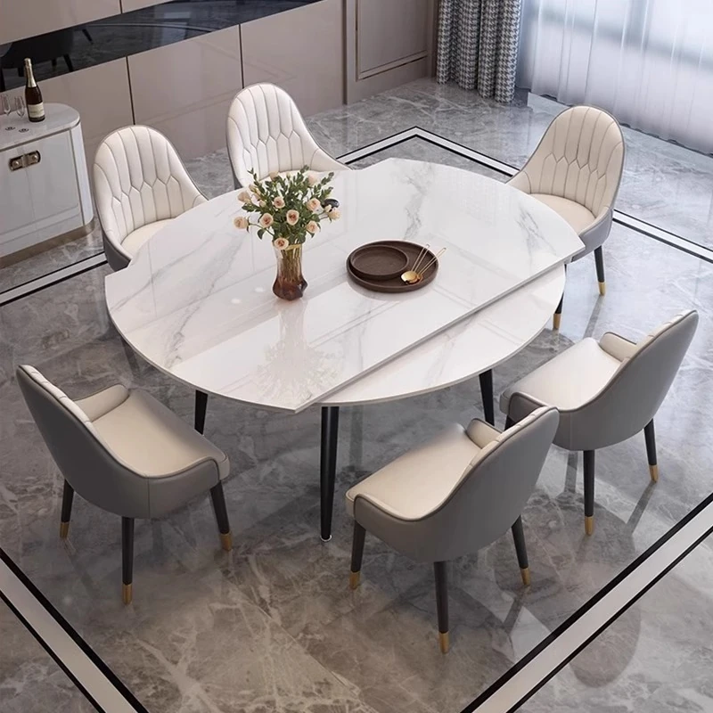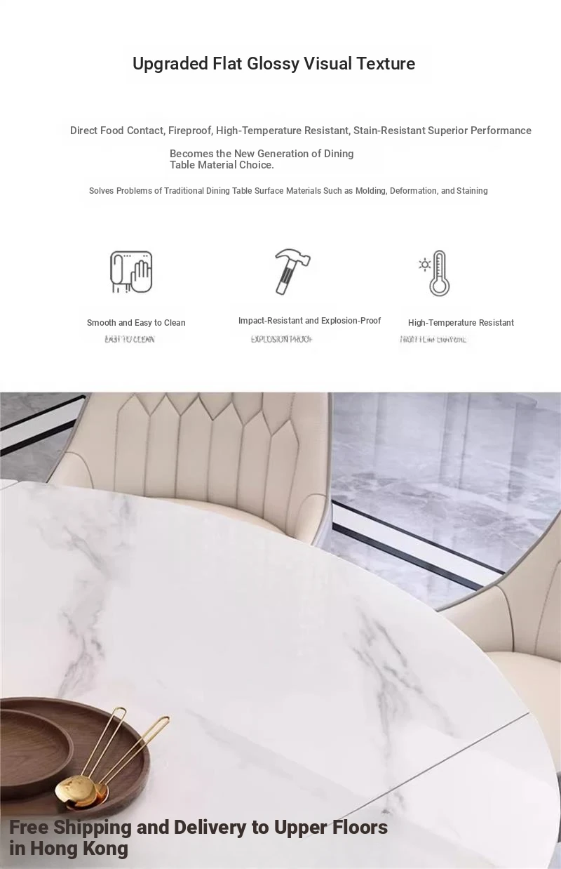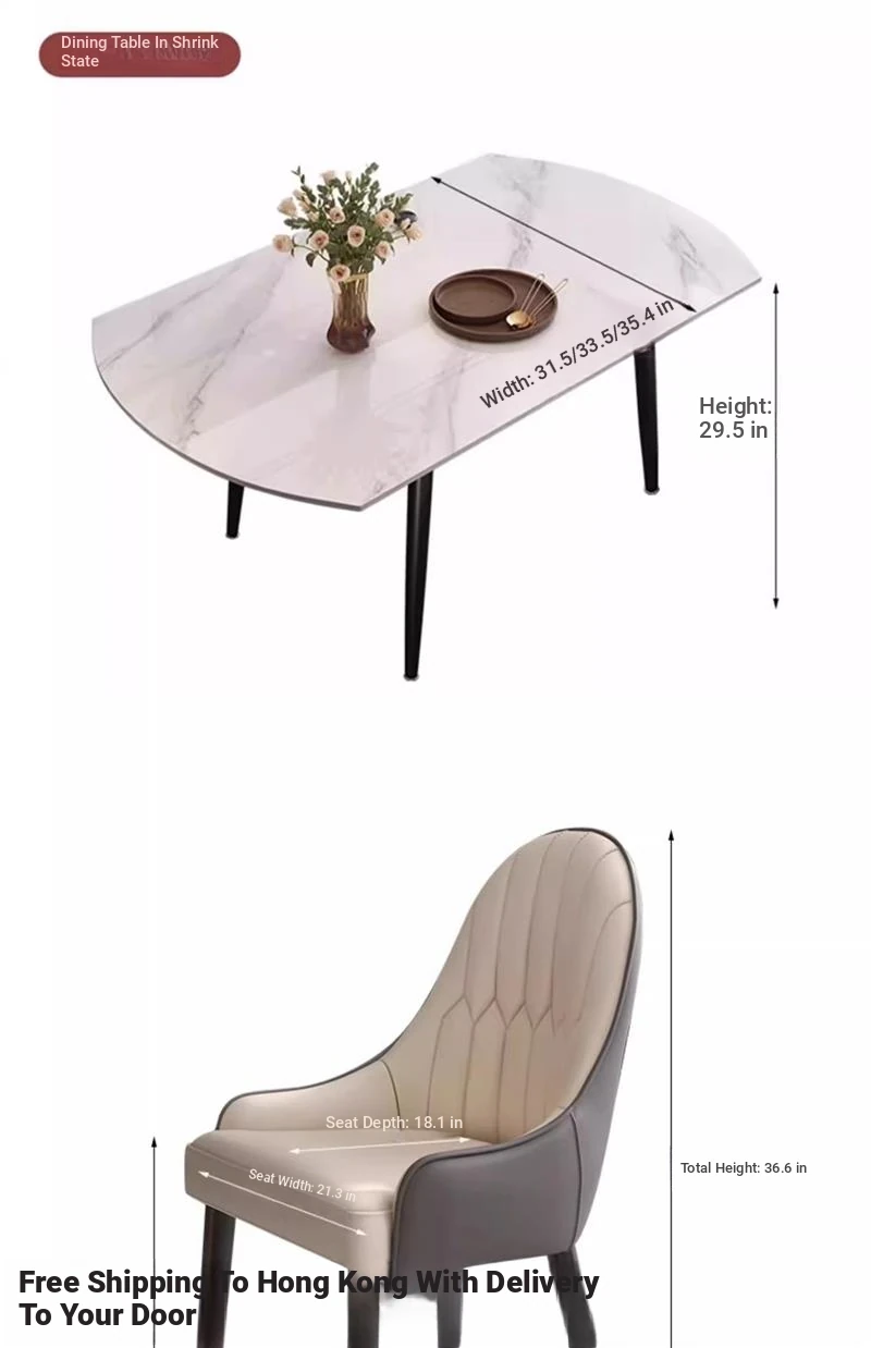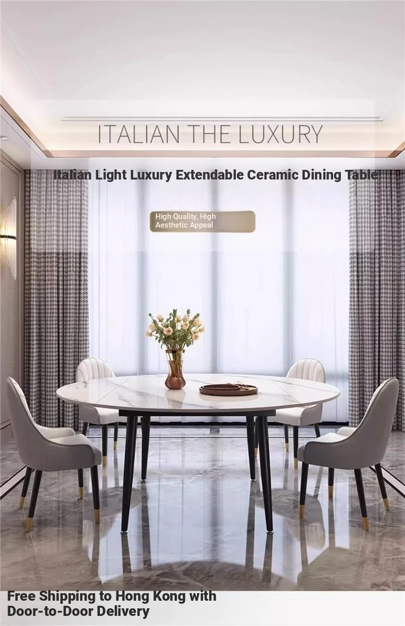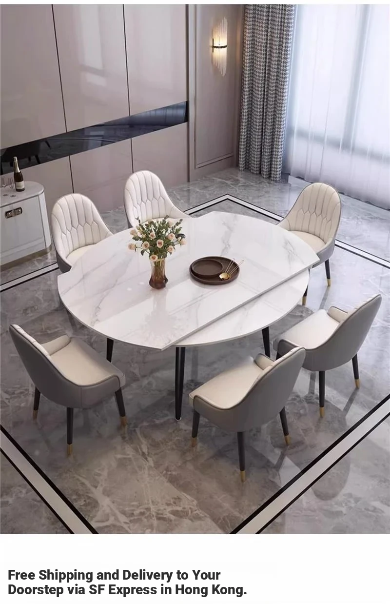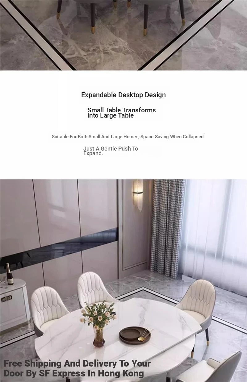 "Modern Minimalist Dining Table and Chair Set - Wen Nuo Hong Kong Style, Lightweight Luxury for Small Spaces, Extendable Design Perfect for Home Use"