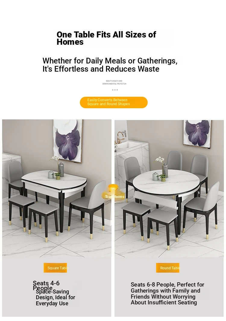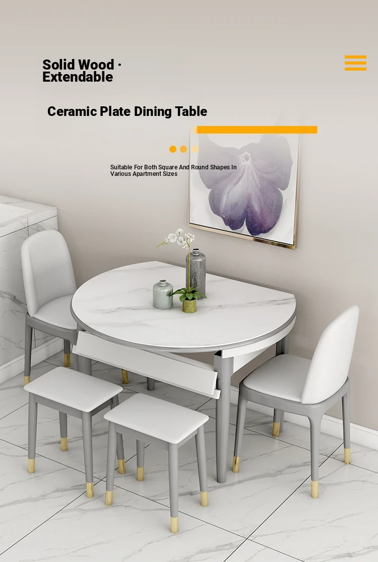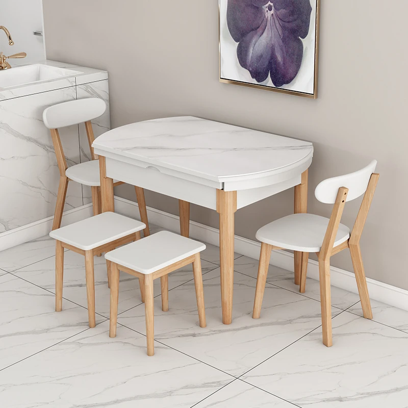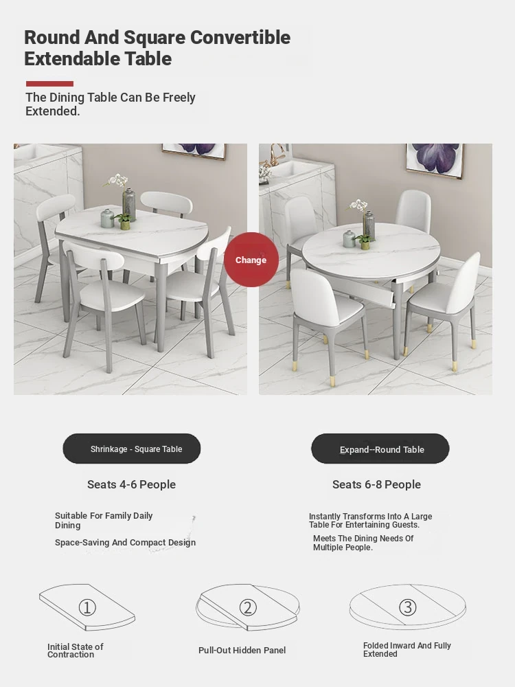 Modern Minimalist Folding Solid Wood Dining Table - Expandable and Versatile Square to Round Design for Small Spaces, Perfect for Stylish Homes