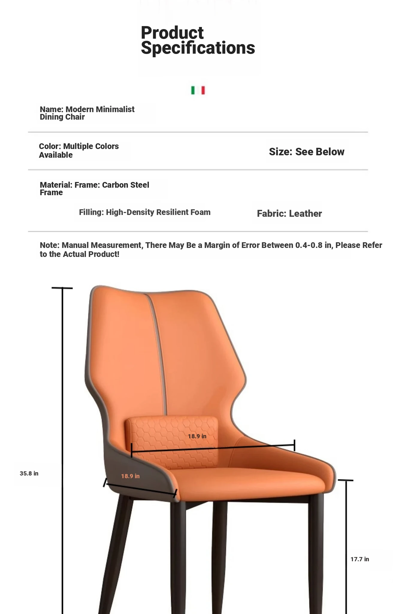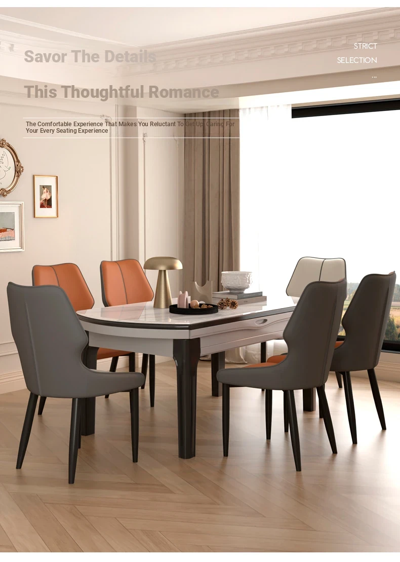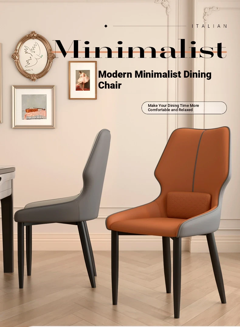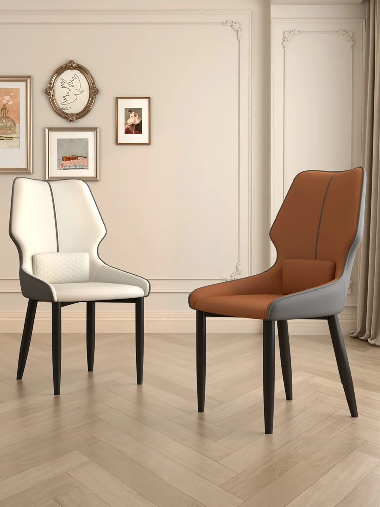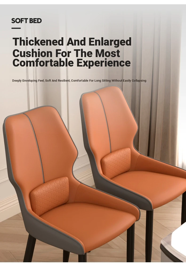 Modern Minimalist Soft Luxury Leather Dining Chairs - Stylish and Comfortable Home Dining Set with Backrest for Dining Rooms and Conversations