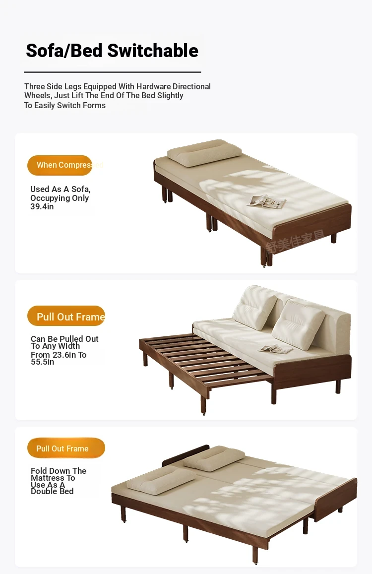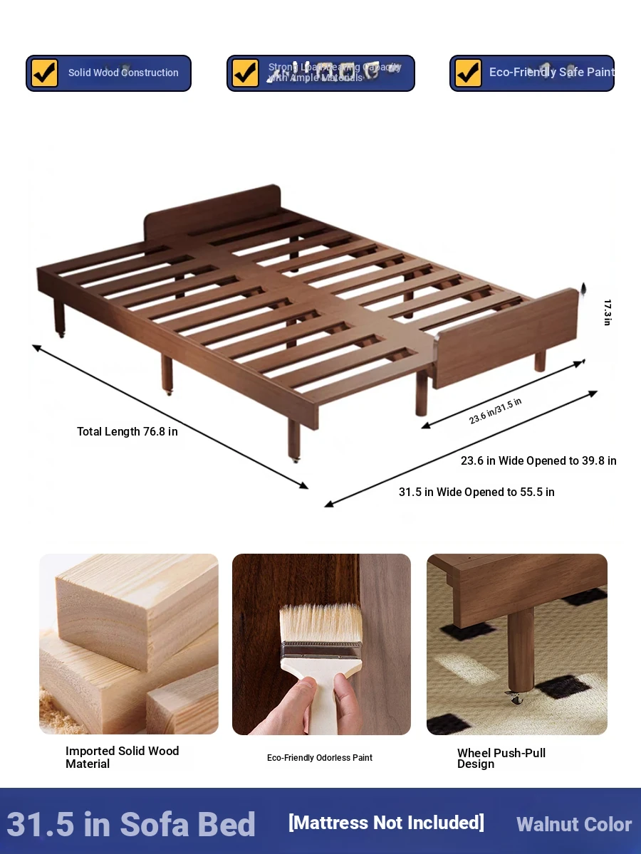 31.50in sofa bed + [cotton sponge cushion] send backrest + pillow walnut color