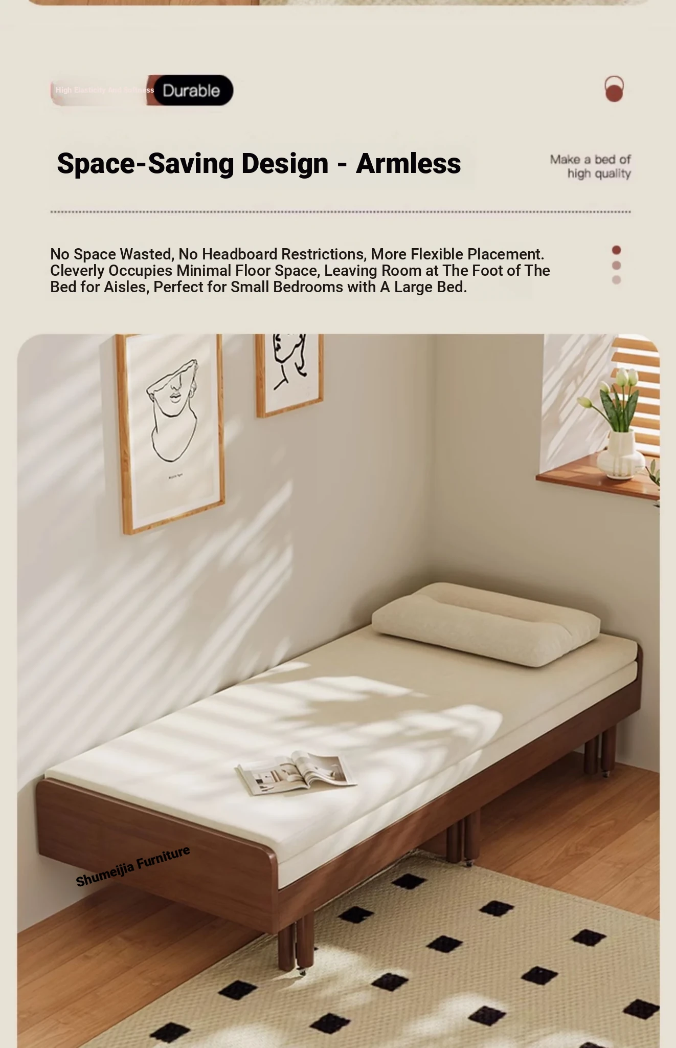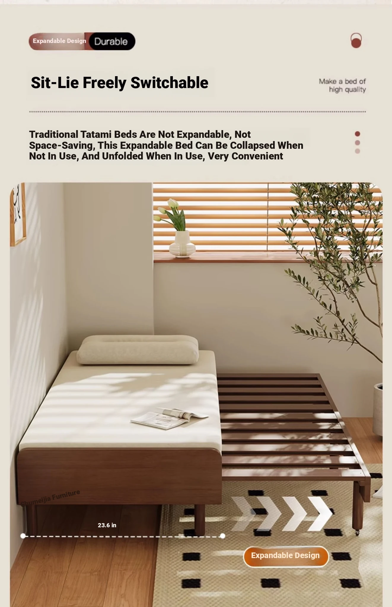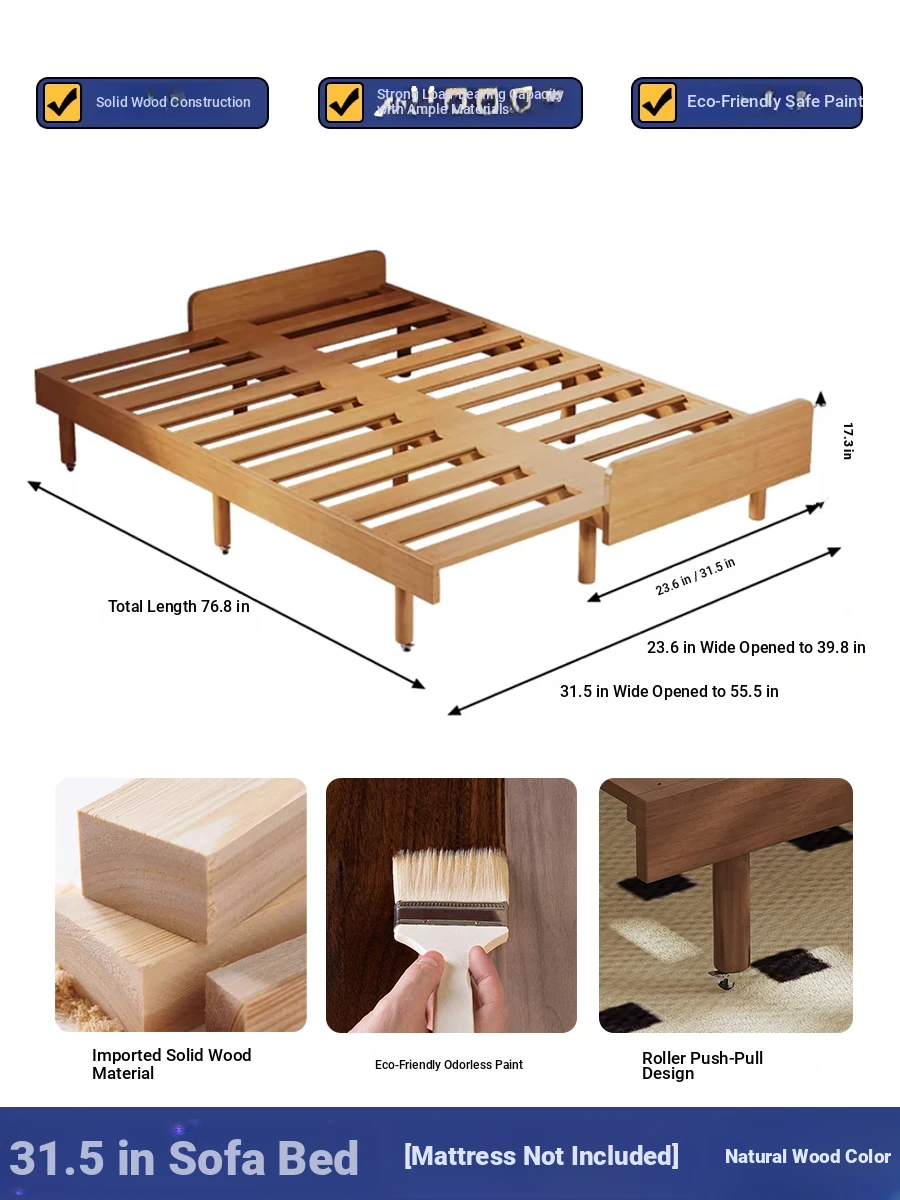23.62in sofa bed [without cushion] cherry wood color