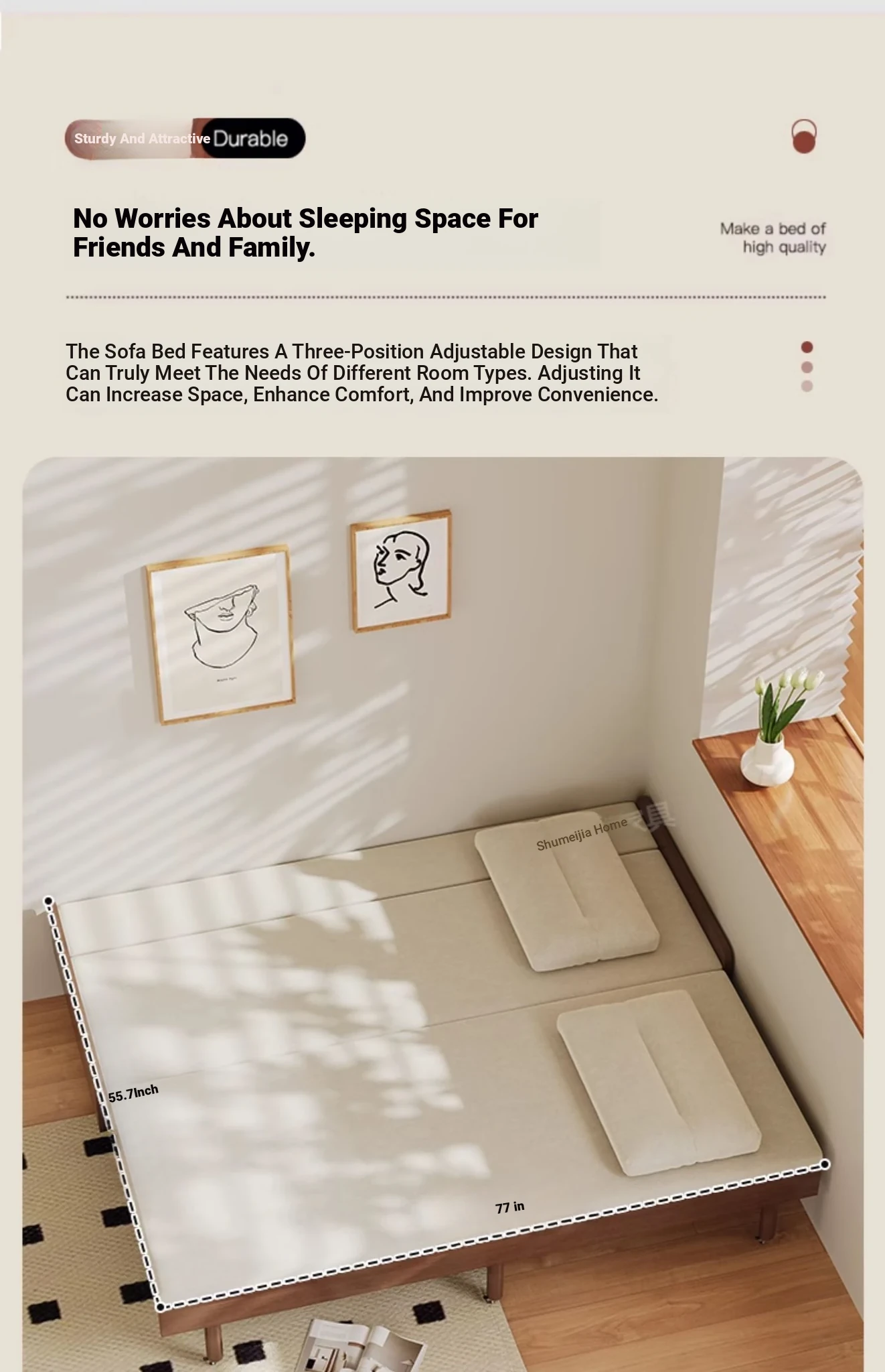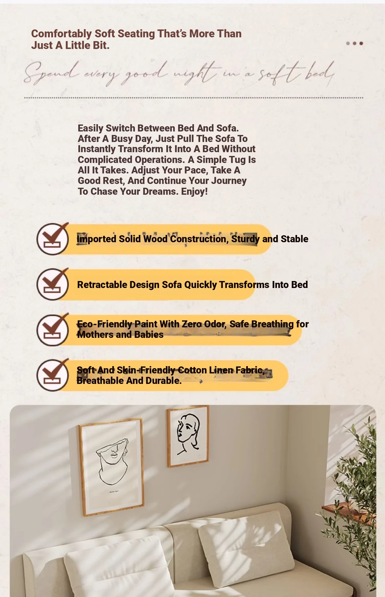 31.50in sofa bed + [cotton and linen sponge cushion] send backrest + pillow cherry wood color