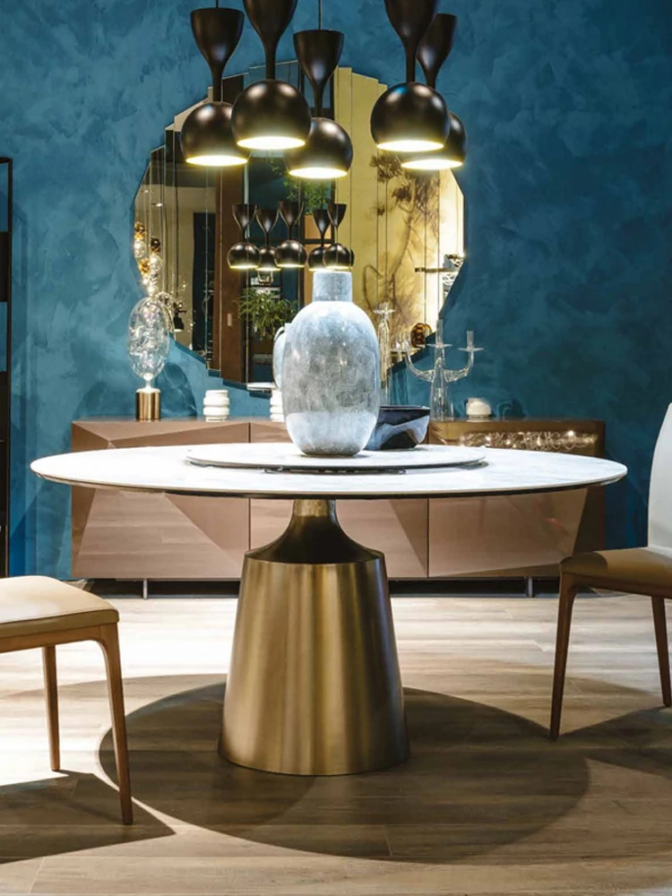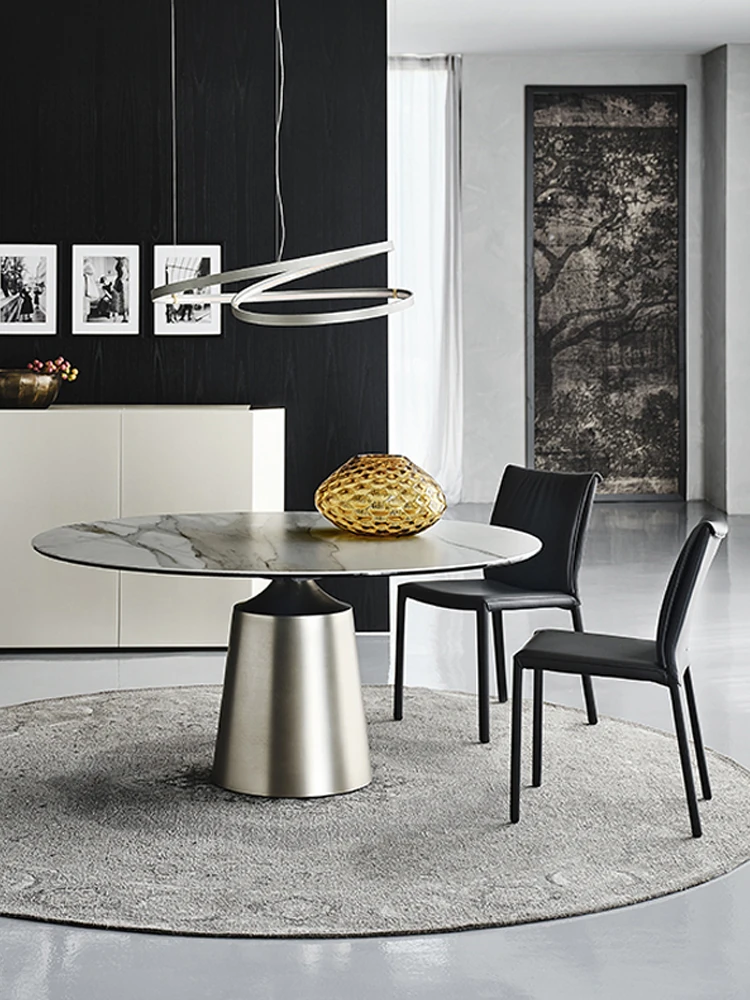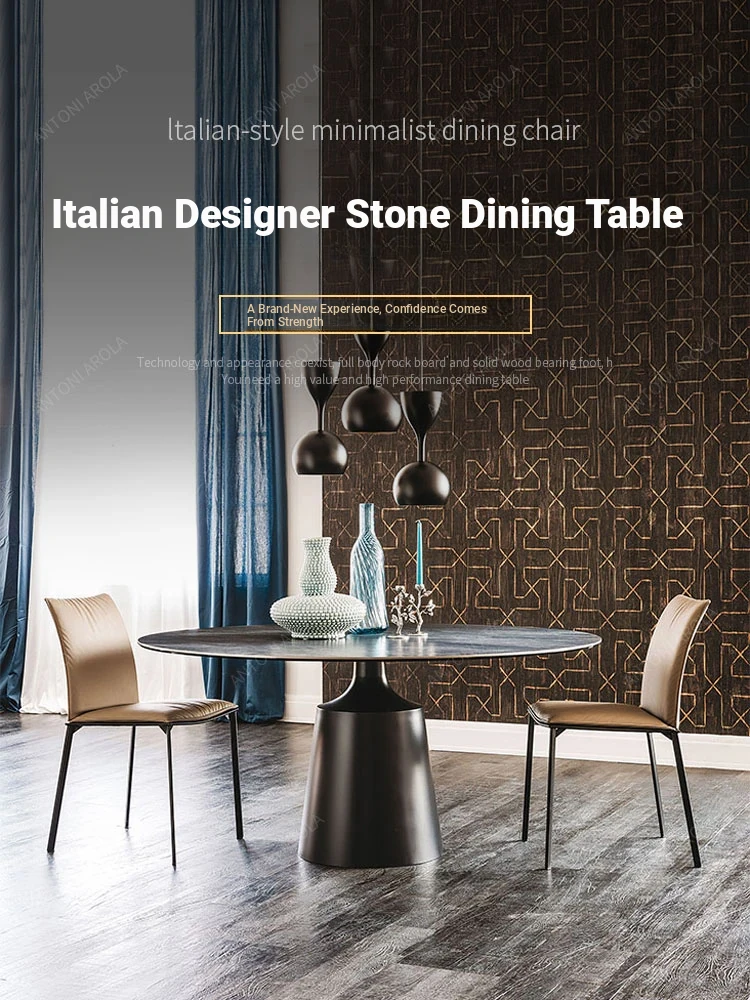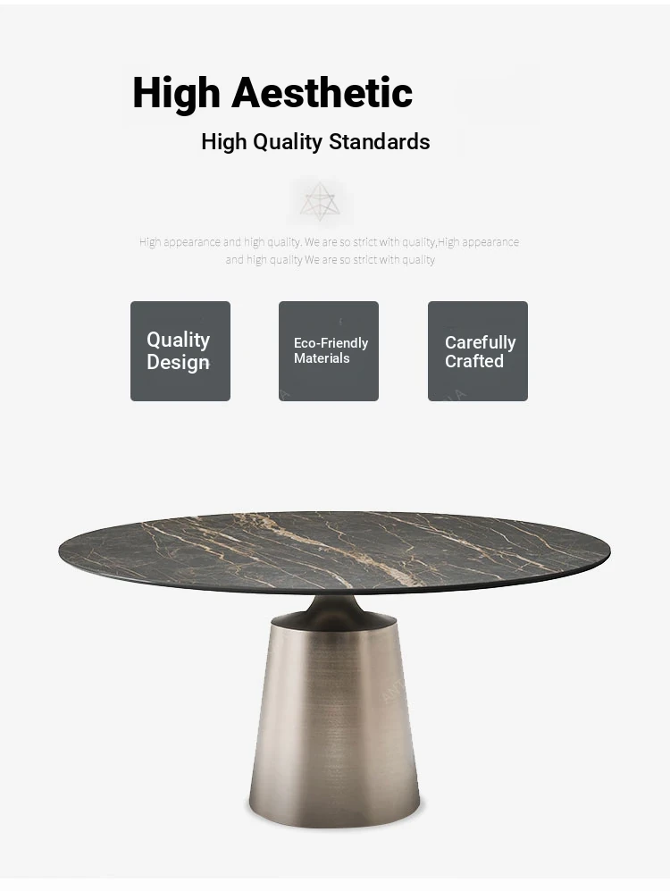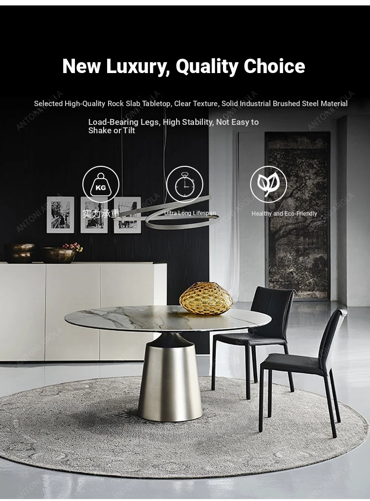Nordic Designer Luxury Round Dining Table - Modern Minimalist Stainless Steel Rock Slab Table for Home, Seats 6-10, Perfect for Stylish Gatherings
