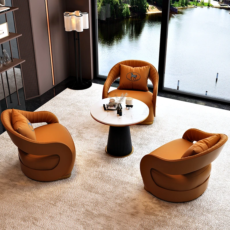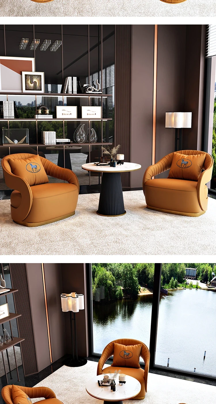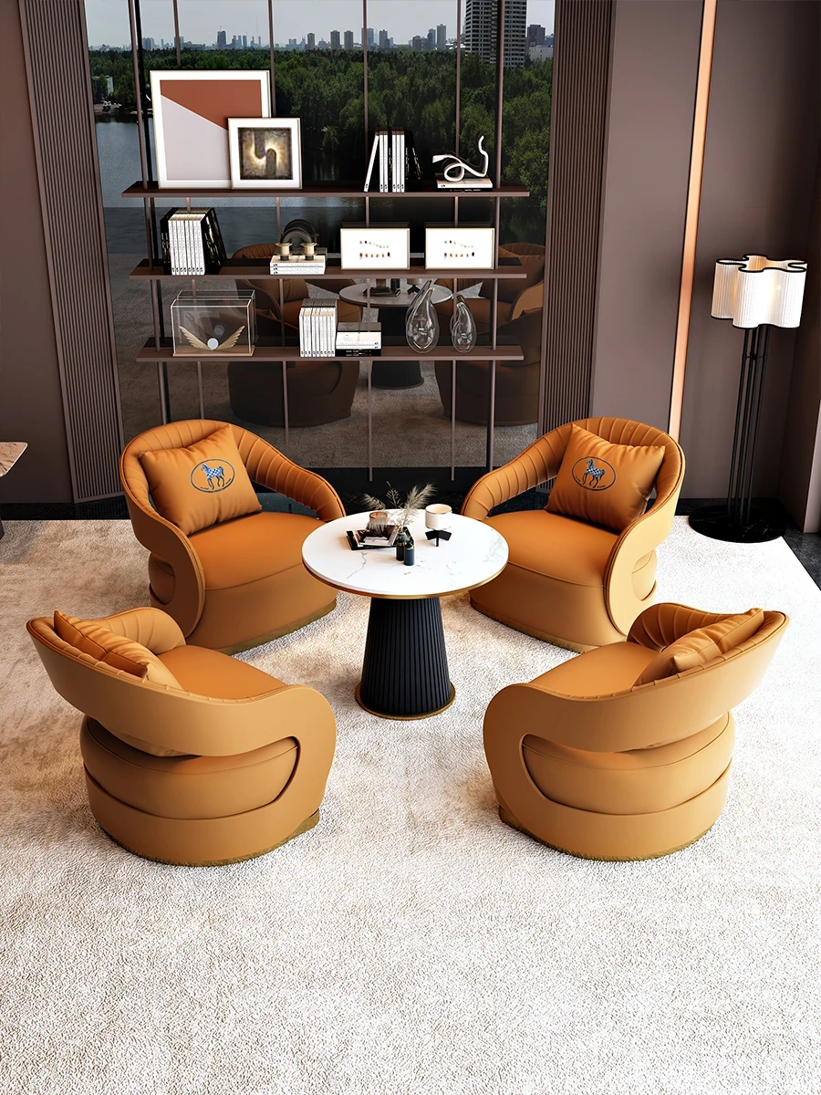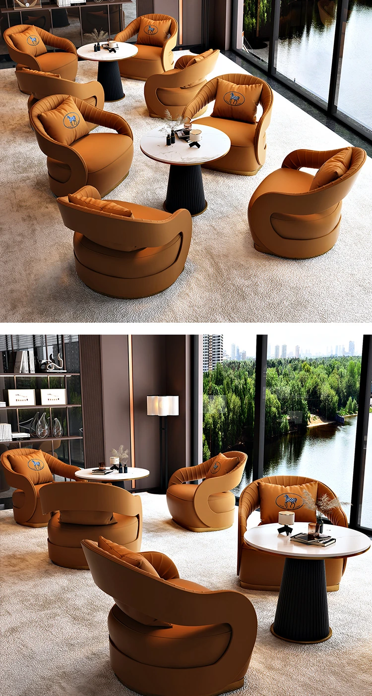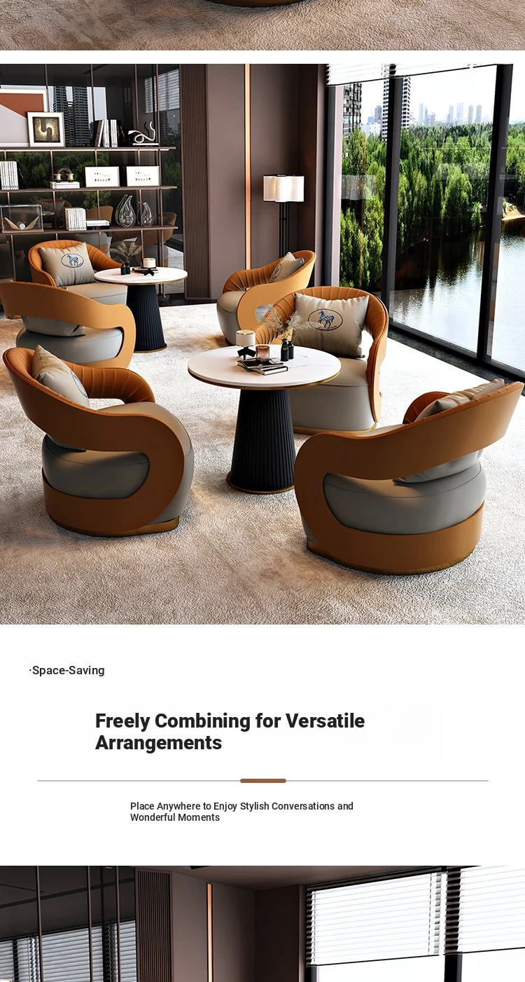Nordic Leather Reception Sofa - Modern Lounge Furniture for Beauty Salons, Hotels, Sales Offices, and Relaxation Areas - Stylish and Comfortable Seating for Conversations and Meetings