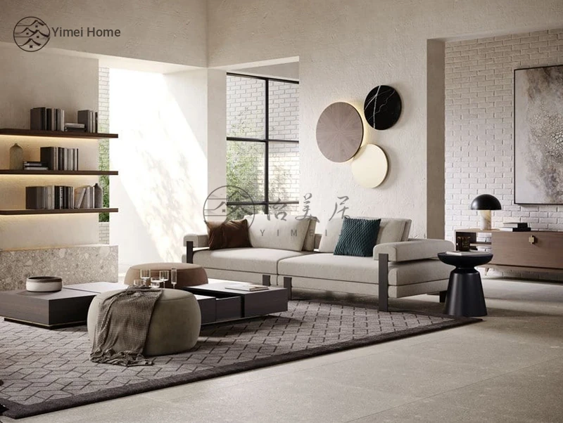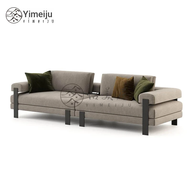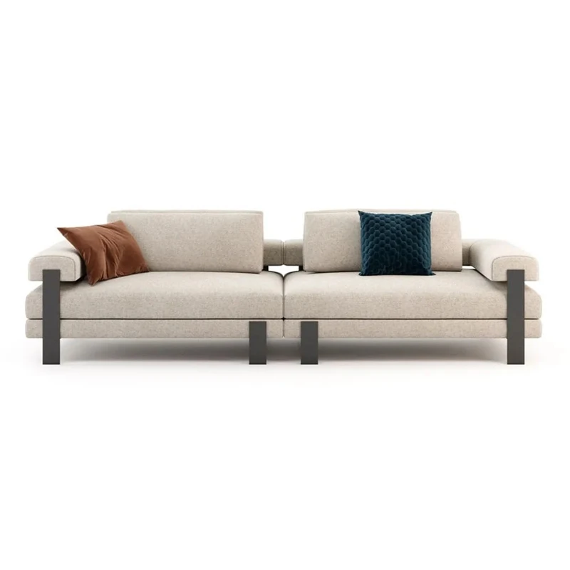 Nordic Luxury Upholstered Sofa with Metallic Elements - Italian Minimalist Design for Stylish Living Rooms, Perfect for Reception and Meeting Spaces