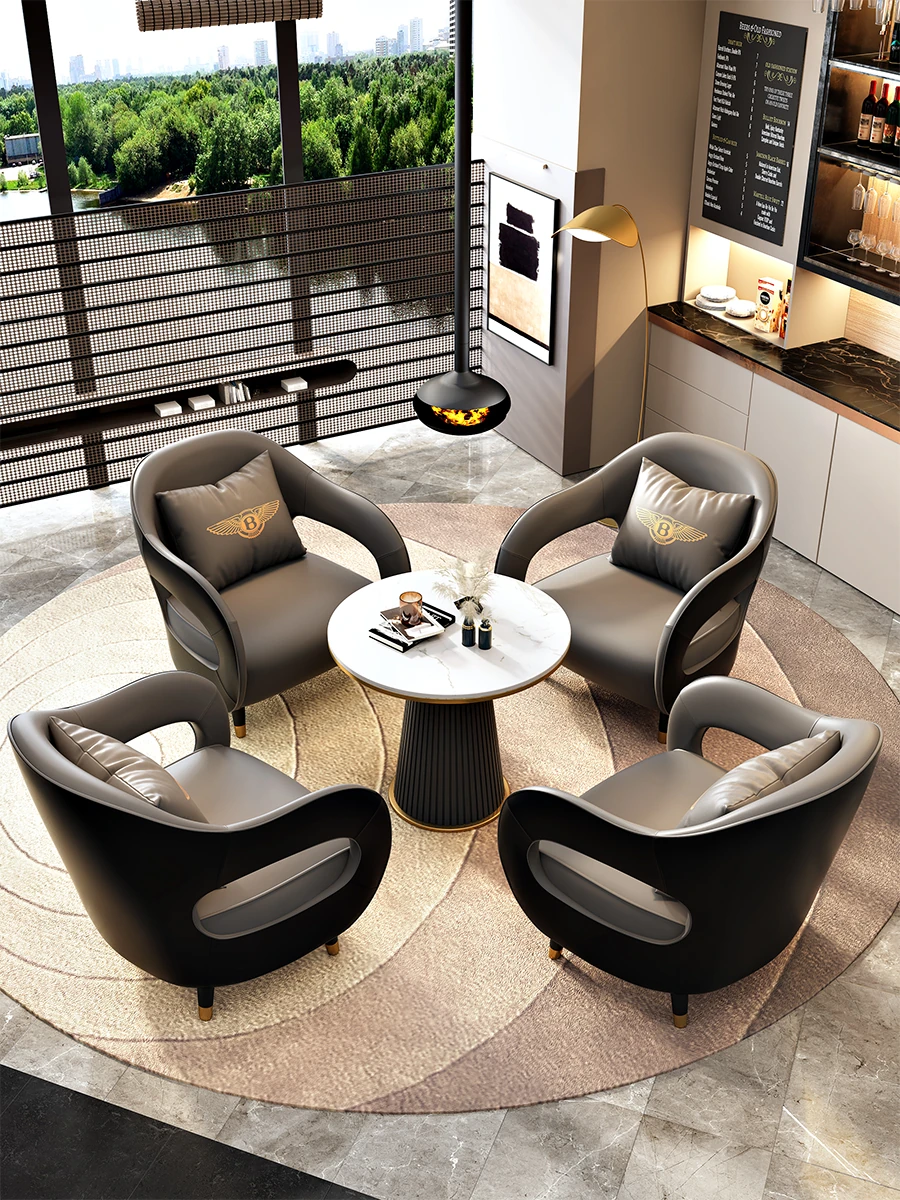 Nordic Reception Desk and Chair Set - Modern Casual Meeting Sofa with Small Round Table - Minimalist Business Negotiation Sofa Combo
