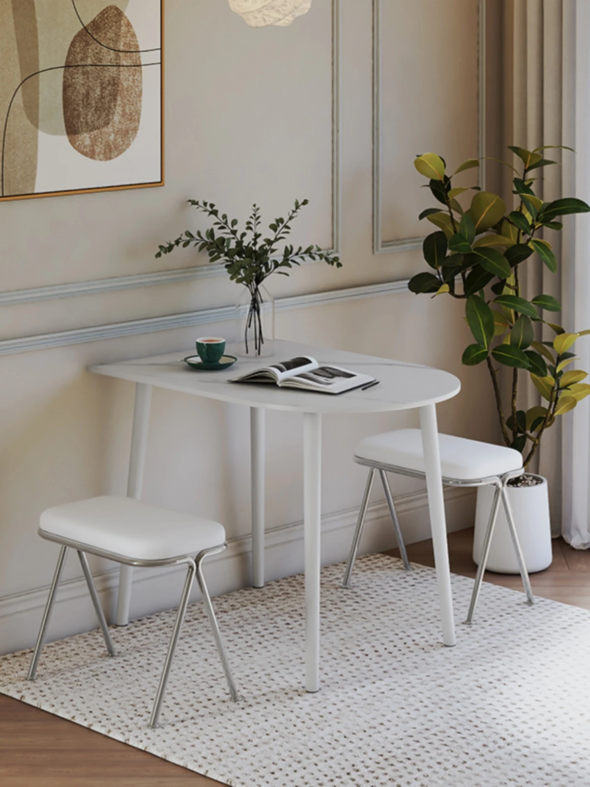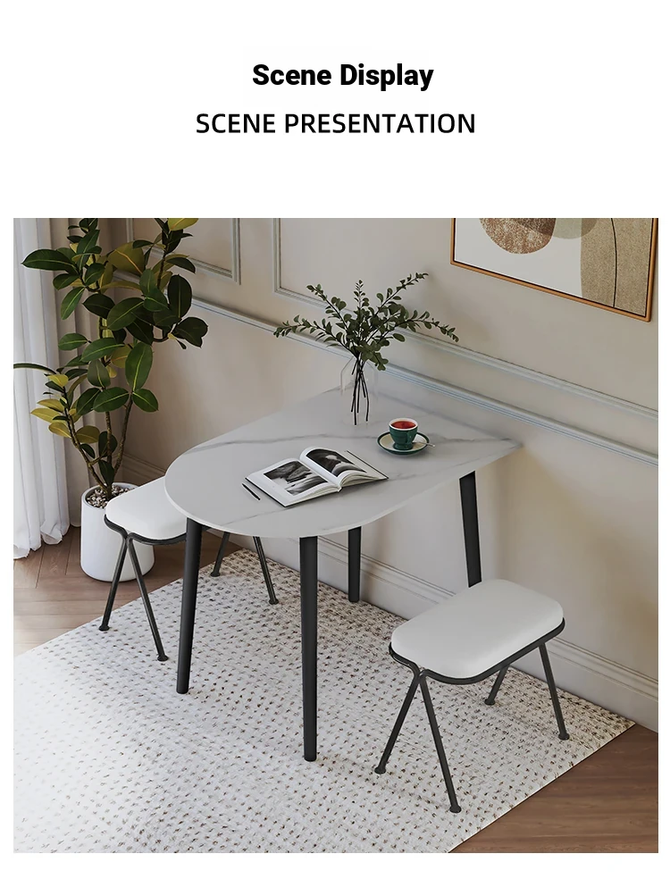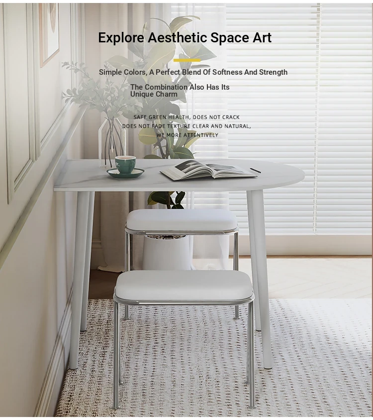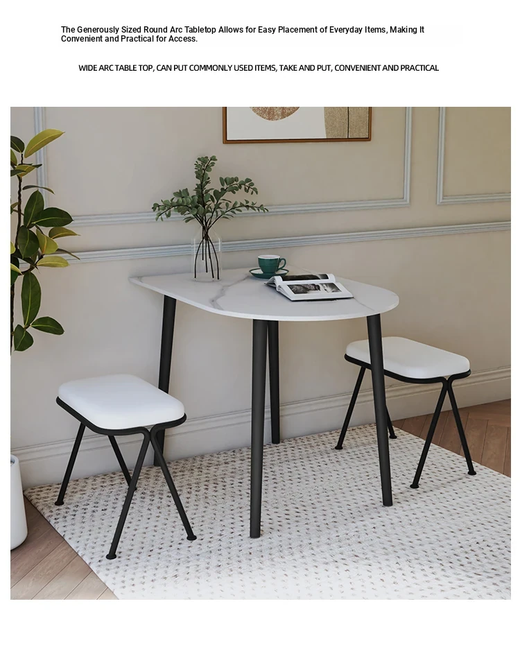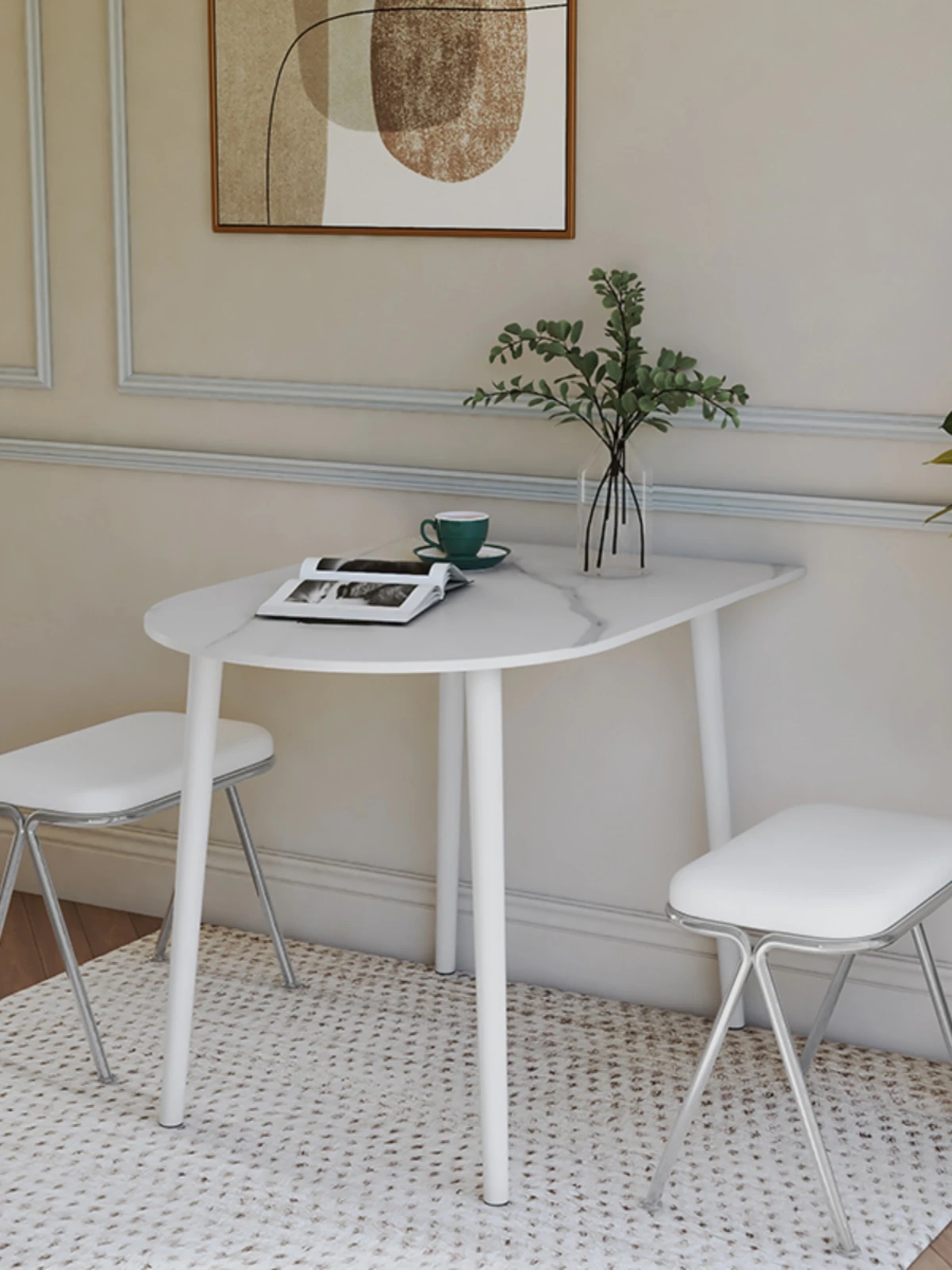 Nordic Style White Semi-Circular Dining Table for Small Spaces – Versatile Rock Plate Table, Perfect for Dining or Study, Minimalist Modern Design