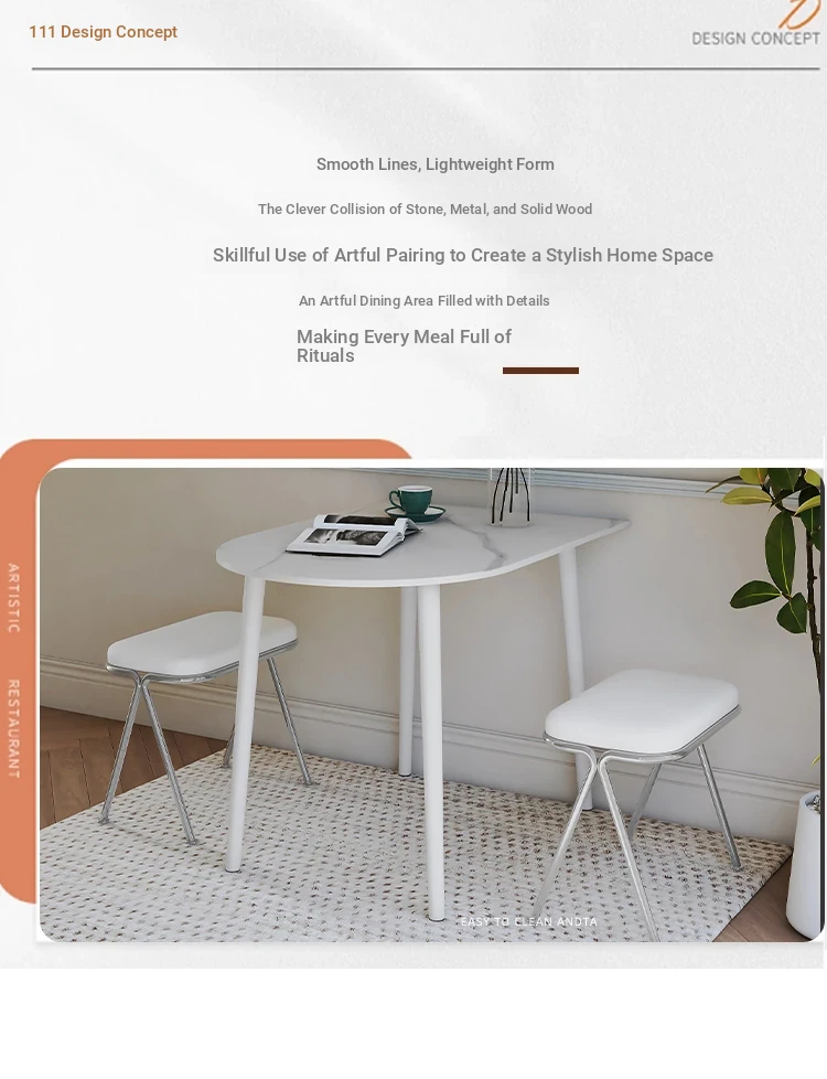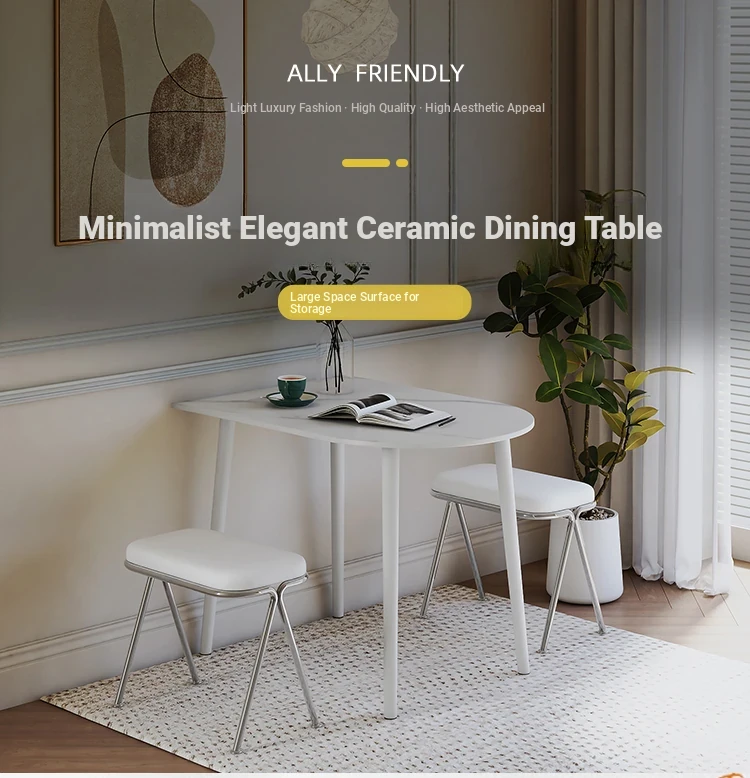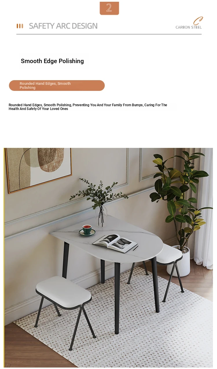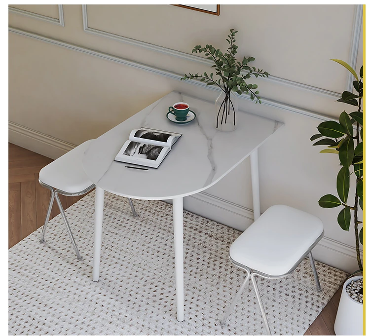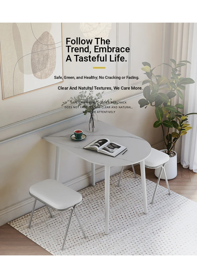 Nordic Style White Semi-Circular Dining Table for Small Spaces – Versatile Rock Plate Table, Perfect for Dining or Study, Minimalist Modern Design