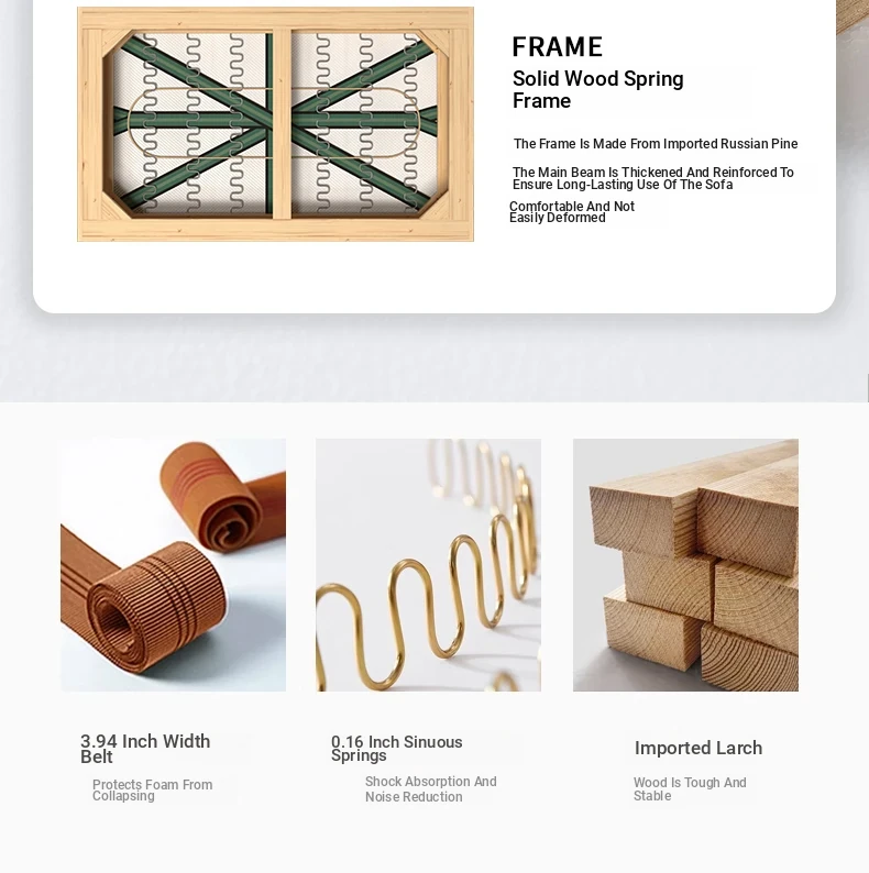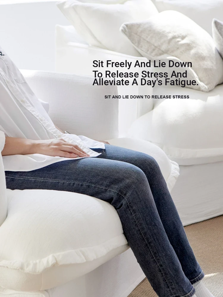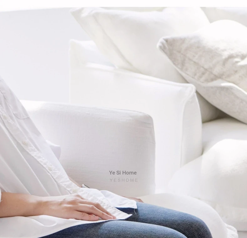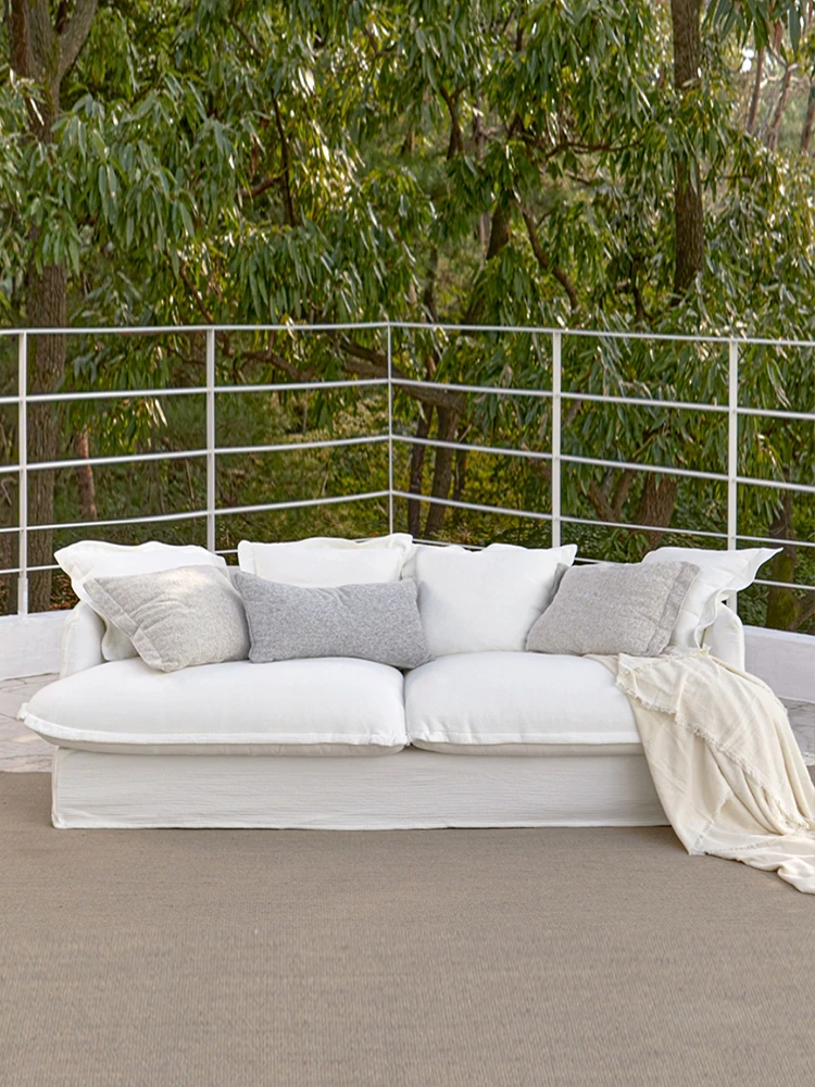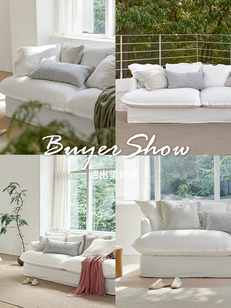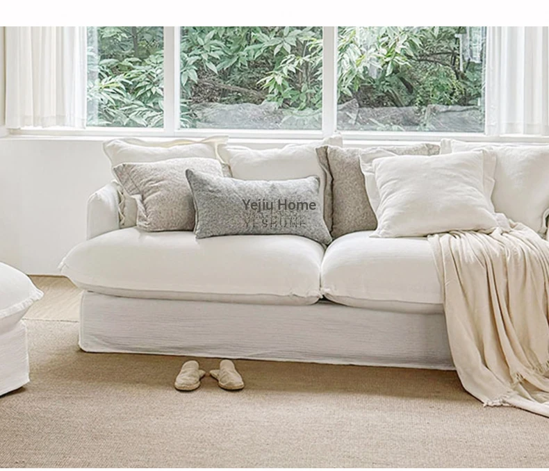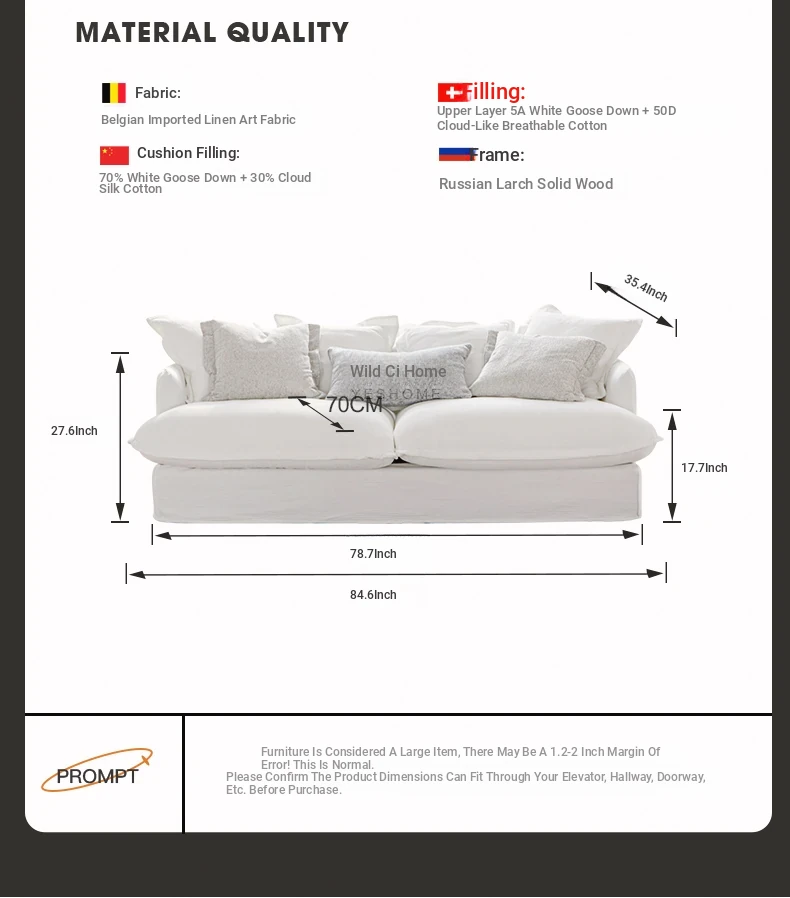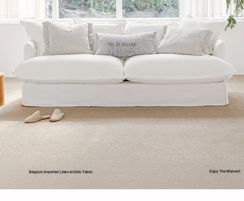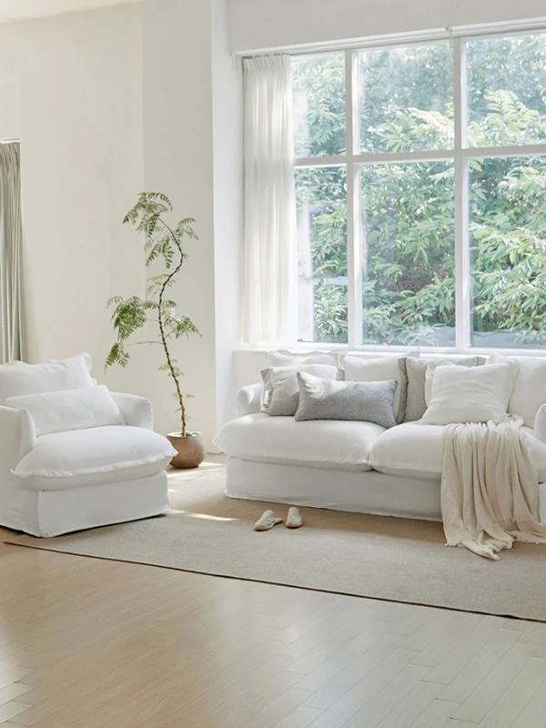 Sole Cloud French Embrace Sofa - Removable & Washable Cotton-Linen Fabric for Small Living Rooms, Three-Seater with Straight Design and Down Filling Comfort