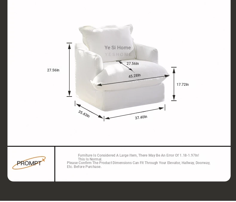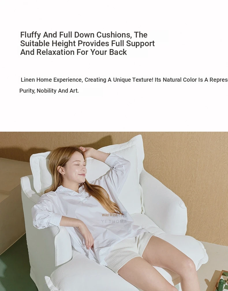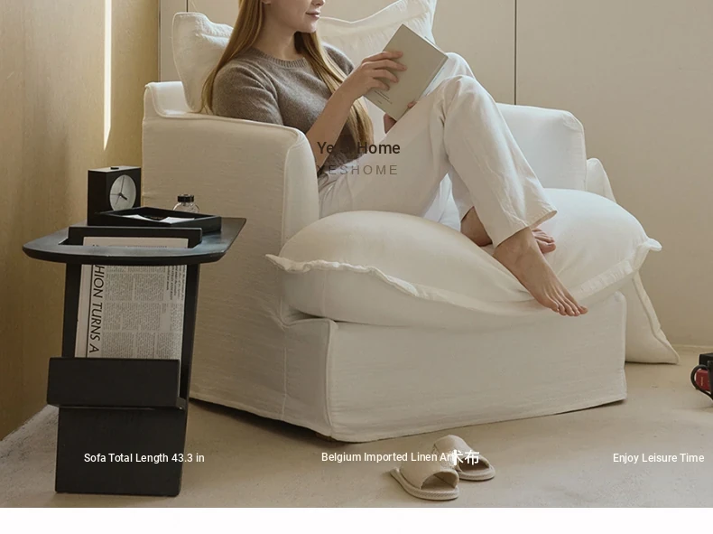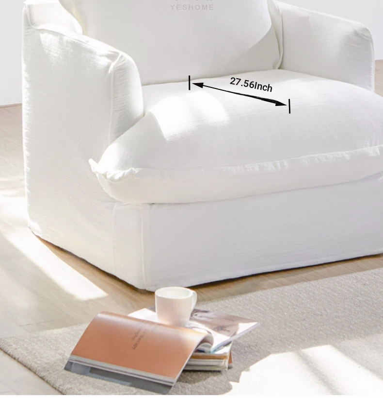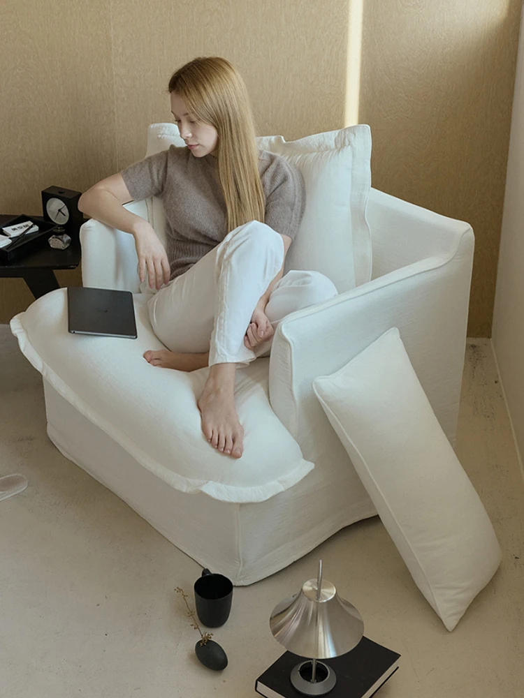 Sole Cloud French-Style White Linen Removable Single Sofa Chair - Cozy and Stylish for Your Balcony or Bedroom, Perfect for Relaxing!