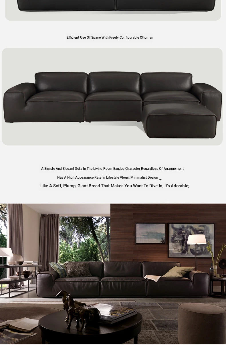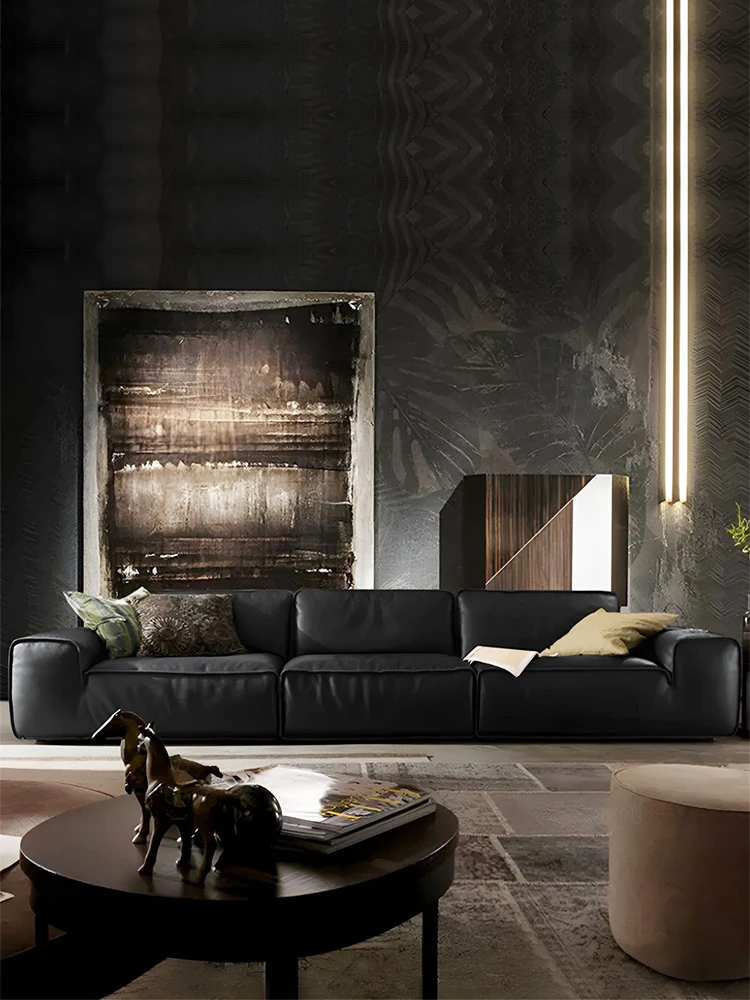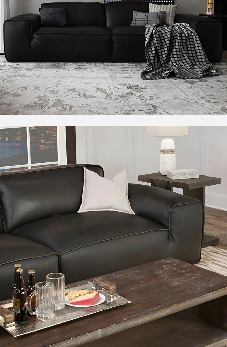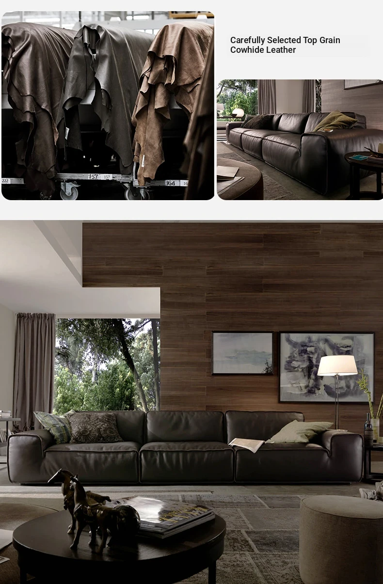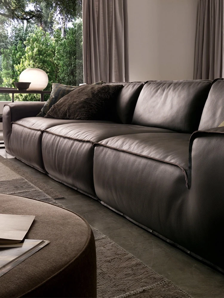 Stylish Italian Minimalist Genuine Leather Sofa - Large and Compact Options for Living Room - Premium Cowhide Sectional Sofa for Modern Homes