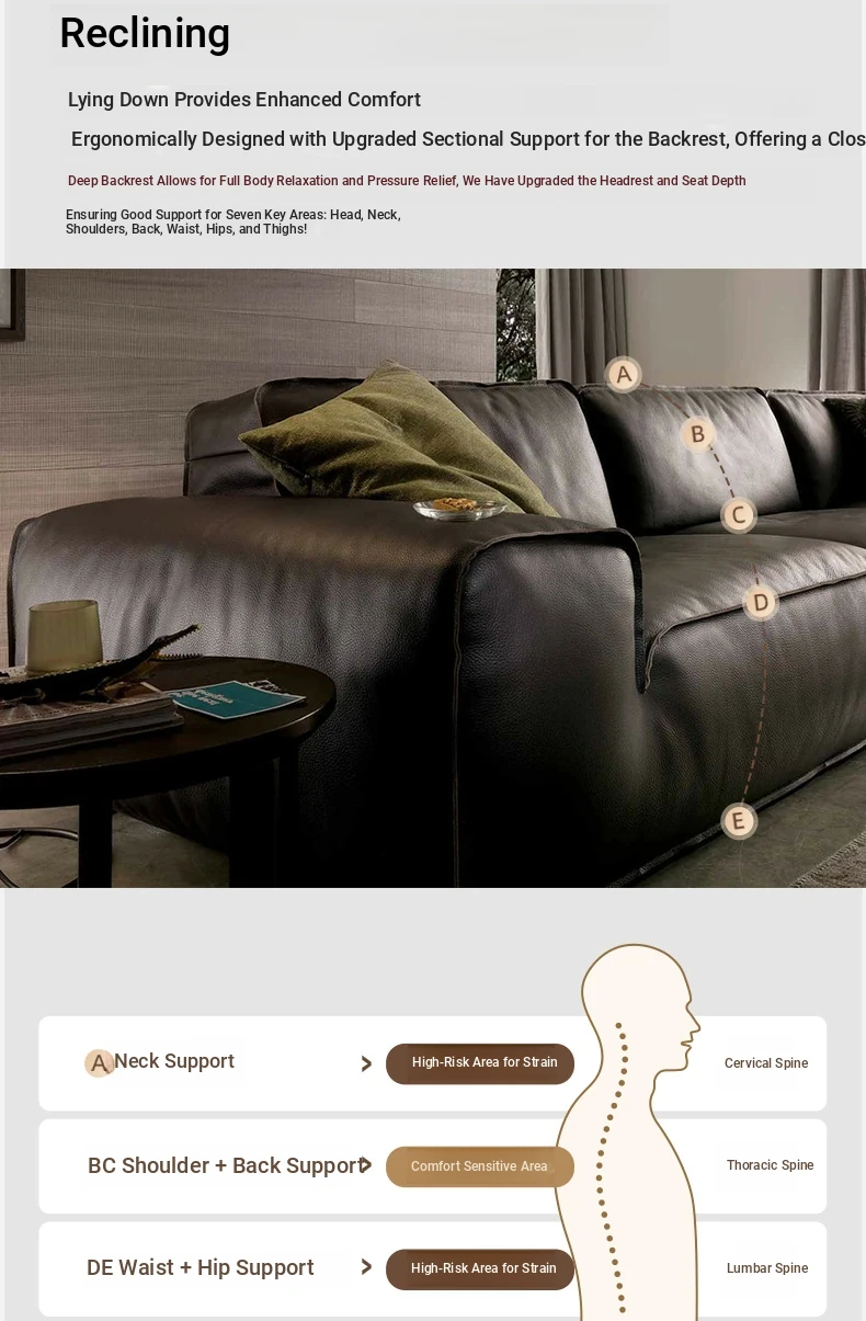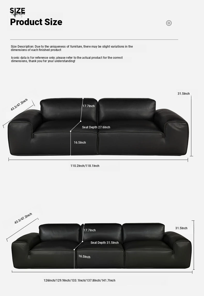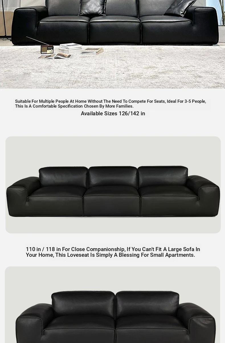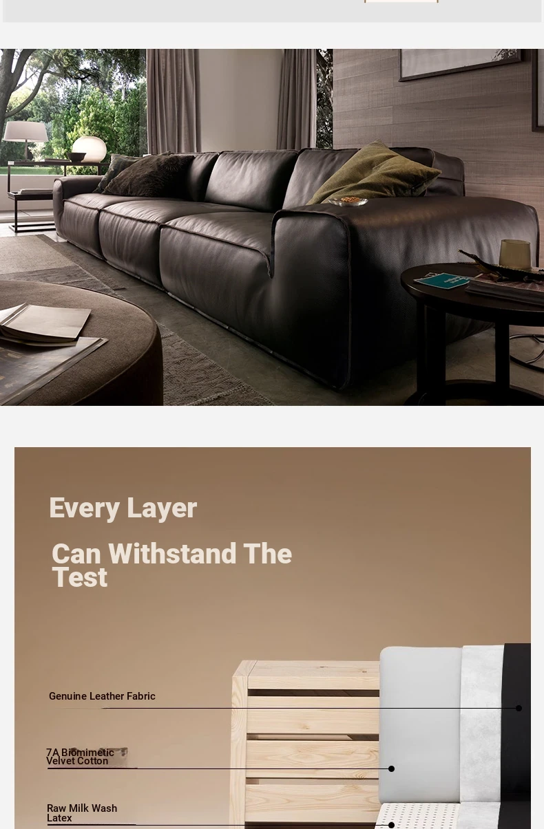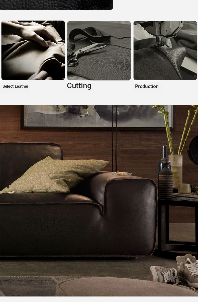 Stylish Italian Minimalist Genuine Leather Sofa - Large and Compact Options for Living Room - Premium Cowhide Sectional Sofa for Modern Homes