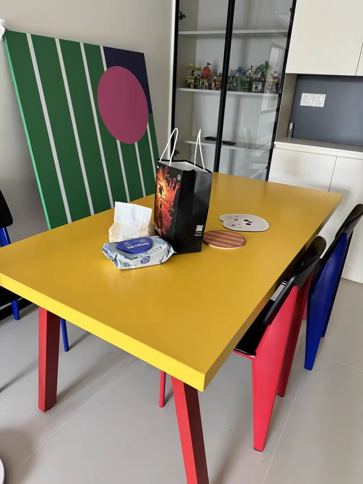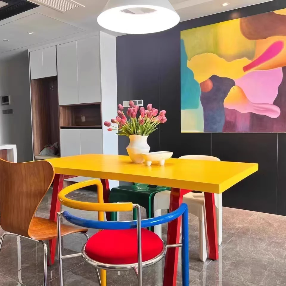 Vibrant Rectangular Dining Table for Home - Multi-functional Dopamine Table for Dining, Study, and Workspaces