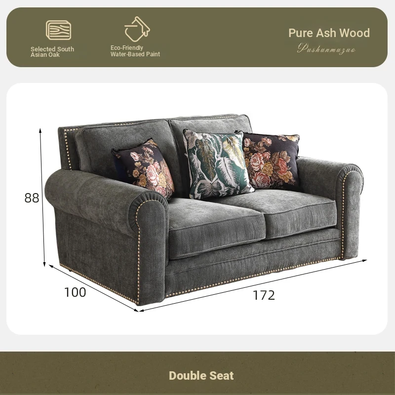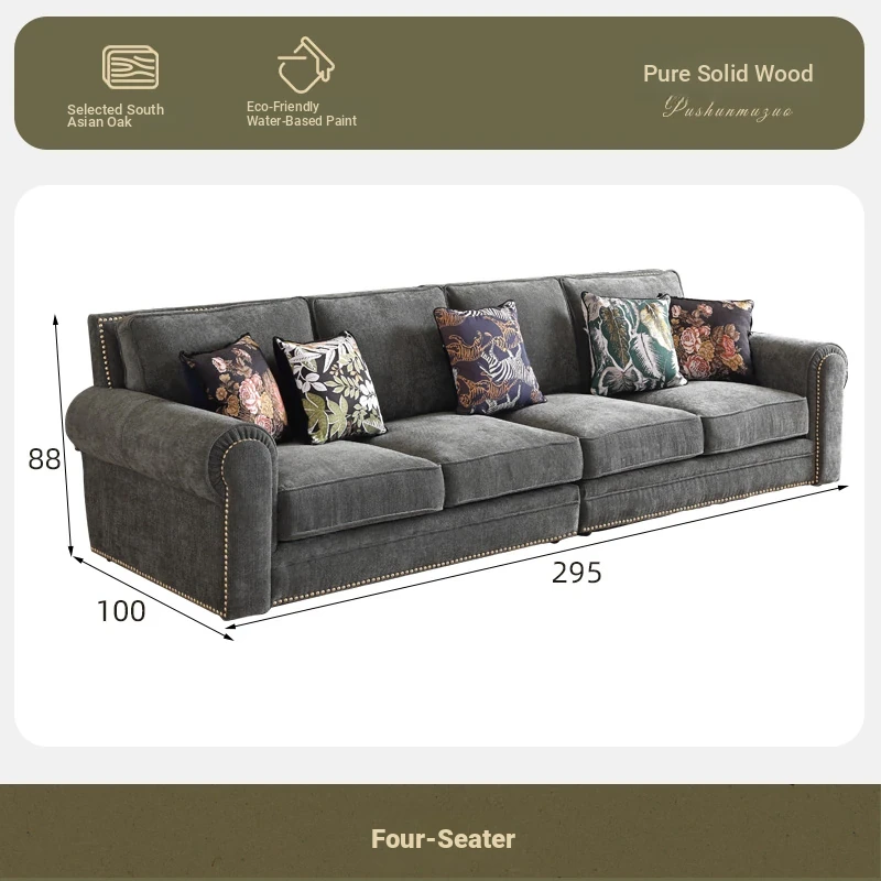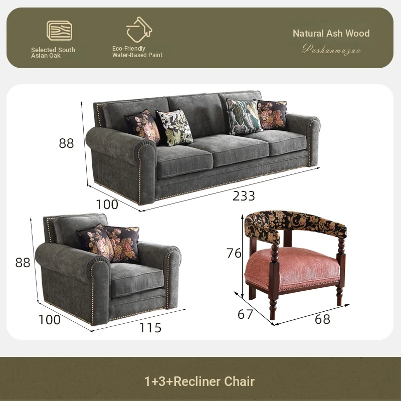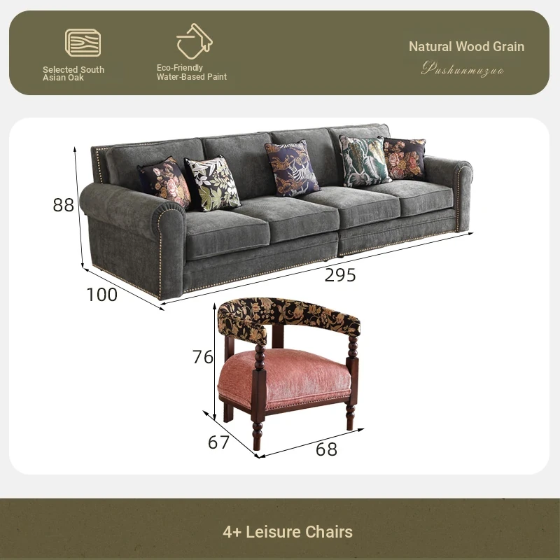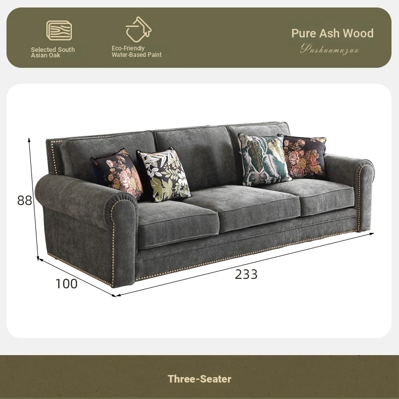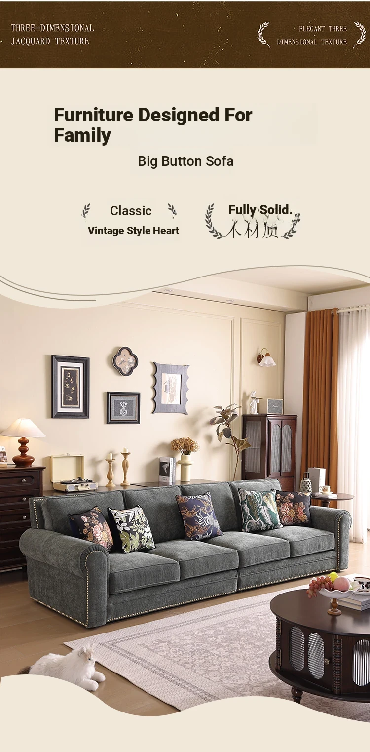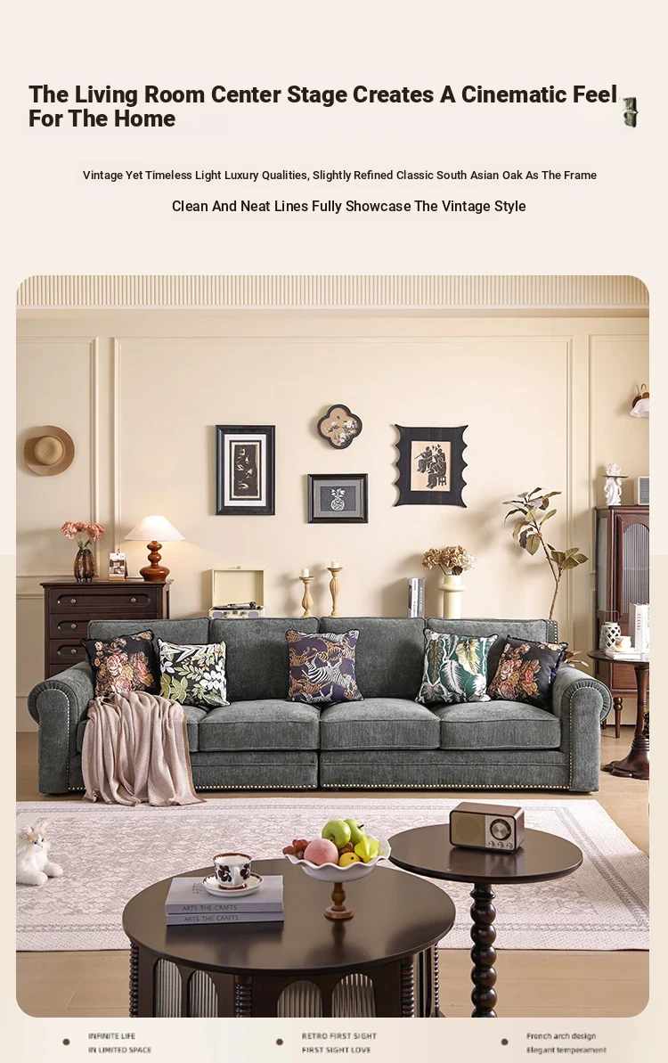 Vintage Style Solid Wood Upholstered Sofa Set for Home - American Living Room Small Space Straight Sofa with French Retro Design