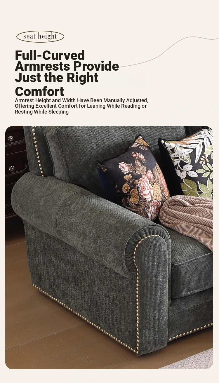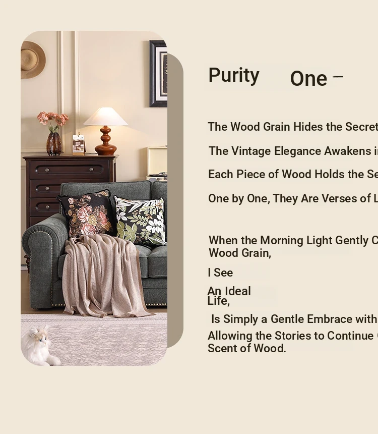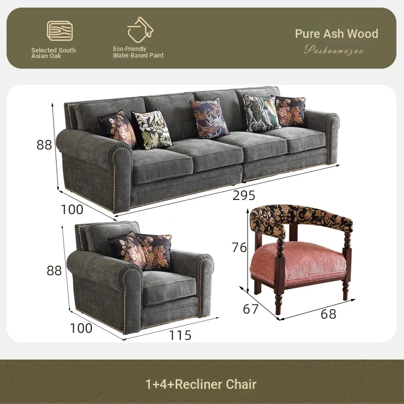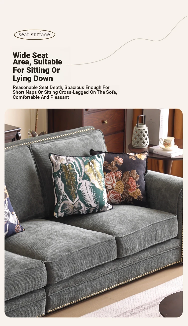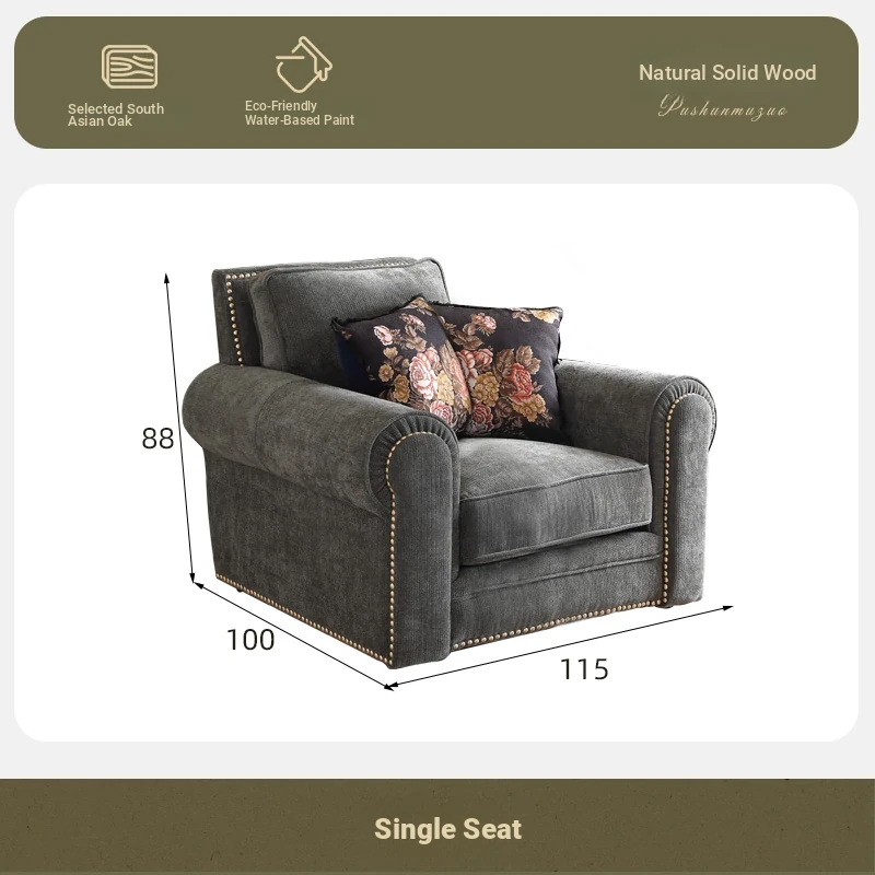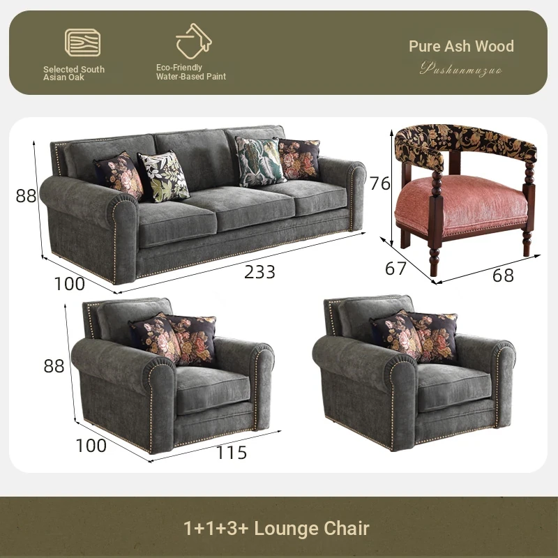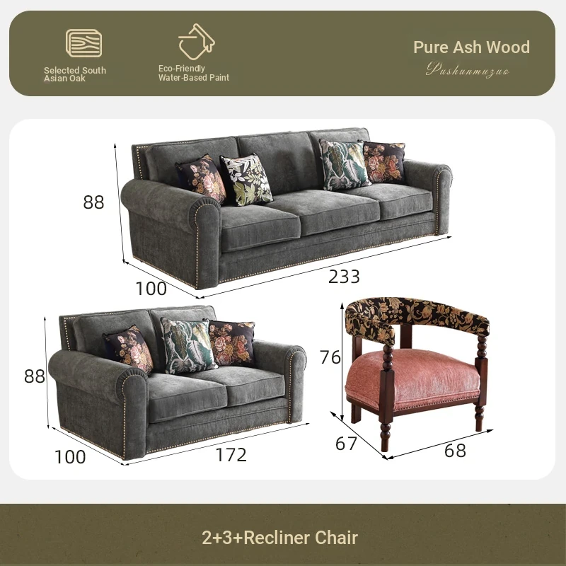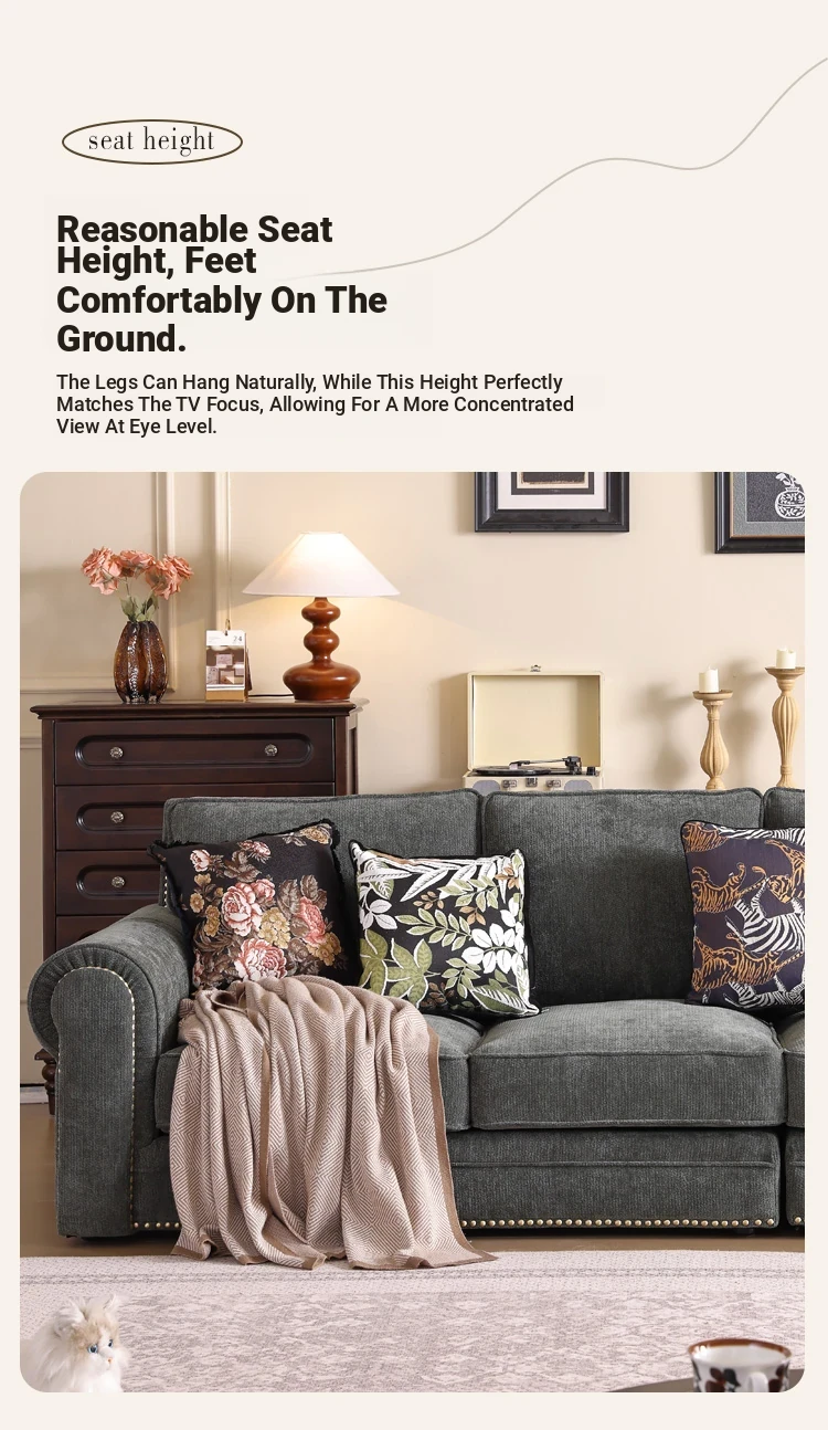 Vintage Style Solid Wood Upholstered Sofa Set for Home - American Living Room Small Space Straight Sofa with French Retro Design
