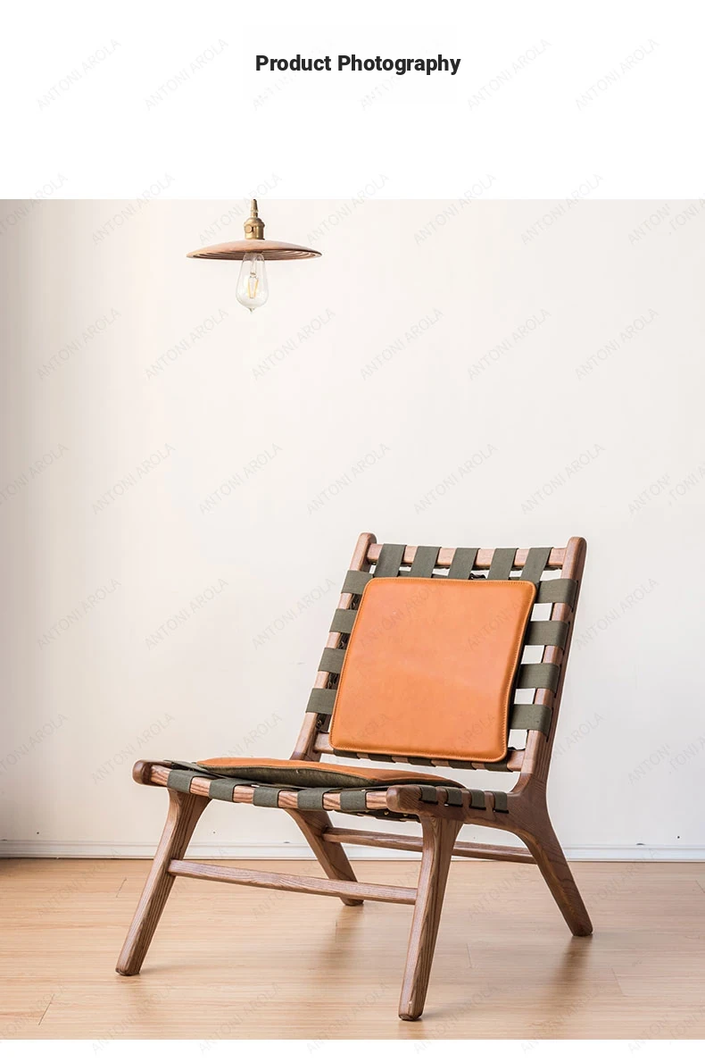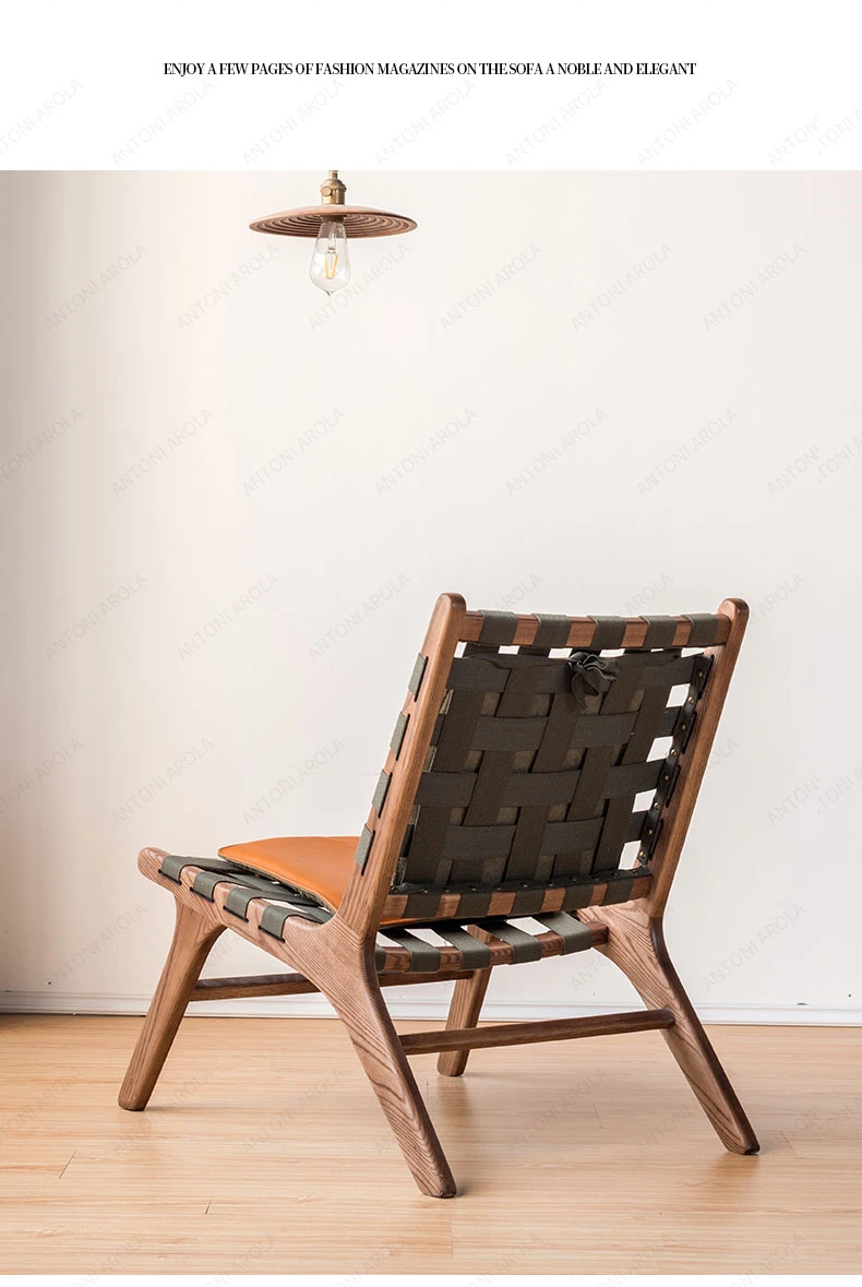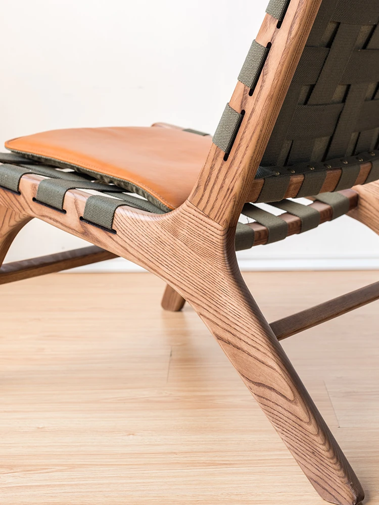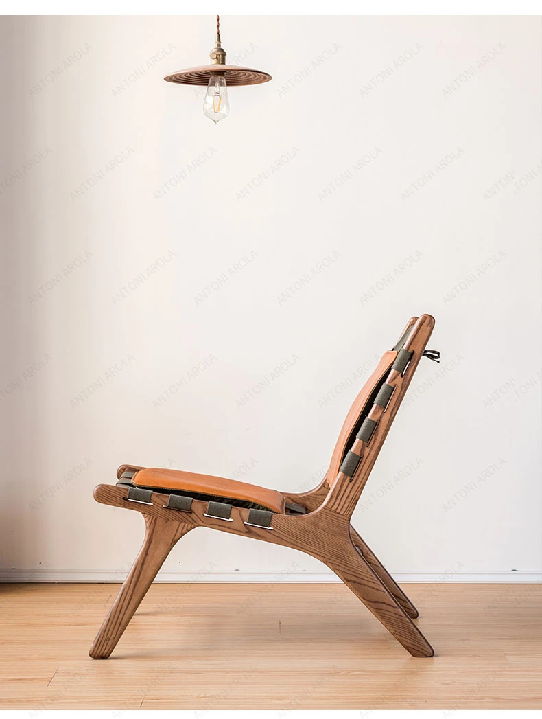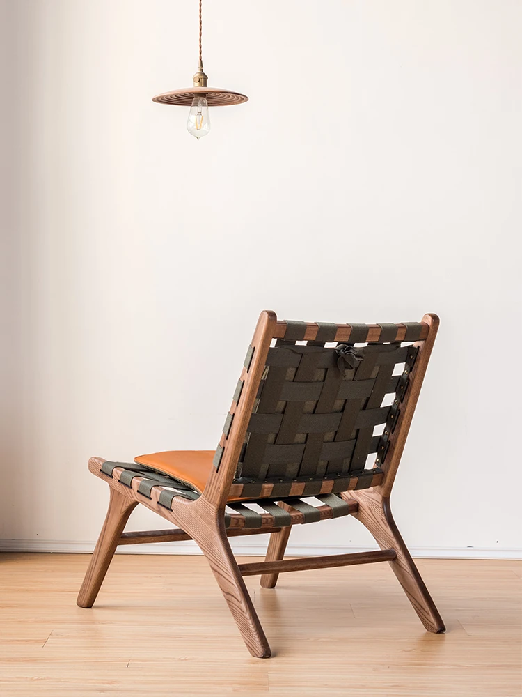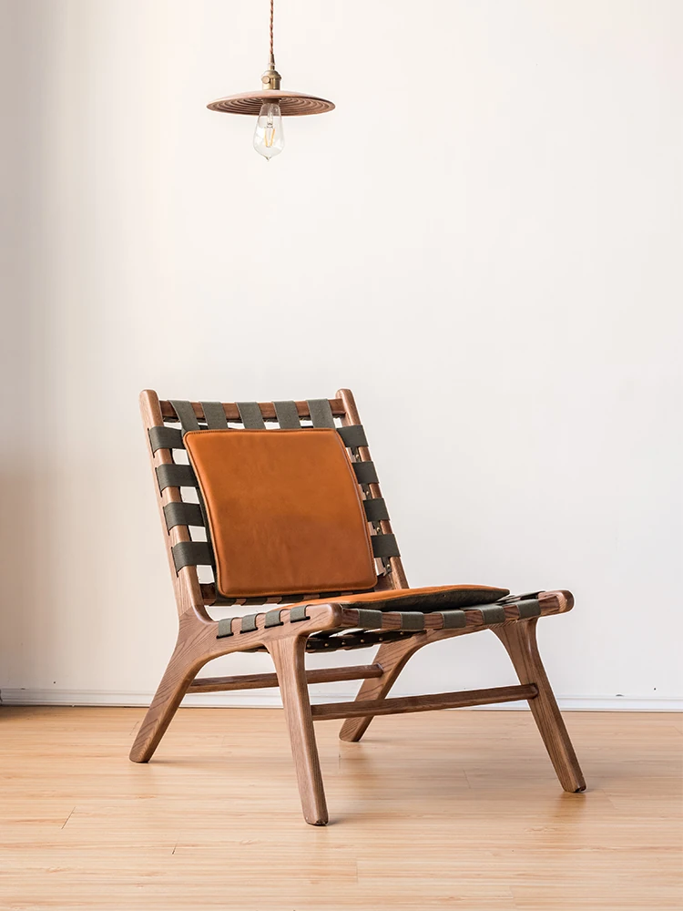 Wabi-Sabi Minimalist Solid Wood Saddle Chair - Genuine Leather Woven Lounge Chair for Urban Relaxation - Modern Balcony Luxury Sofa Chair