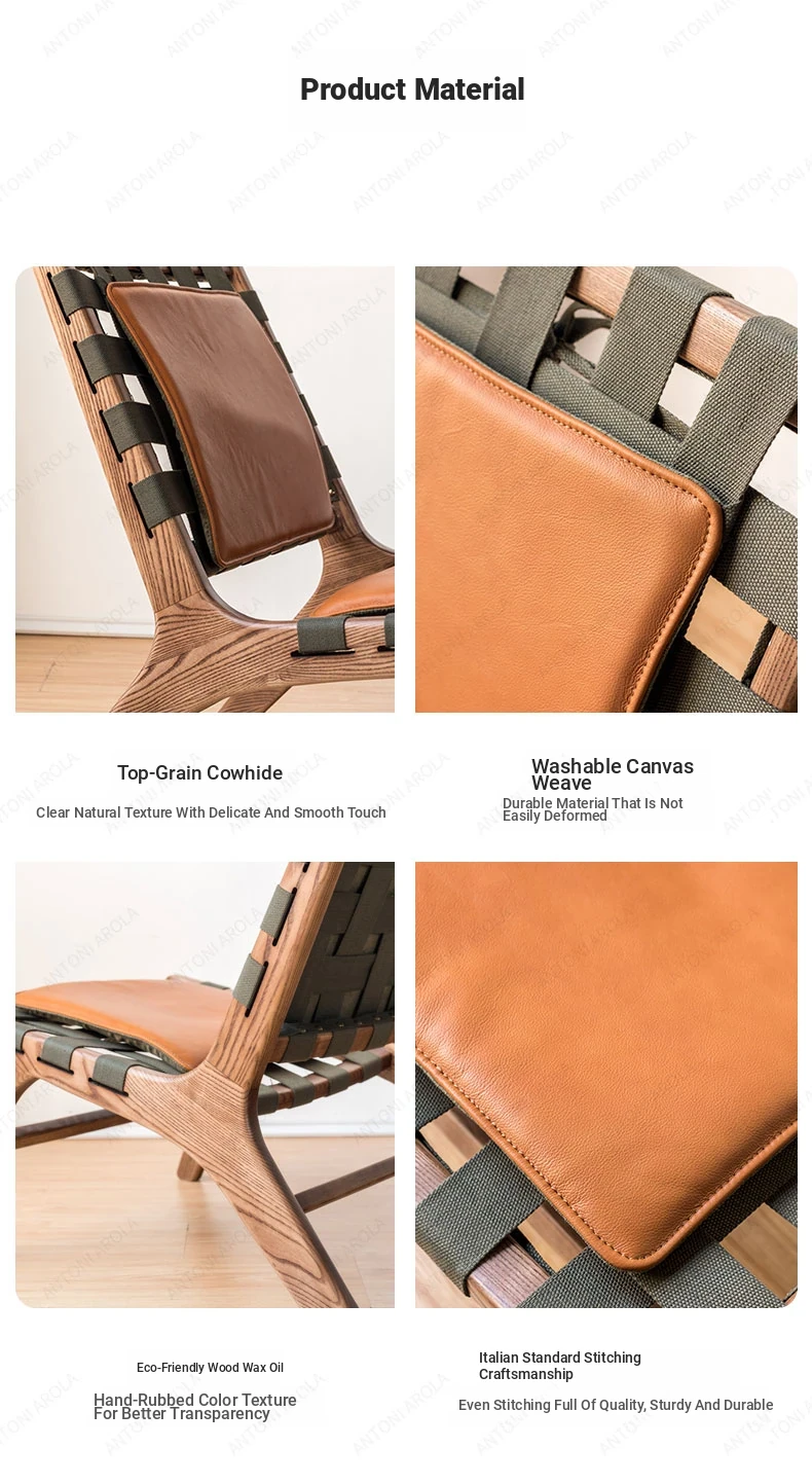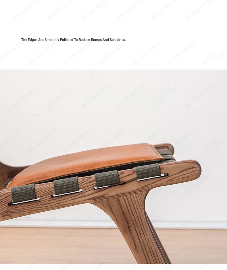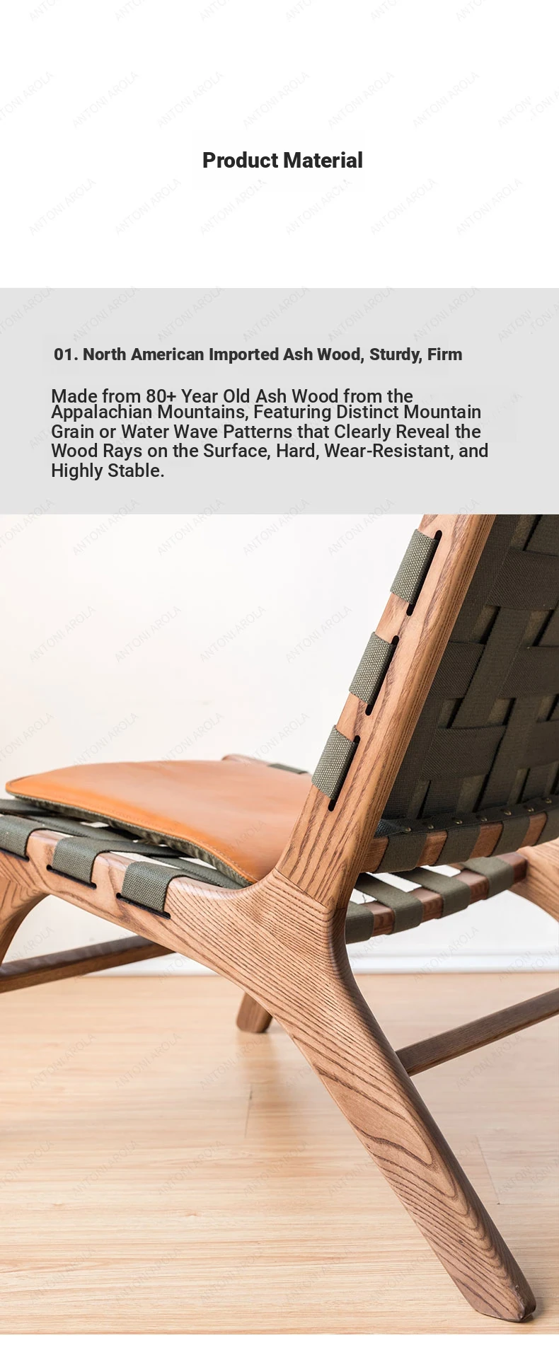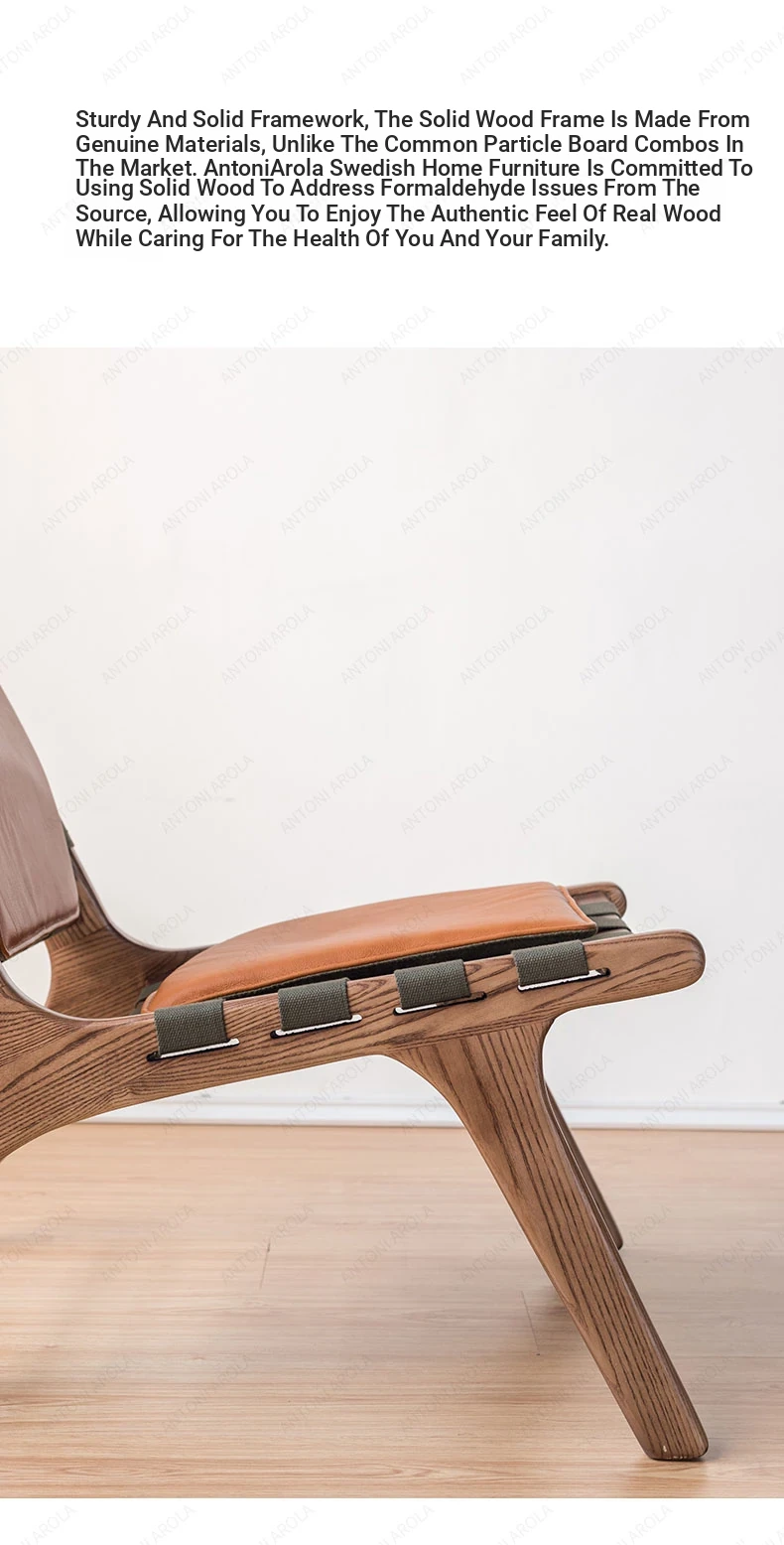 Wabi-Sabi Minimalist Solid Wood Saddle Chair - Genuine Leather Woven Lounge Chair for Urban Relaxation - Modern Balcony Luxury Sofa Chair