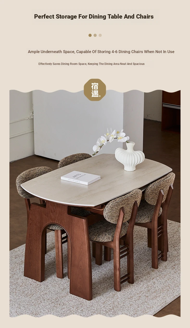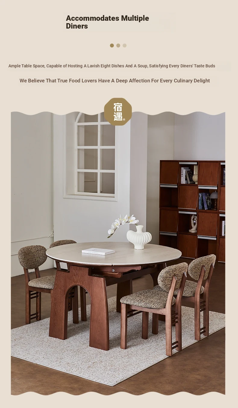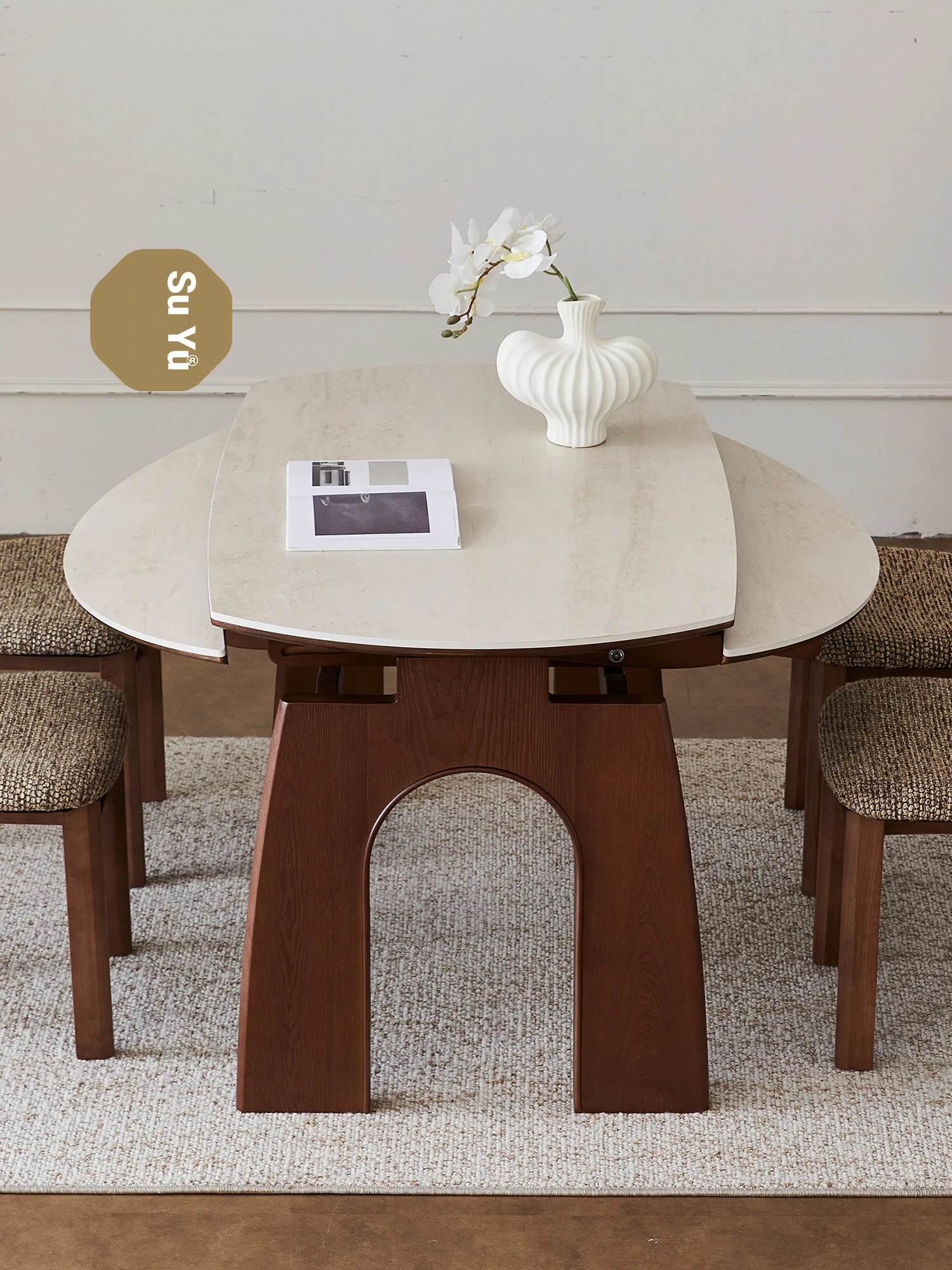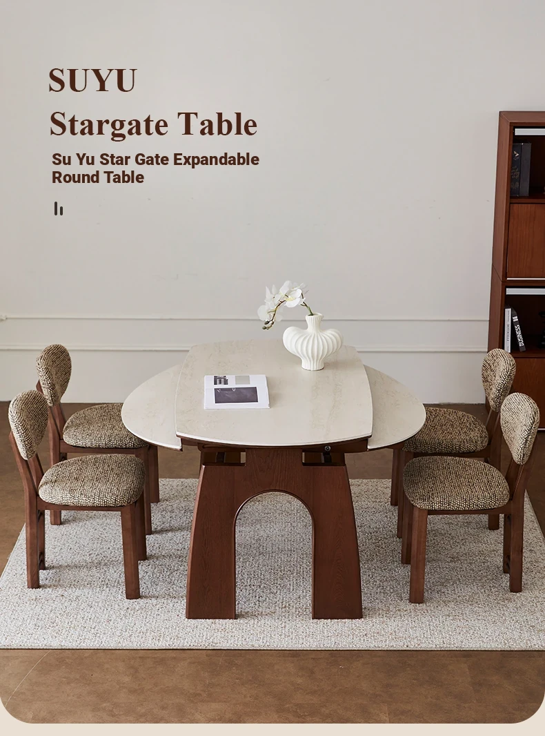 Xu Encounter Star Gate Expandable Vintage Style Solid Wood Dining Table and Chair Set with Stone Surface - Compact, Foldable Design for Small Spaces