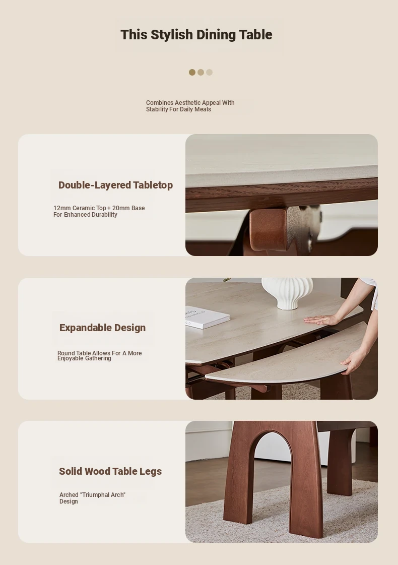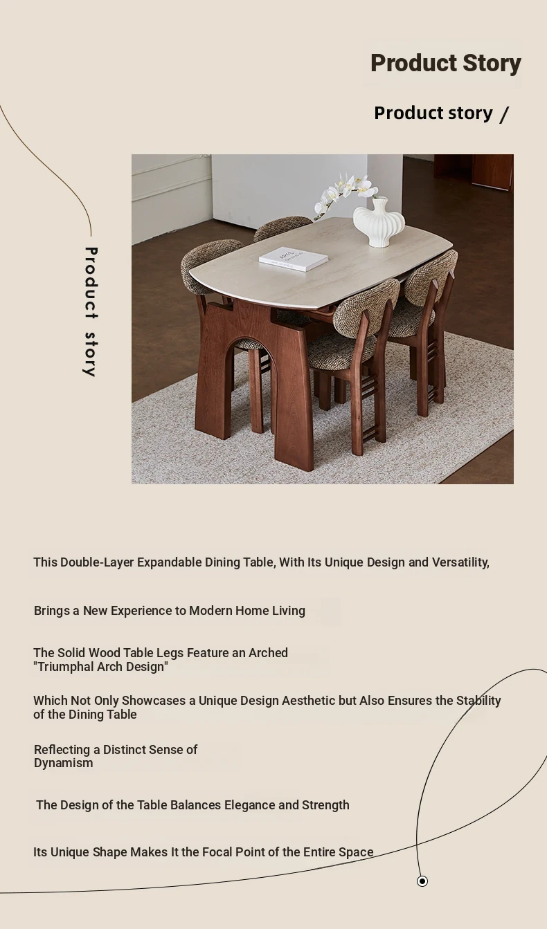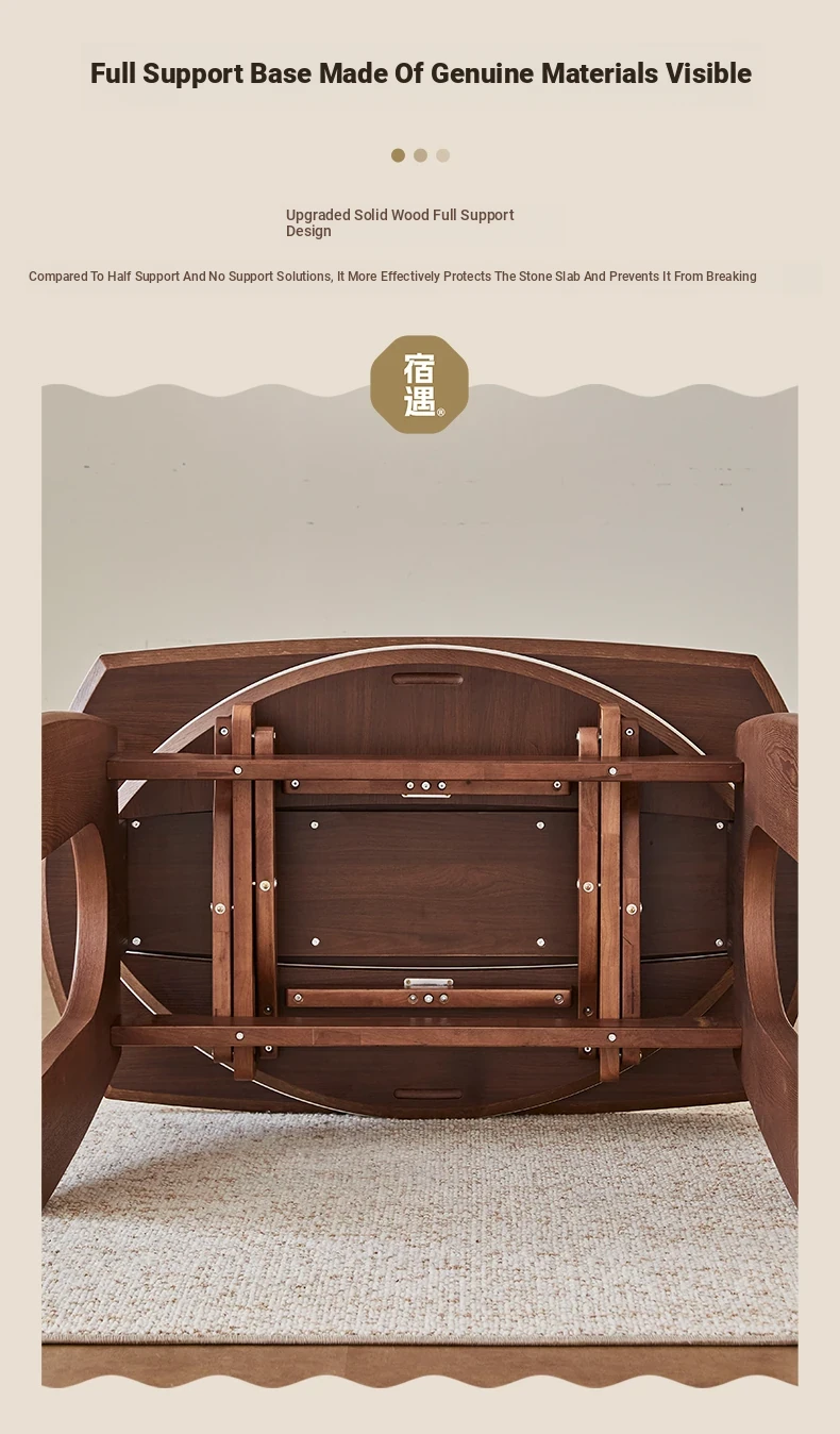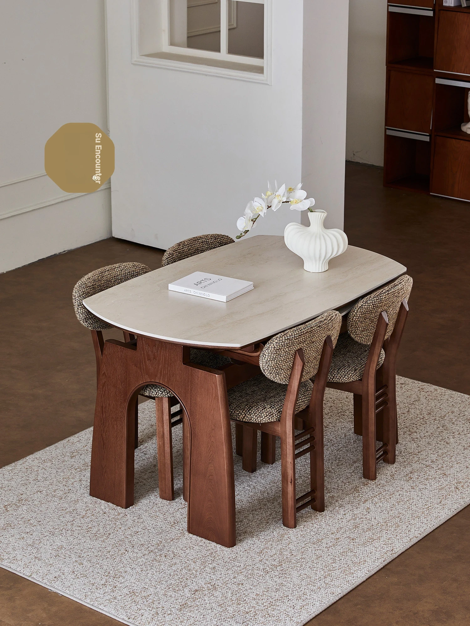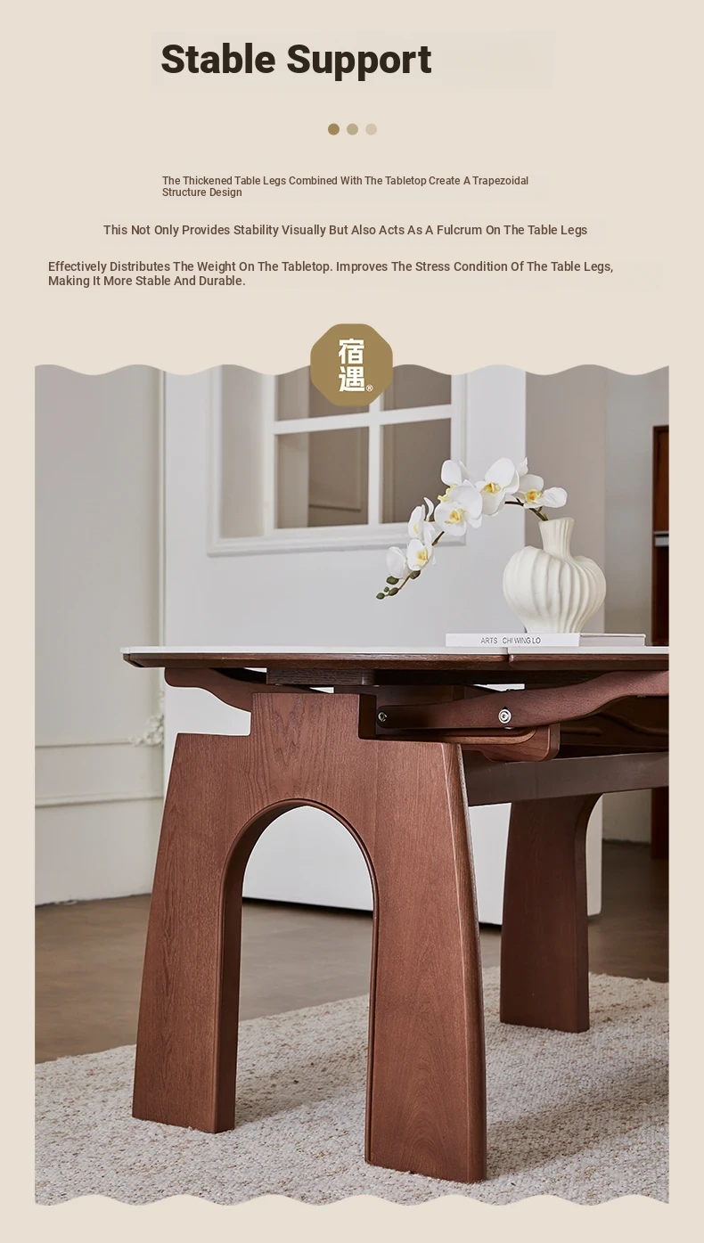 Xu Encounter Star Gate Expandable Vintage Style Solid Wood Dining Table and Chair Set with Stone Surface - Compact, Foldable Design for Small Spaces
