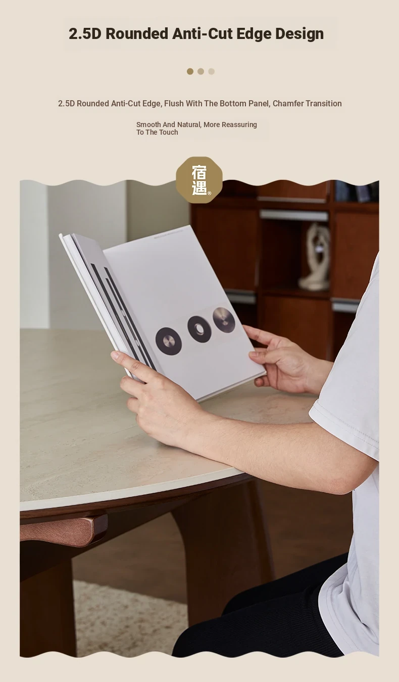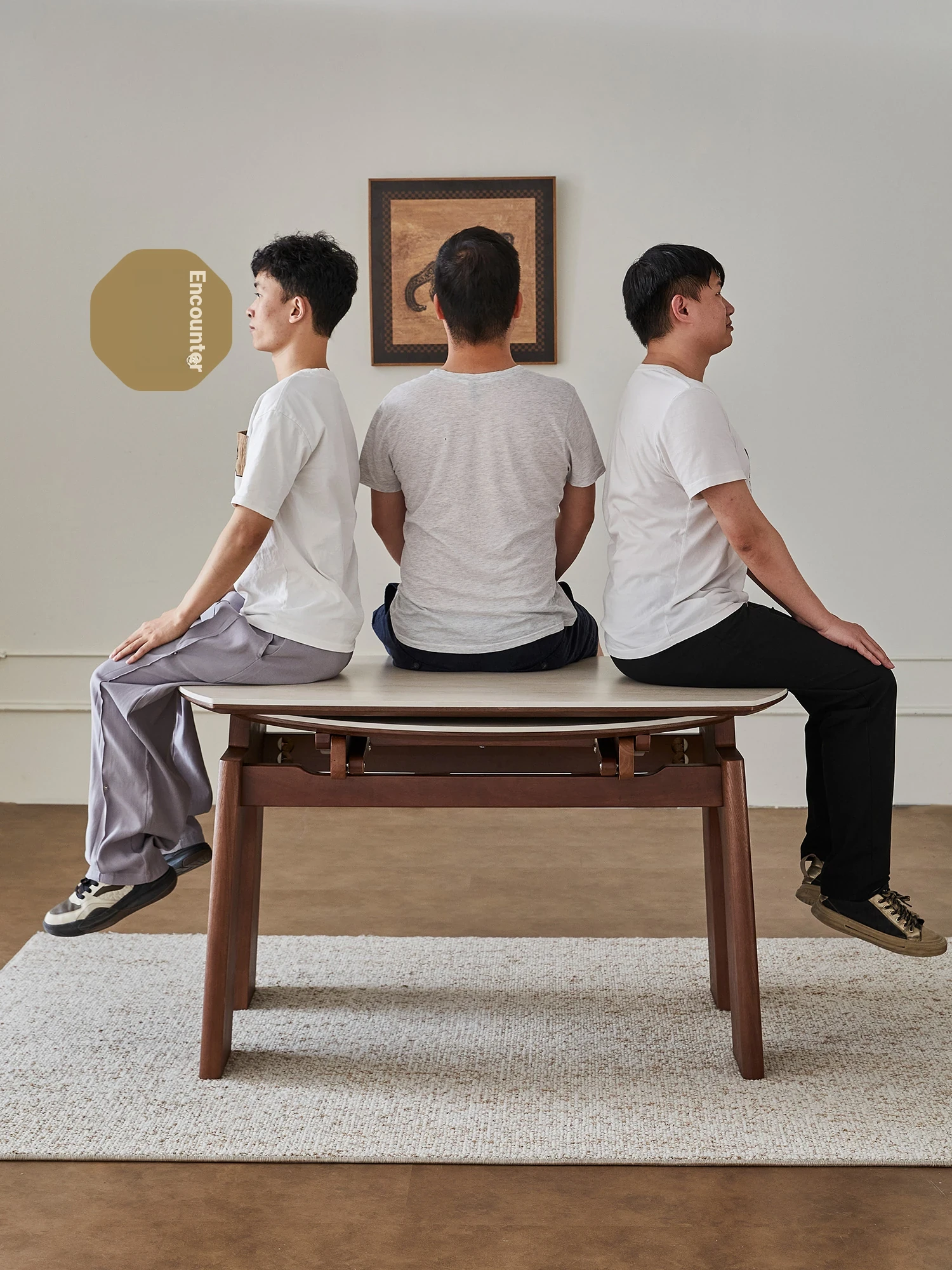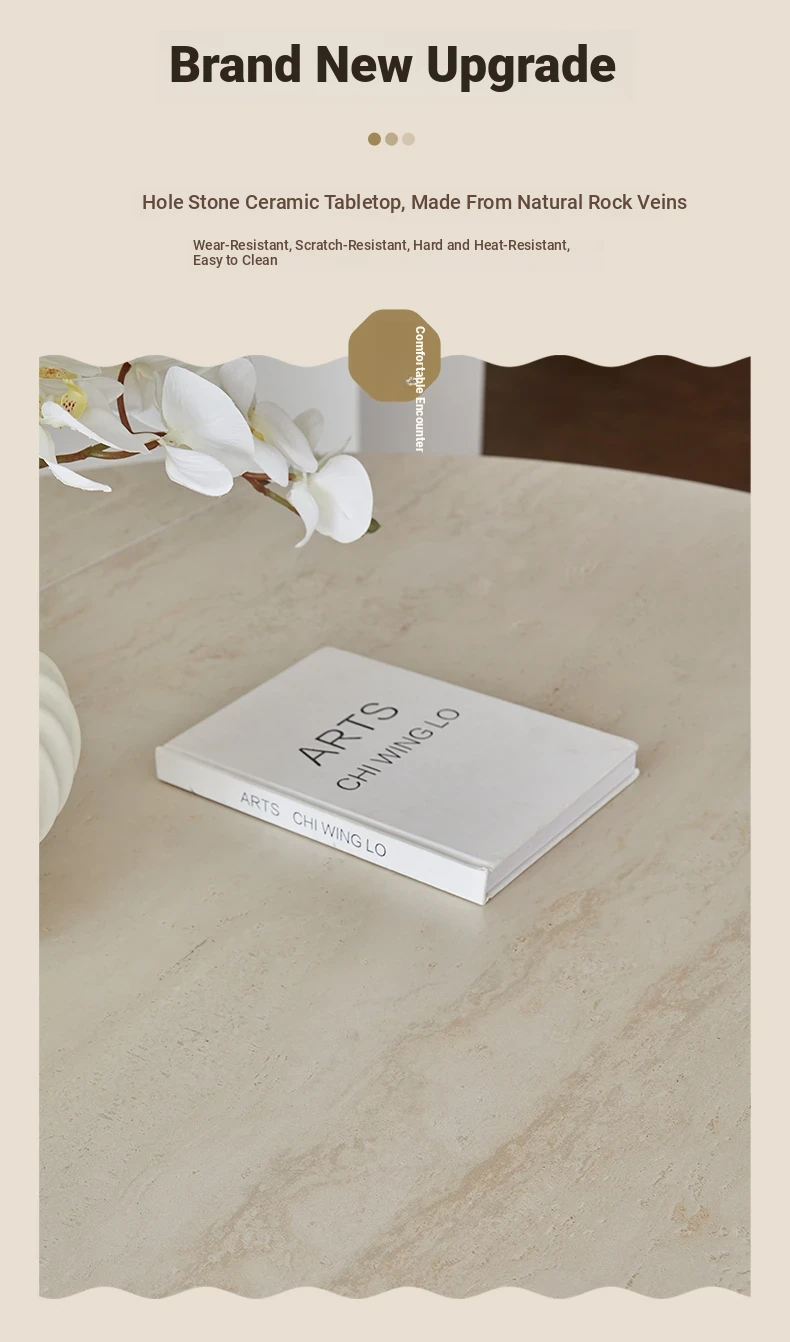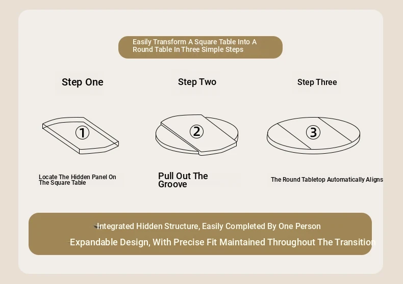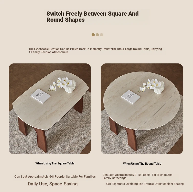 Xu Encounter Star Gate Expandable Vintage Style Solid Wood Dining Table and Chair Set with Stone Surface - Compact, Foldable Design for Small Spaces