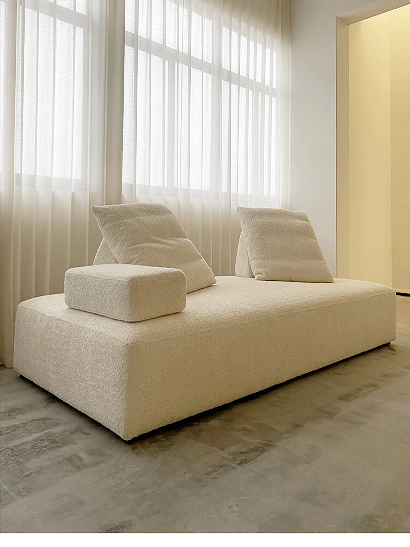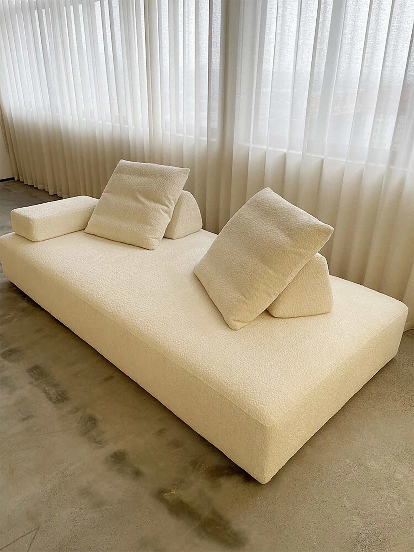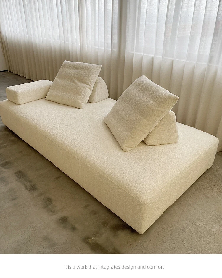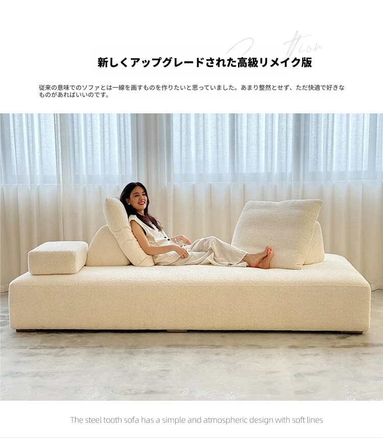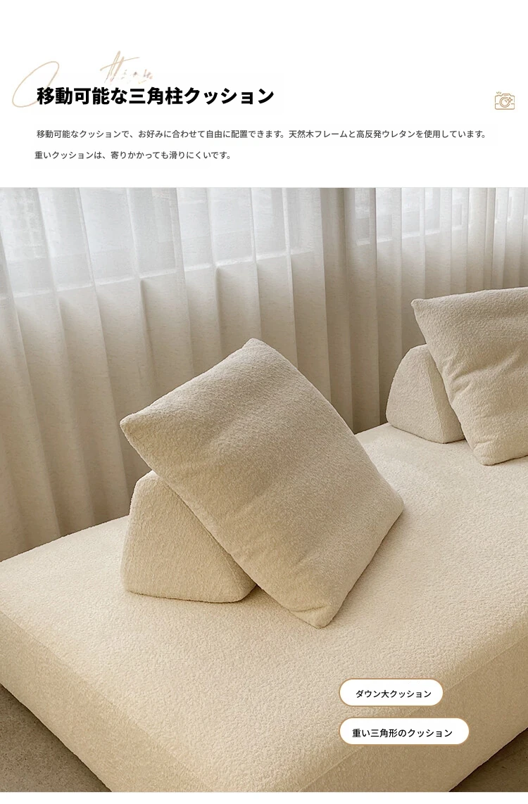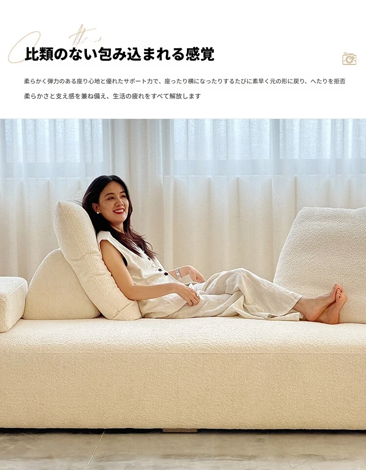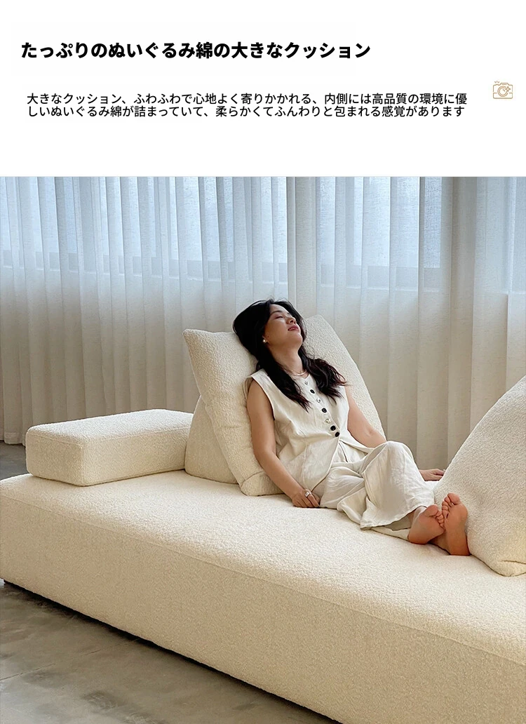 美しいクリーム風マシュマロ布製ソファー - ミニマルなフレンチ・北欧スタイル、レトロなシープスキンソファー。小さなリビングにぴったりのデザインで、心地よい空間を演出します!