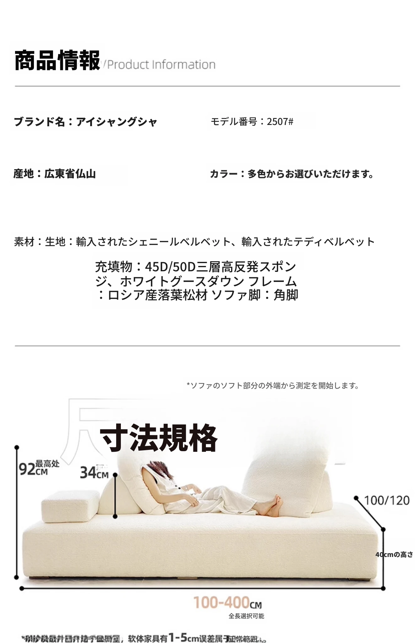 2025年新作!贅沢なクリーム色の風貴妃ソファ、両面使用可能な畳スタイルの布製ソファ。小さなスペースにぴったりのアームレスタイプ、シンプルでスタイリッシュな直線デザインで、どんなインテリアにもマッチ!