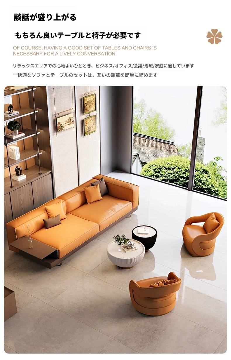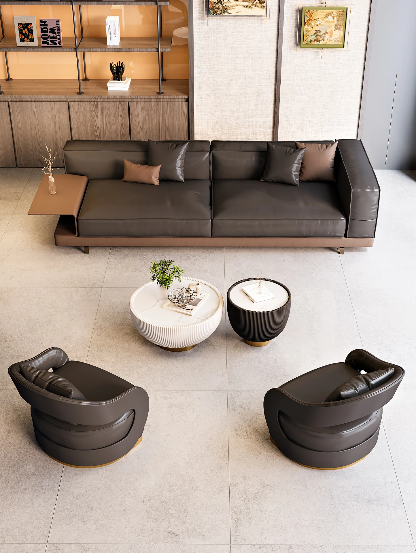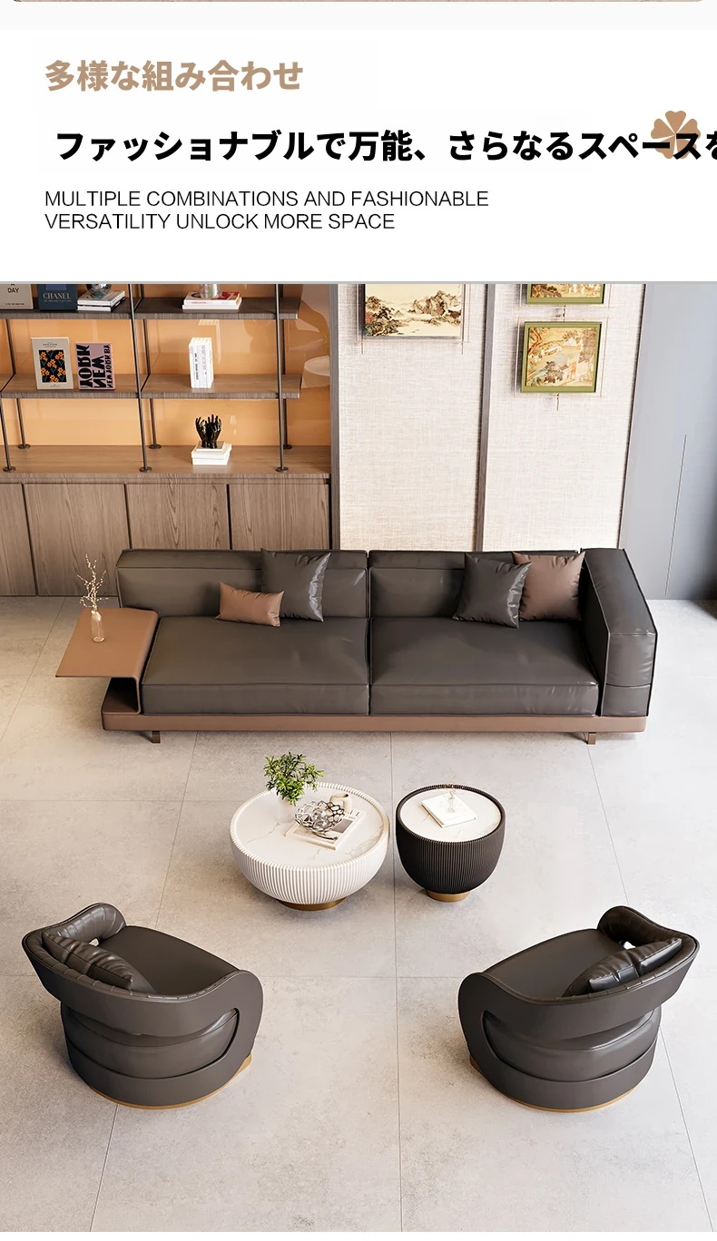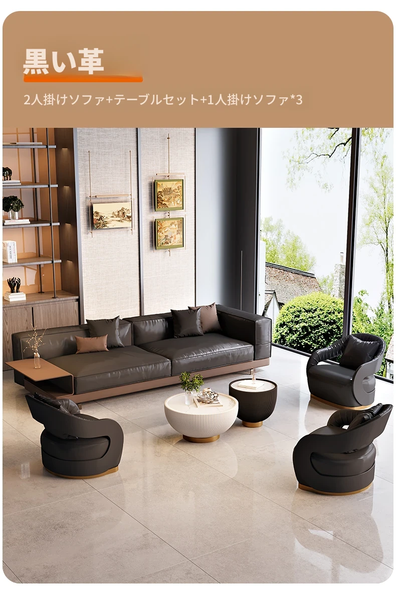 ビジネスにも最適!快適な接待ソファセット - ホテルのロビーやオフィスの休憩スペースにぴったりな皮製のコンビネーションソファとコーヒーテーブルのセット。おしゃれな空間を演出します!