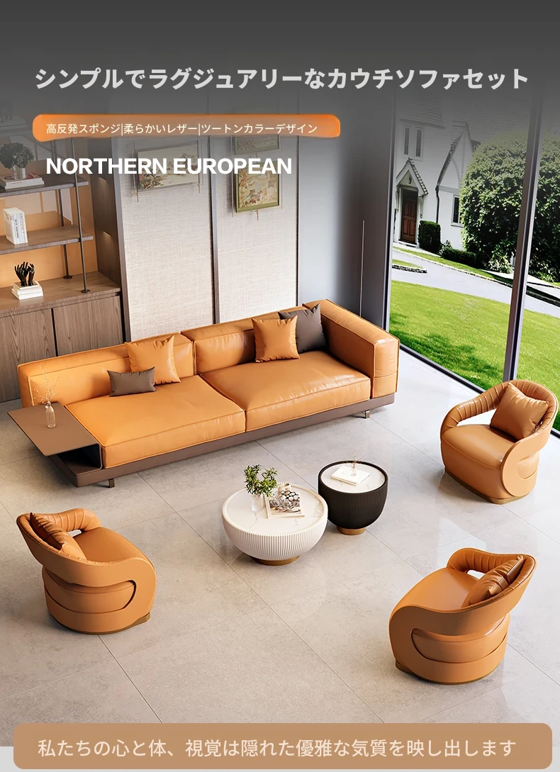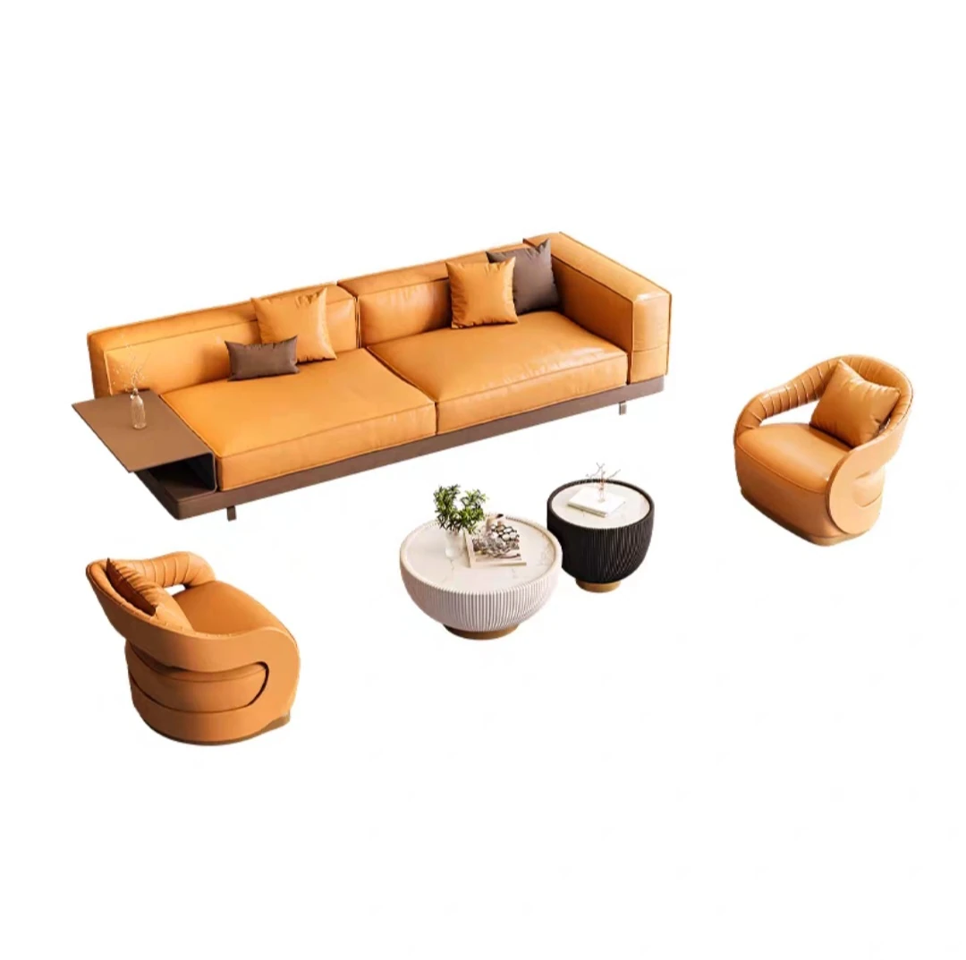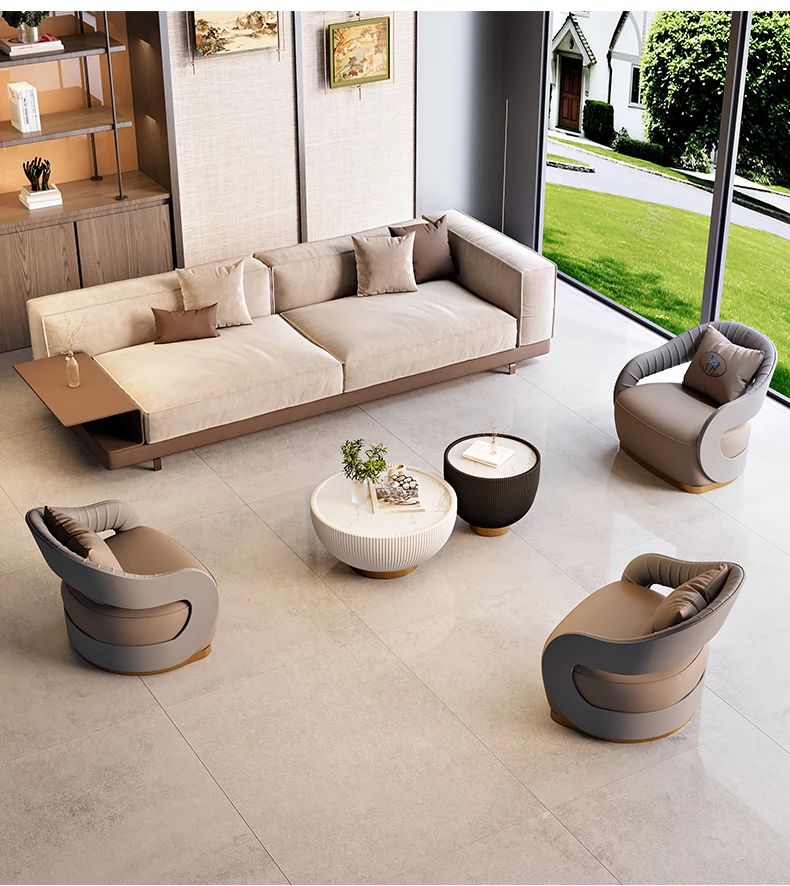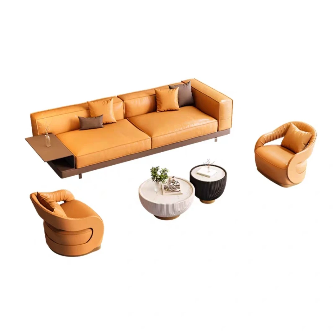 ビジネスにも最適!快適な接待ソファセット - ホテルのロビーやオフィスの休憩スペースにぴったりな皮製のコンビネーションソファとコーヒーテーブルのセット。おしゃれな空間を演出します!