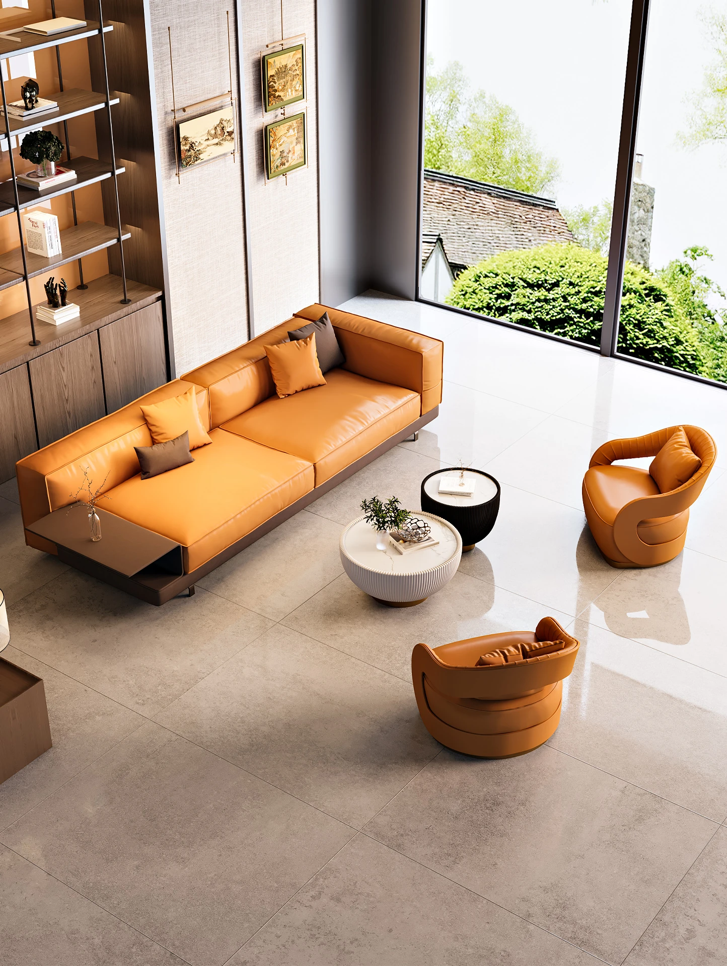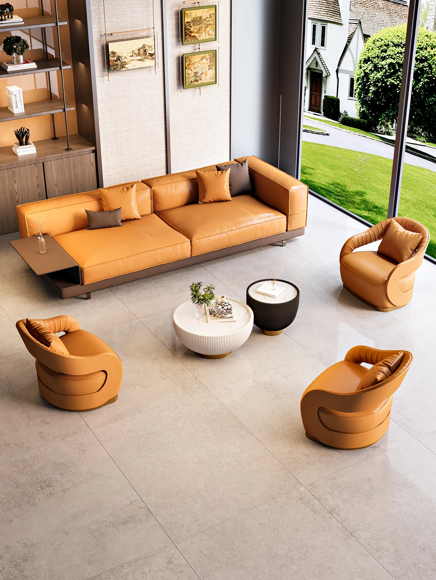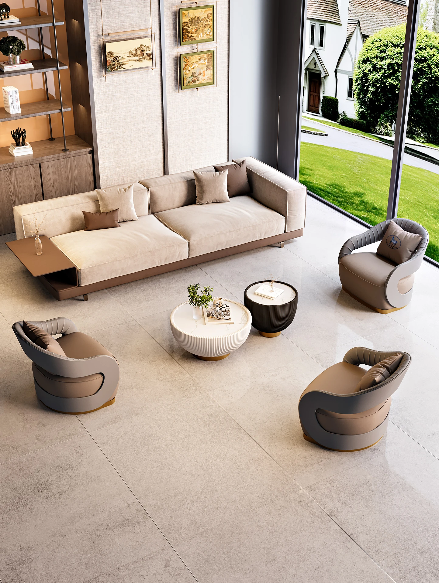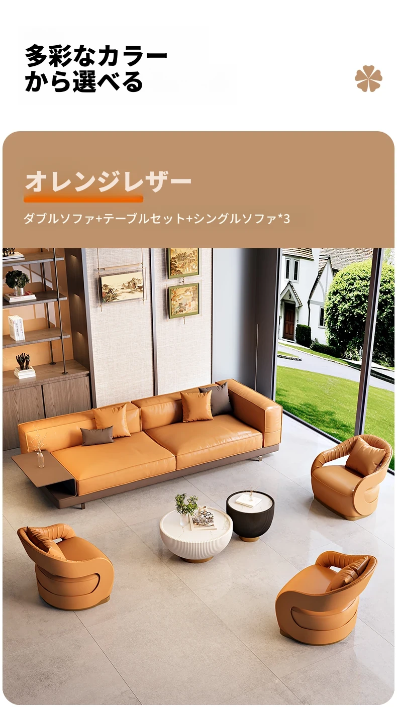 ビジネスにも最適!快適な接待ソファセット - ホテルのロビーやオフィスの休憩スペースにぴったりな皮製のコンビネーションソファとコーヒーテーブルのセット。おしゃれな空間を演出します!