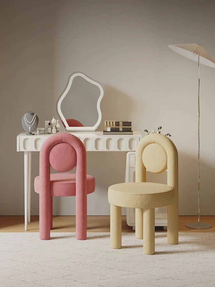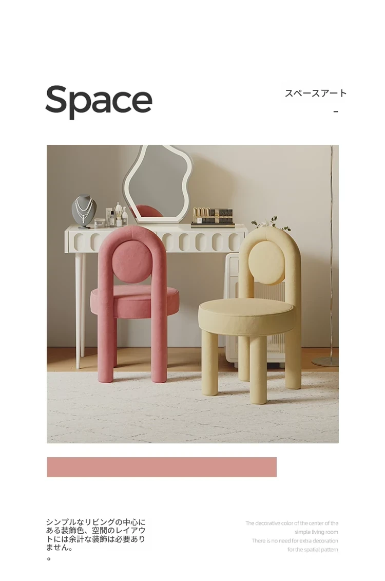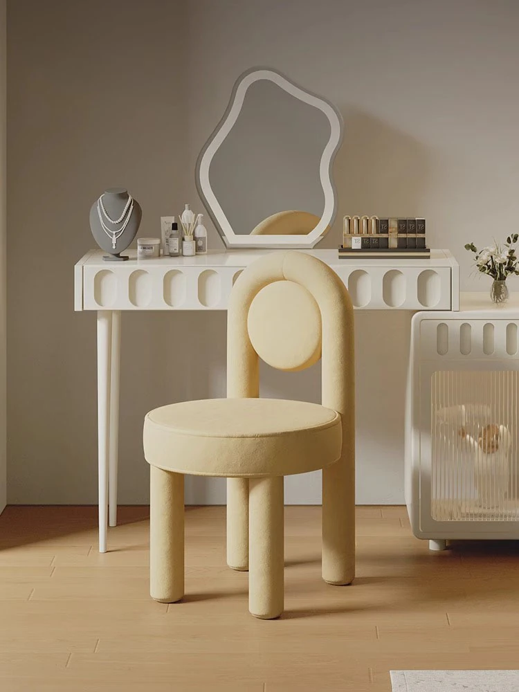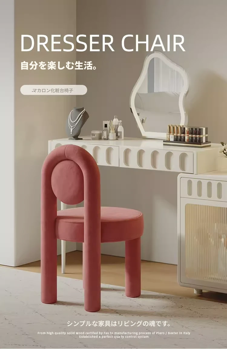 クリーム風シンプルなベッドルーム化粧椅子|インスタ映えするカフェスタイル|北欧風の軽やかな贅沢感|自宅用ドレッシングチェアに最適!