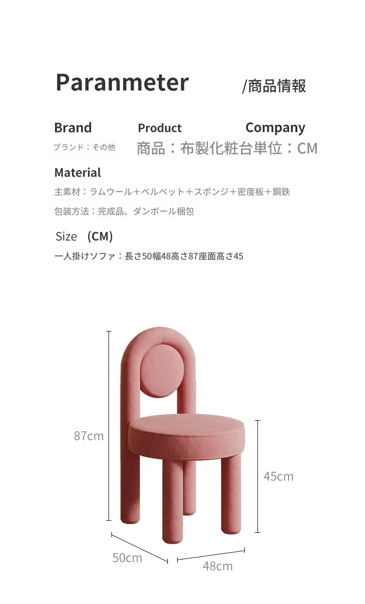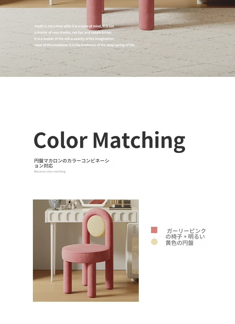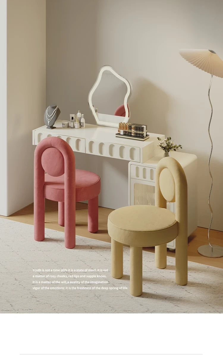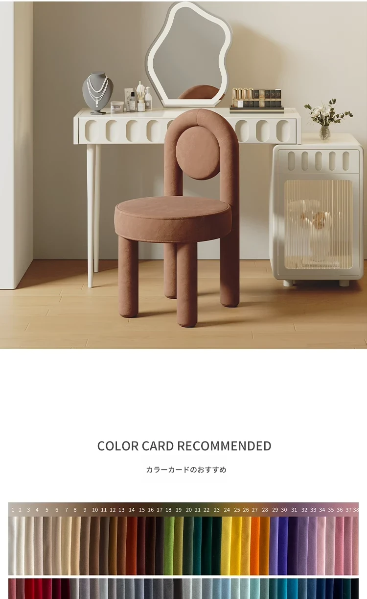 クリーム風シンプルなベッドルーム化粧椅子|インスタ映えするカフェスタイル|北欧風の軽やかな贅沢感|自宅用ドレッシングチェアに最適!