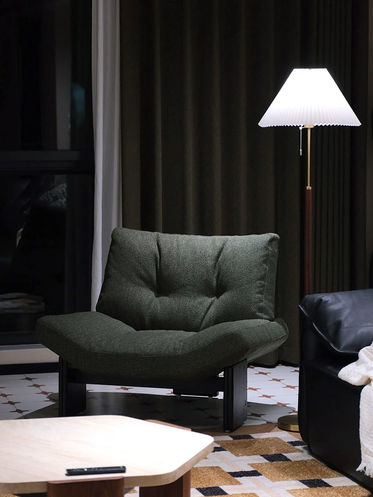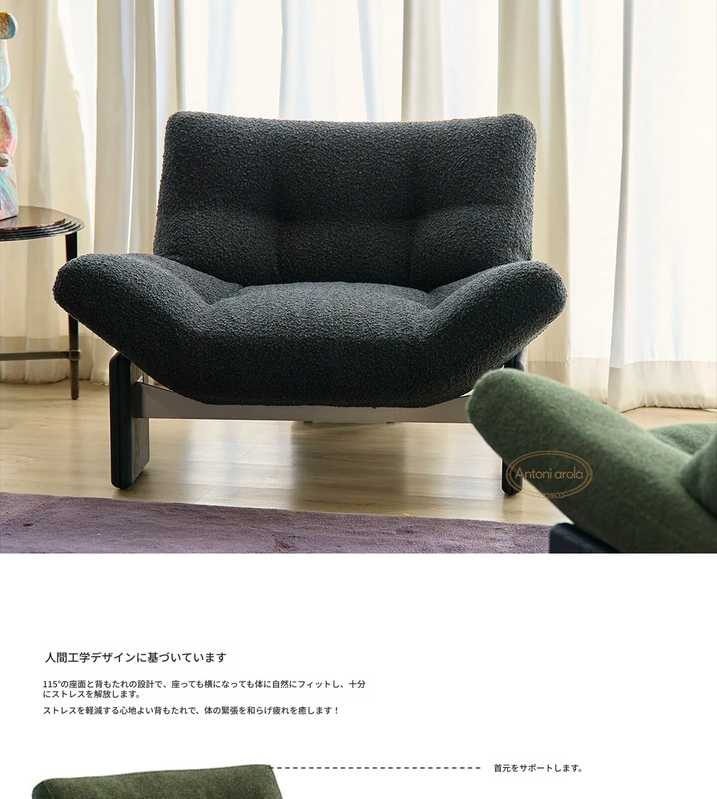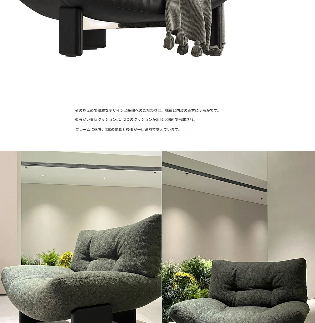 イタリアンミニマリストデザインのリラックスソファチェア|モダンな一人用|小さな空間にぴったりなモジュール式クッション|快適な毛毛虫スタイル|おしゃれなリビングに最適!