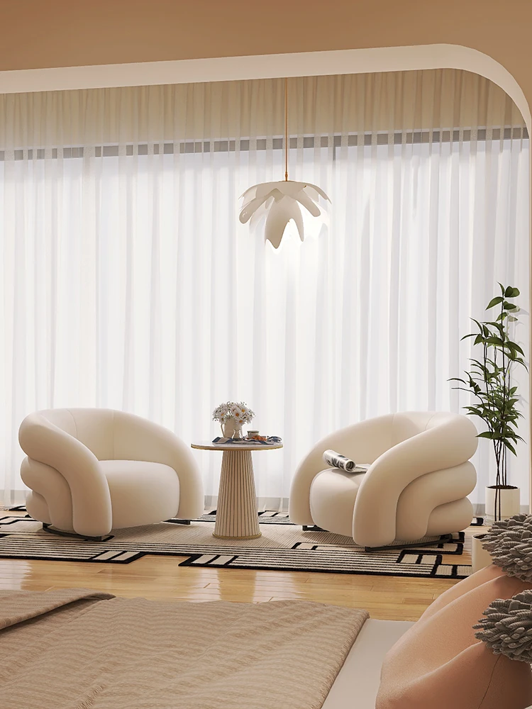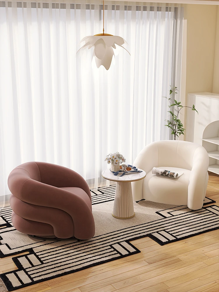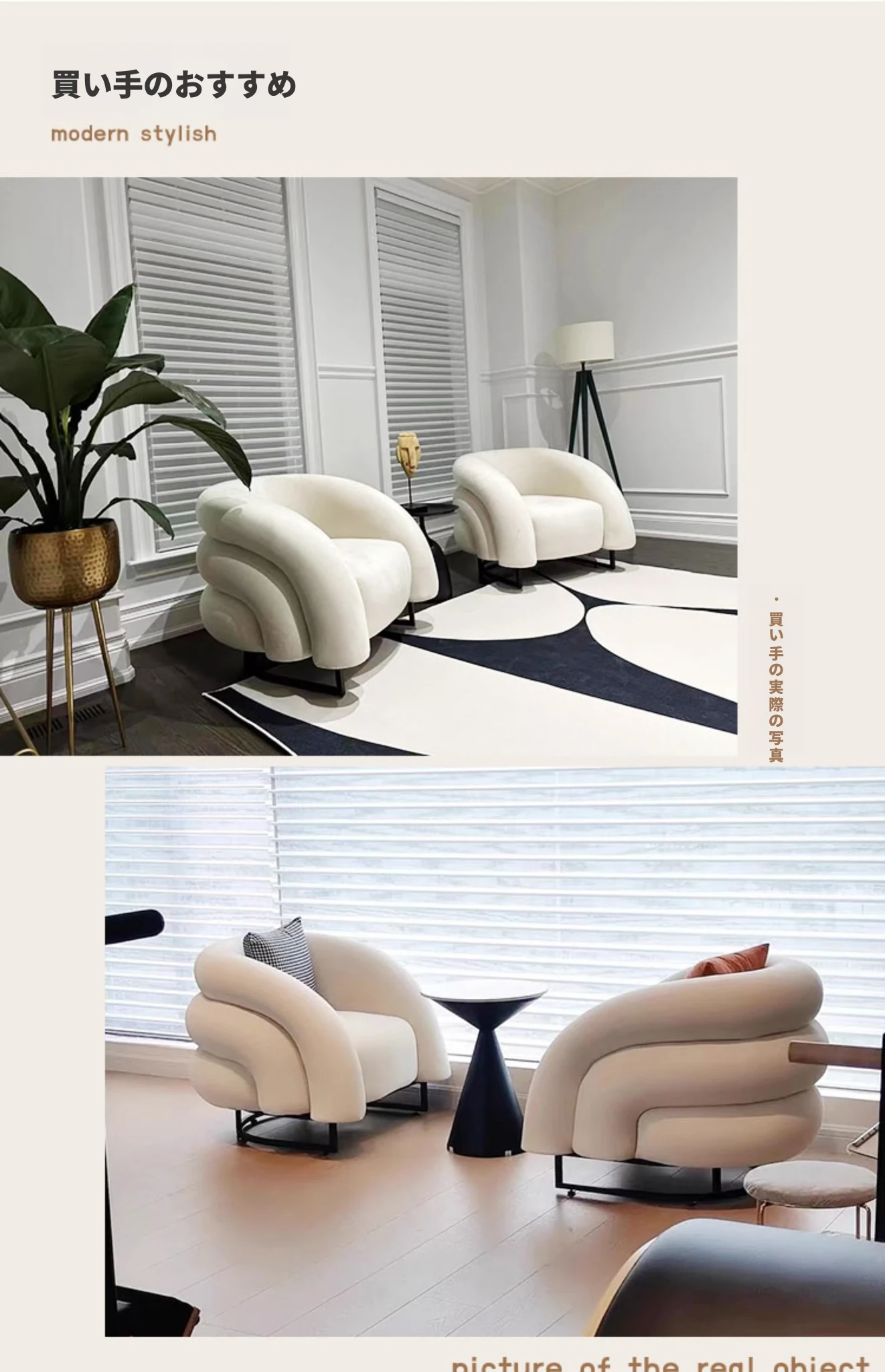 デザイナーの一人用ソファチェア、布製アーチ型、モダンでシンプルなスタイルのリラックスチェア。軽やかなラグジュアリー感があり、小さなスペースにもぴったりな高級休憩椅子!