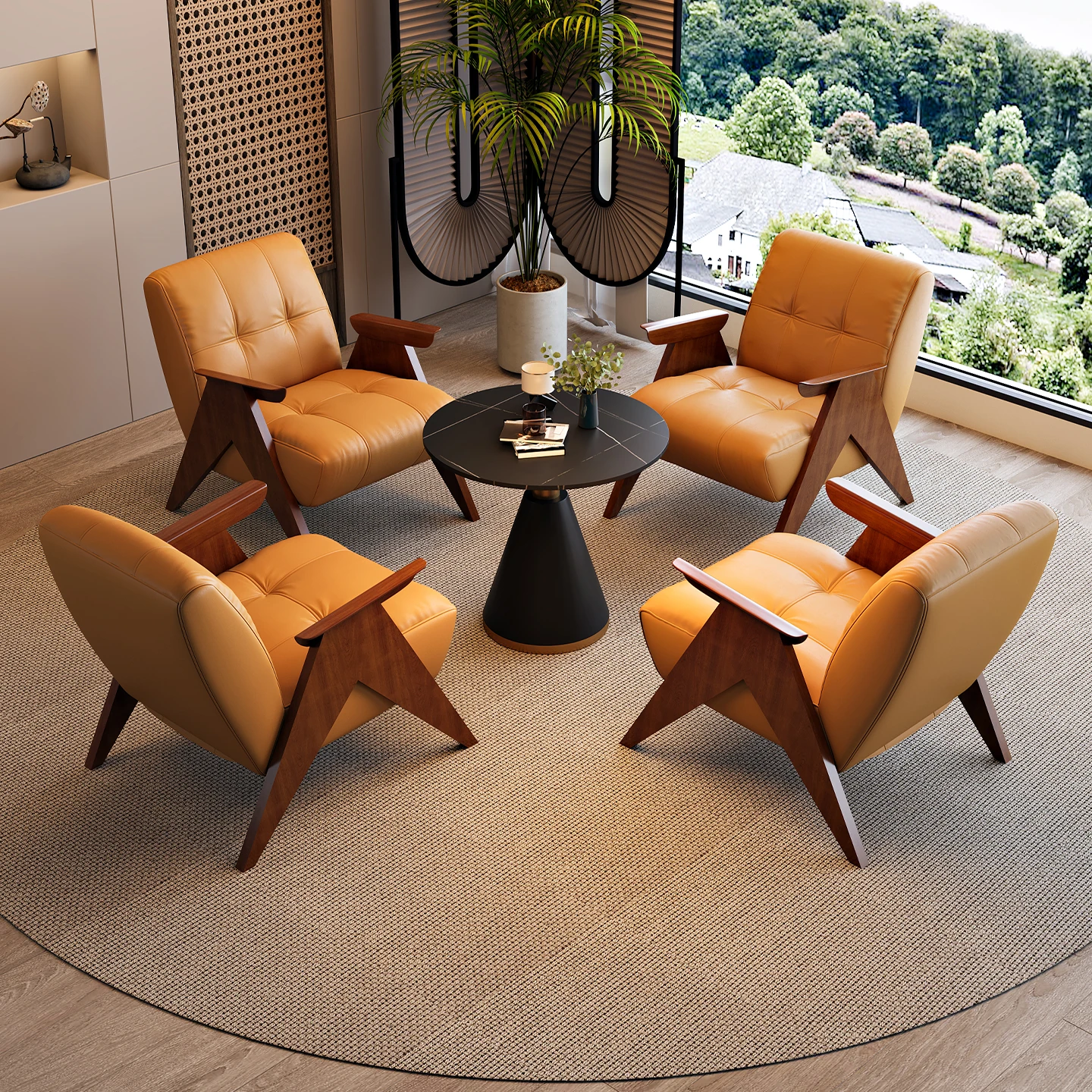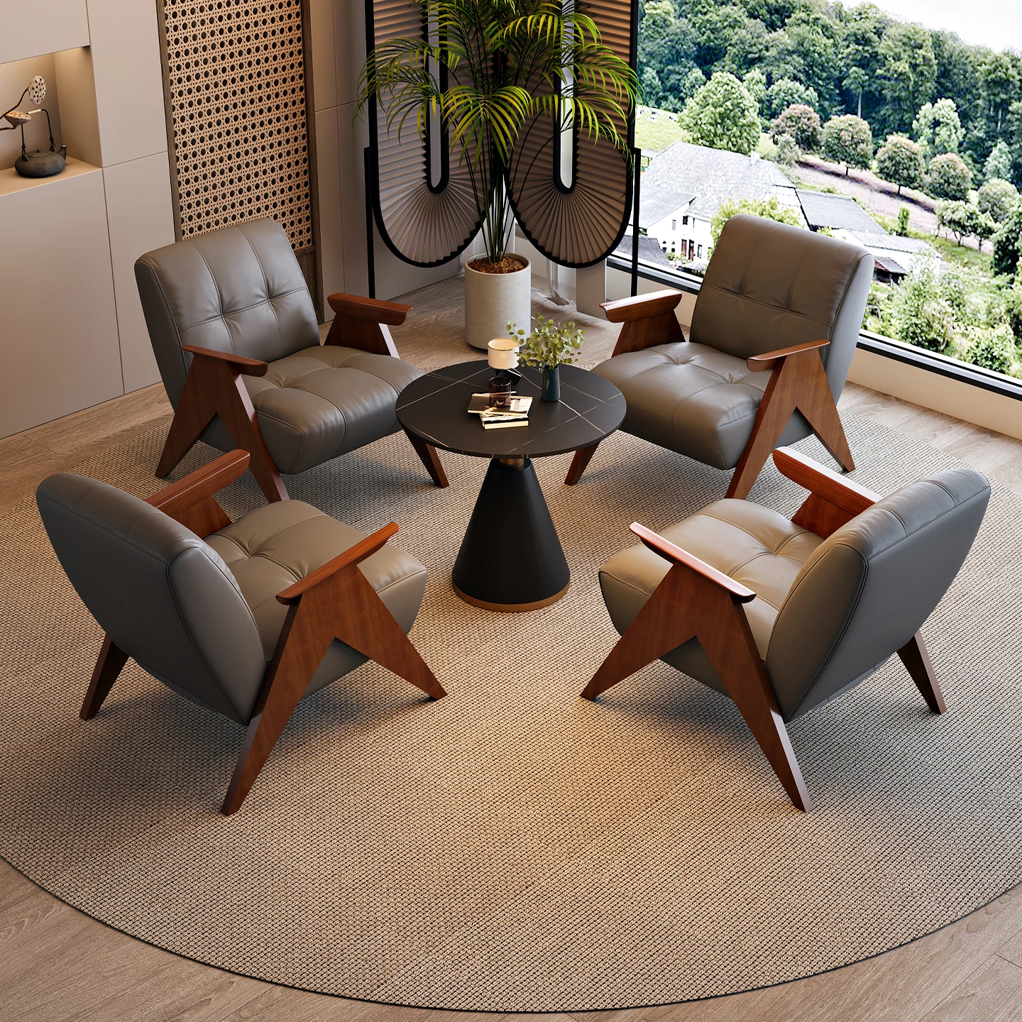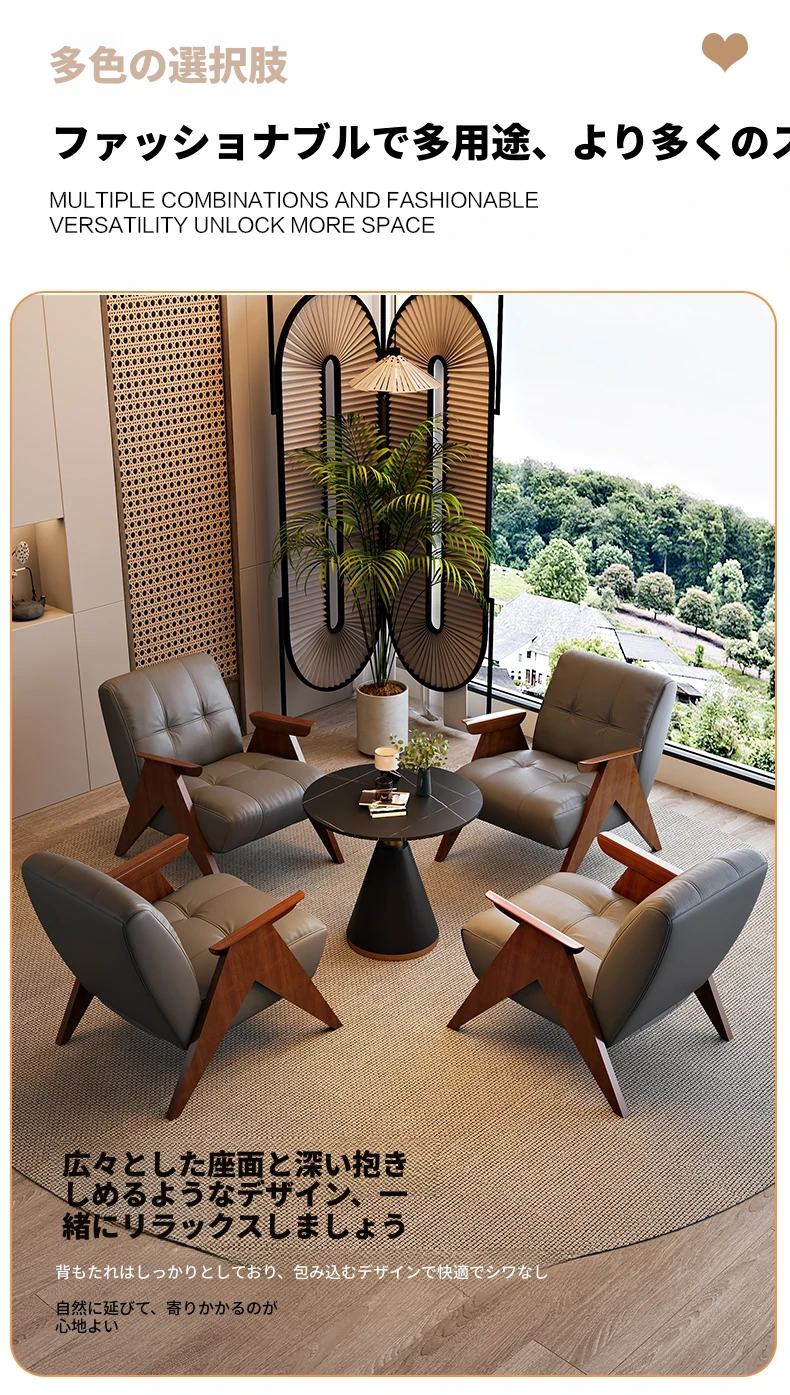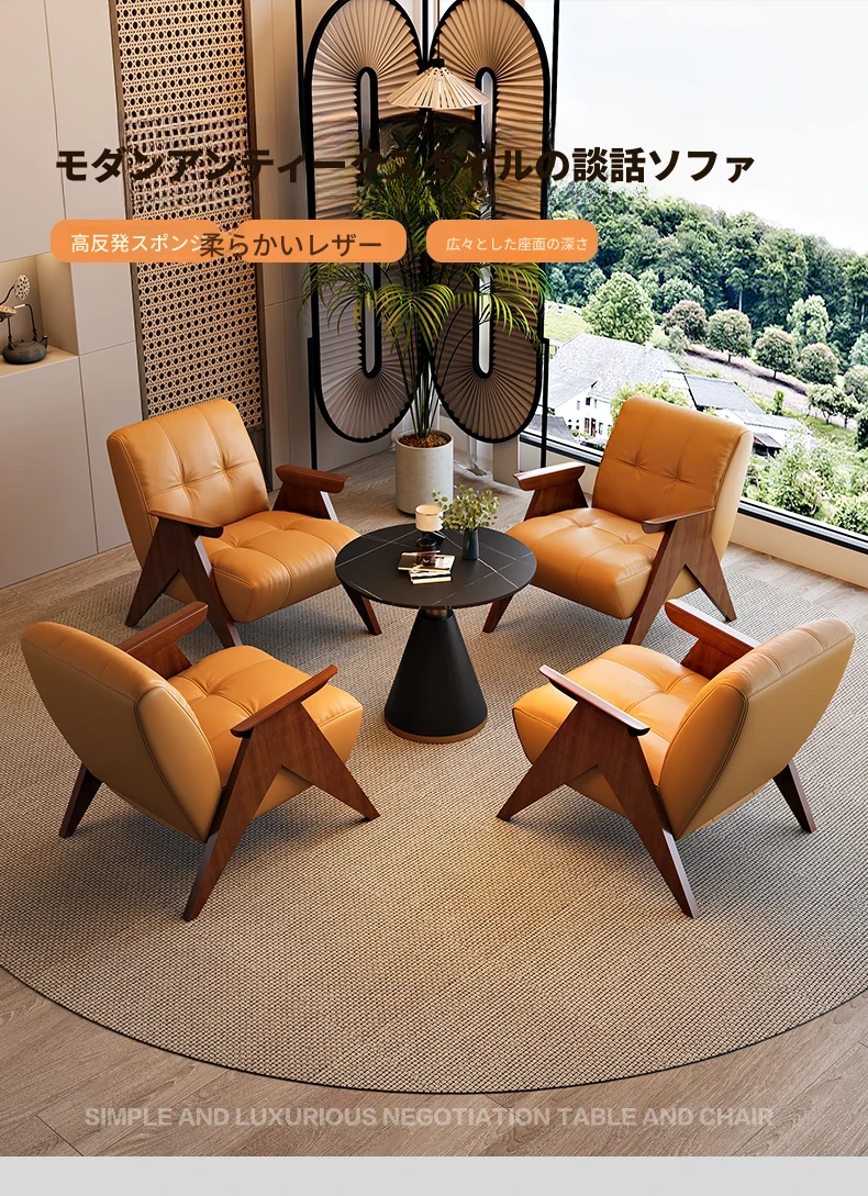 ビジネスミーティングに最適!軽やかでラグジュアリーな待機スペースを演出するホテルロビー・オフィス用のテーブル&チェアセット。快適なソファでお客様をお迎えし、リラックスしたひとときを提供します。