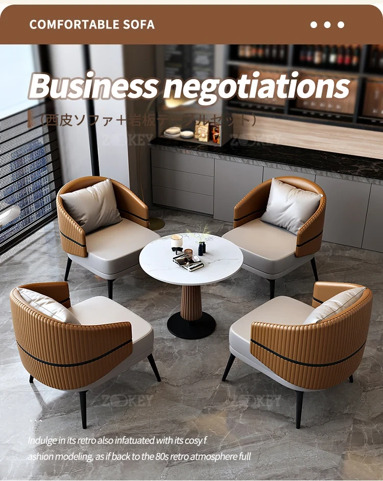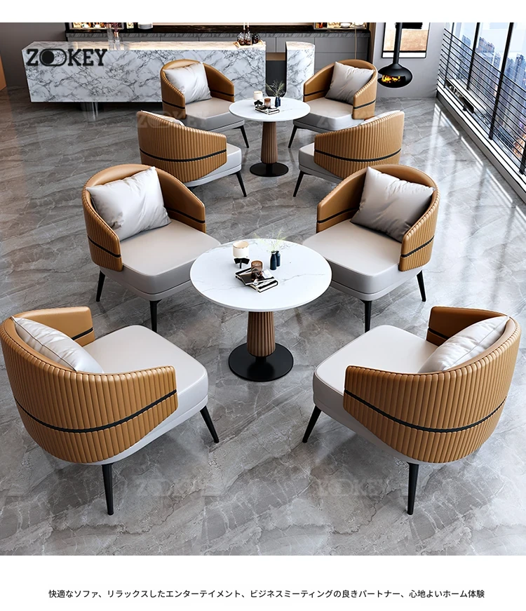 ホテルのロビーに最適!ビジネス会議や洽談に最適なソファ・テーブルセット。ラグジュアリーな休憩スペースを演出する洗練されたカフェテーブル&チェア。心地よいひとときをお楽しみください!