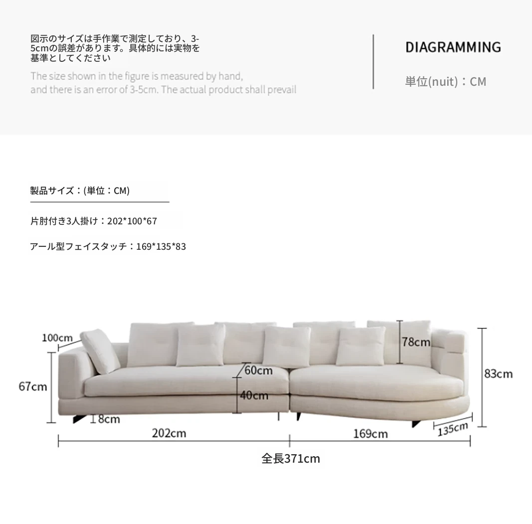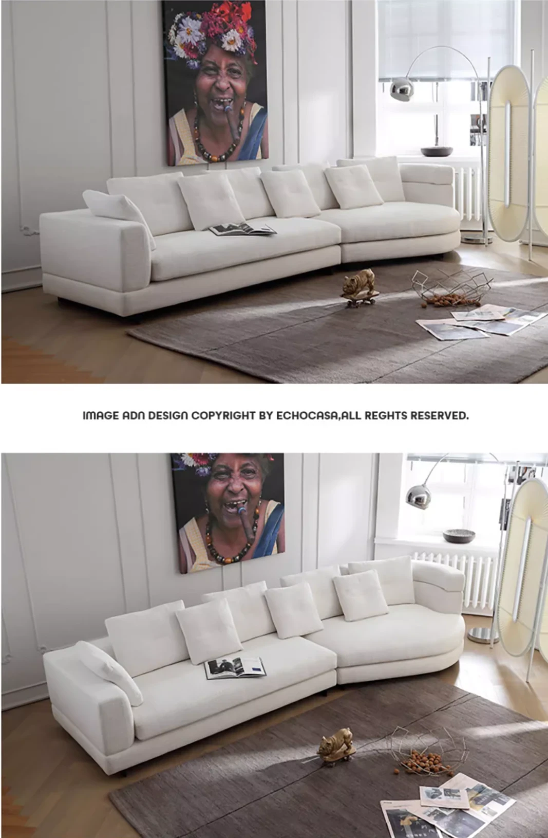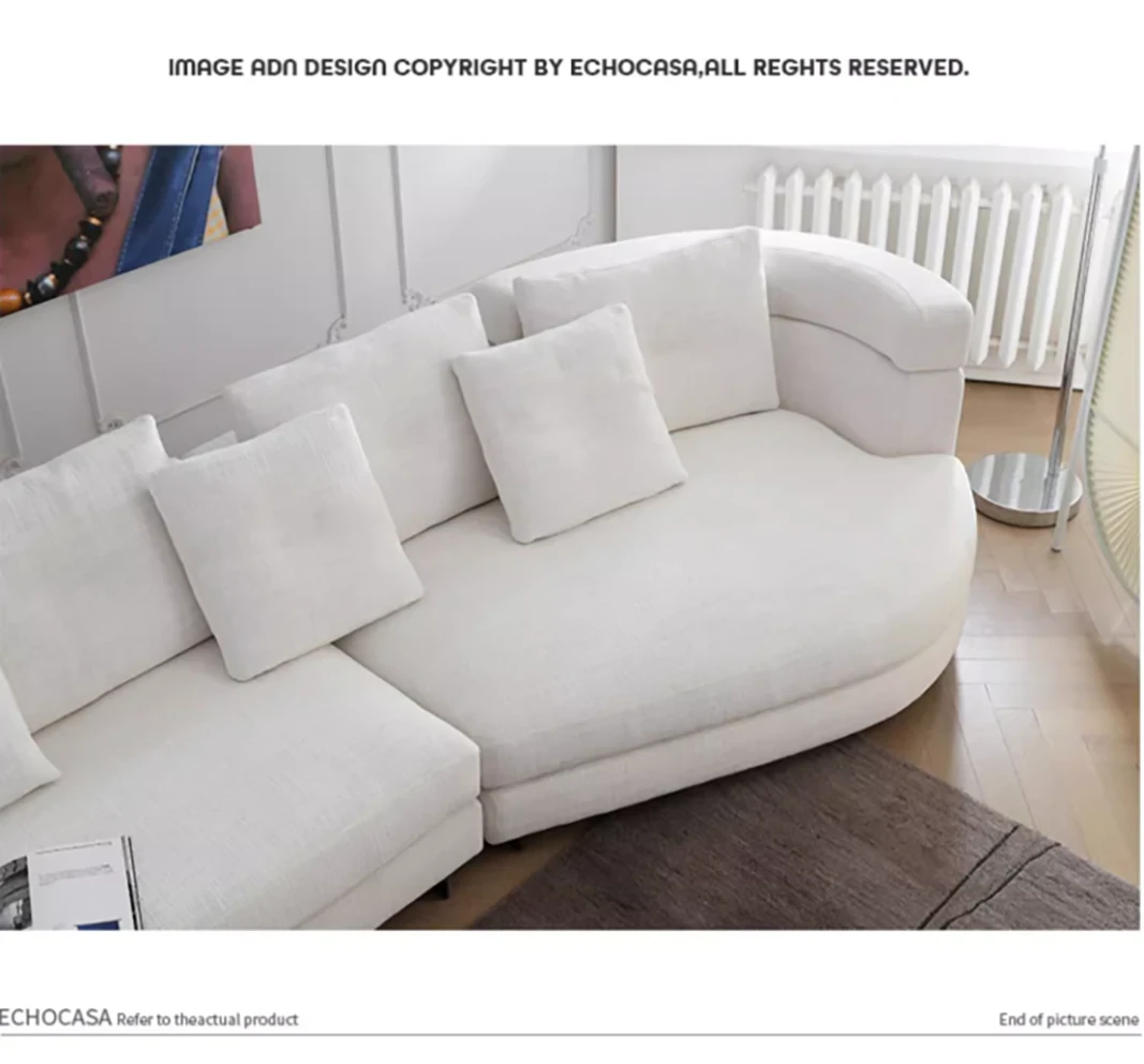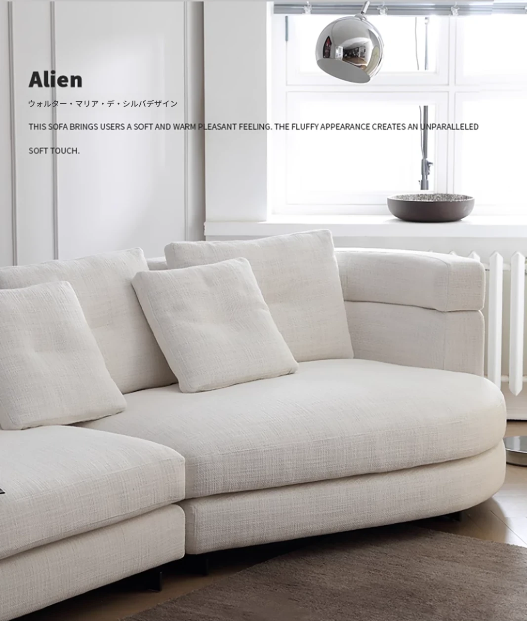 イタリアンスタイルのファブリックソファ - 高級デザイナー家具、別荘リビングに最適なエレガントなアーチ型コーナー&異形デザインのカウチソファ。快適さと美しさを兼ね備えた、特別な空間を演出します!