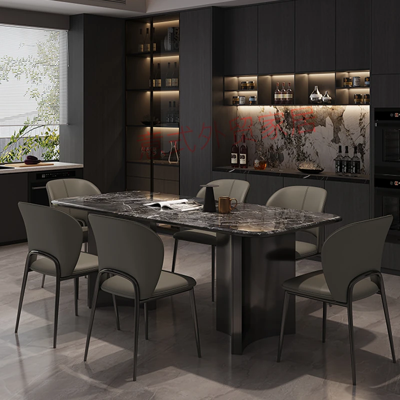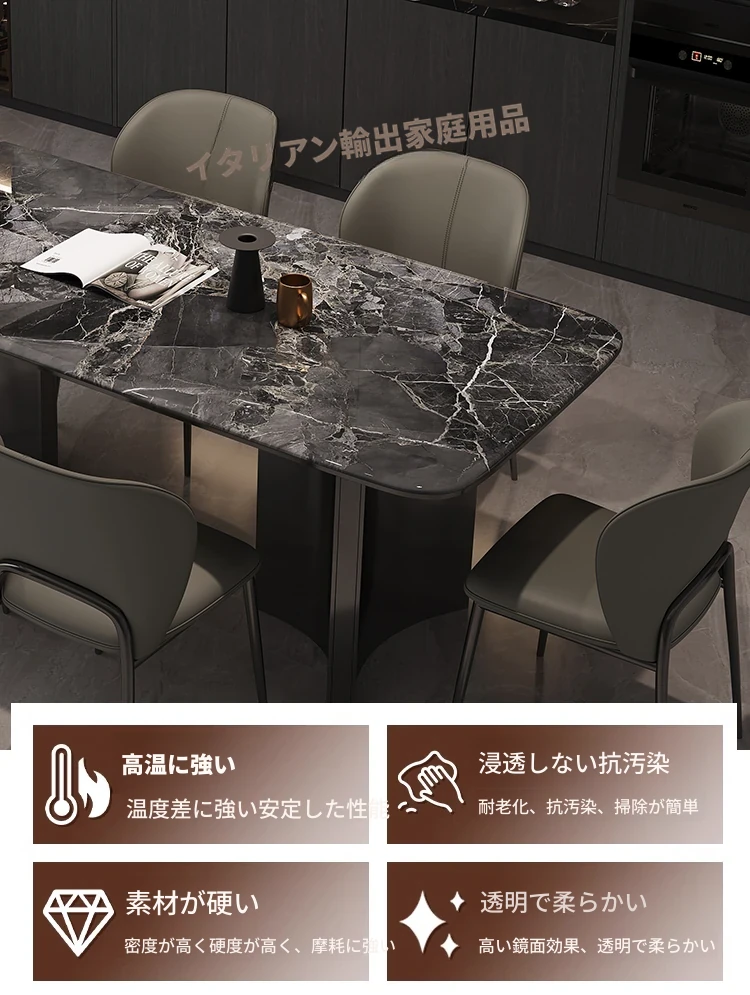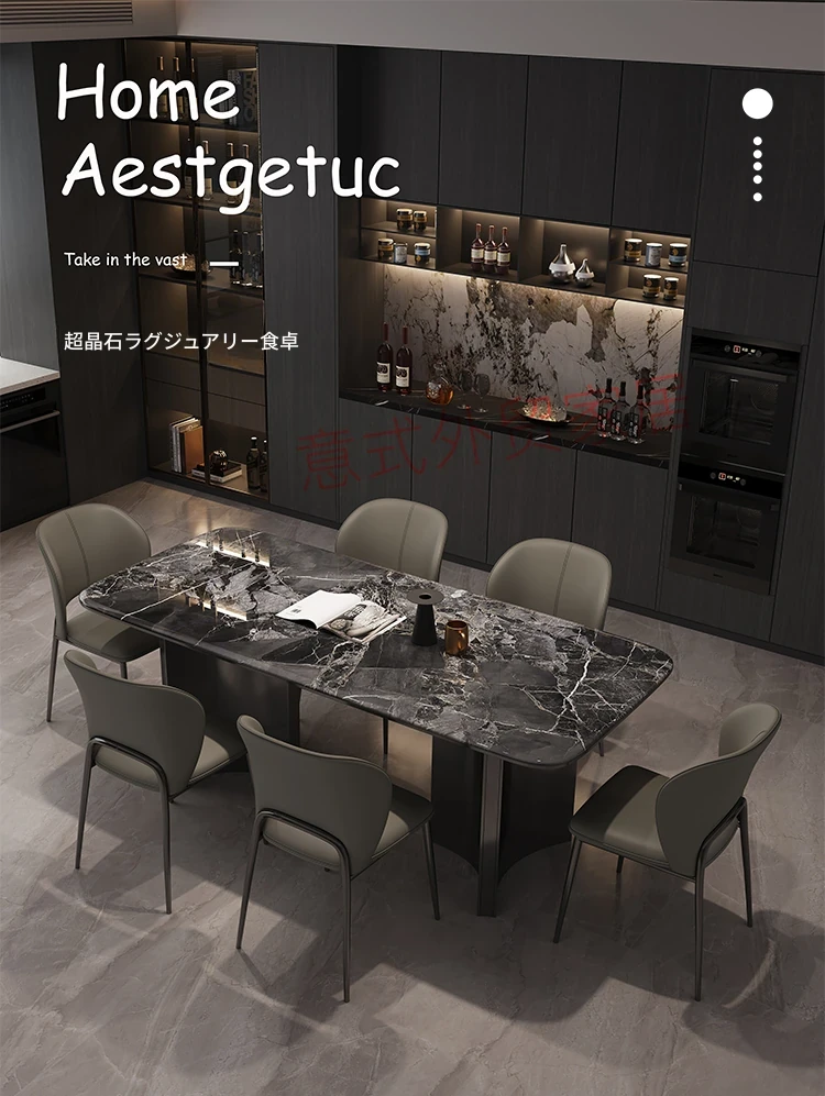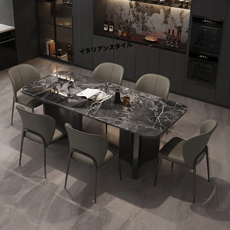 高級感あふれる大理石ダイニングテーブルとデザイナー椅子のセット!イタリアンミニマルデザインの超クリスタルストーン製、モダンでシンプルなスタイルで、あなたの食卓を格上げします。家族や友人との特別なひとときを演出!