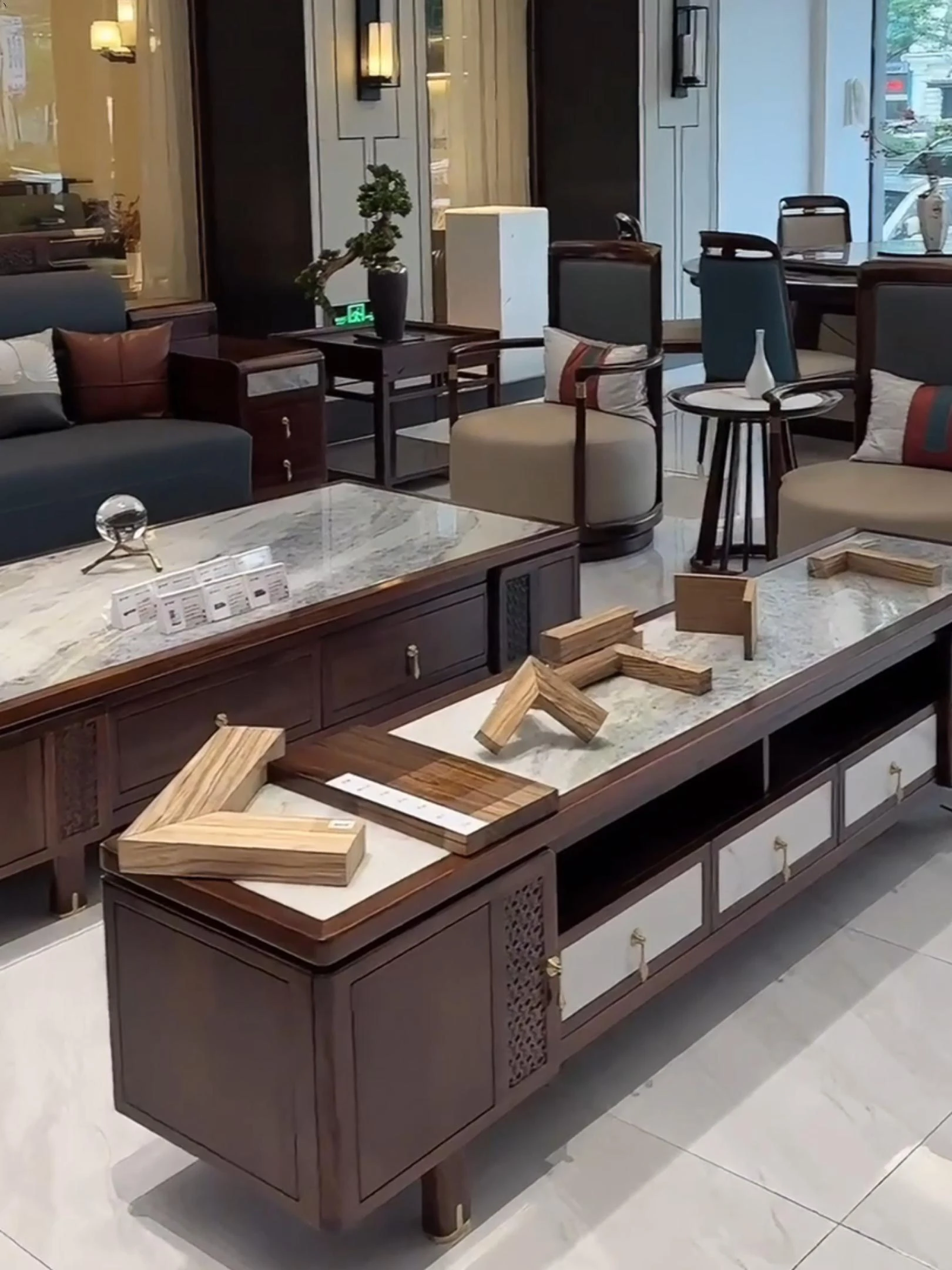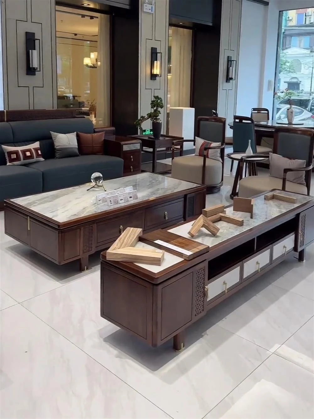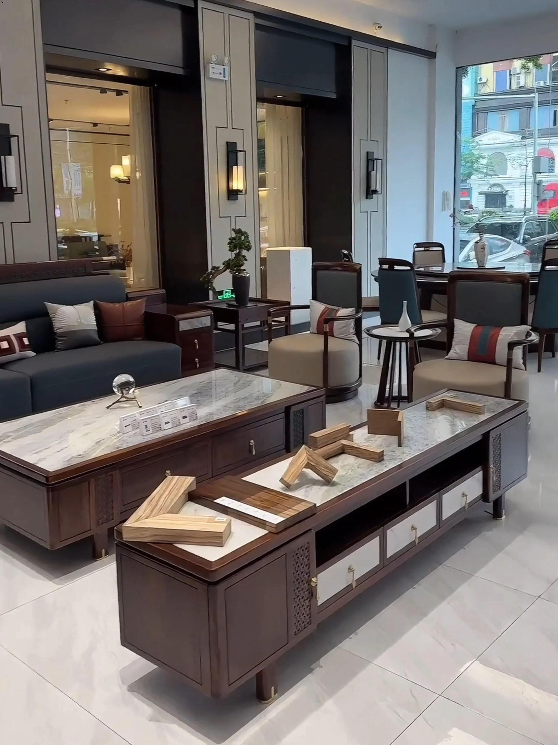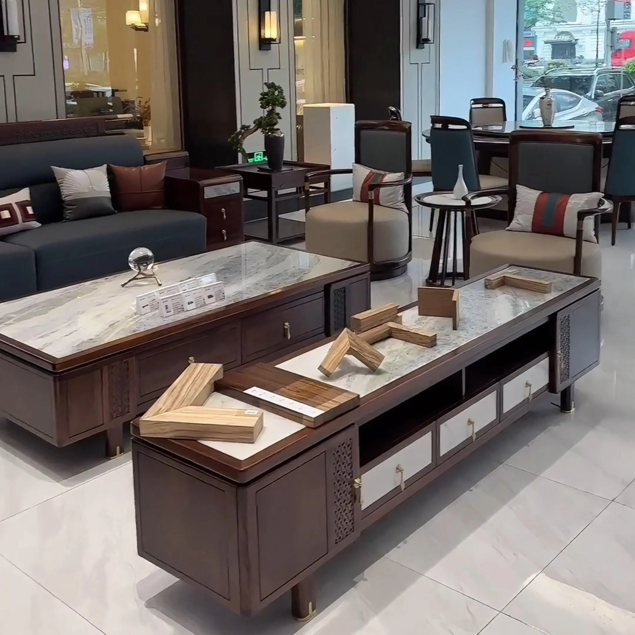 新中式ウッドソファー - シンプルでラグジュアリーな本革、禅の美学を感じる高級別荘向けの中国風家具。広々としたリビングルームに最適!