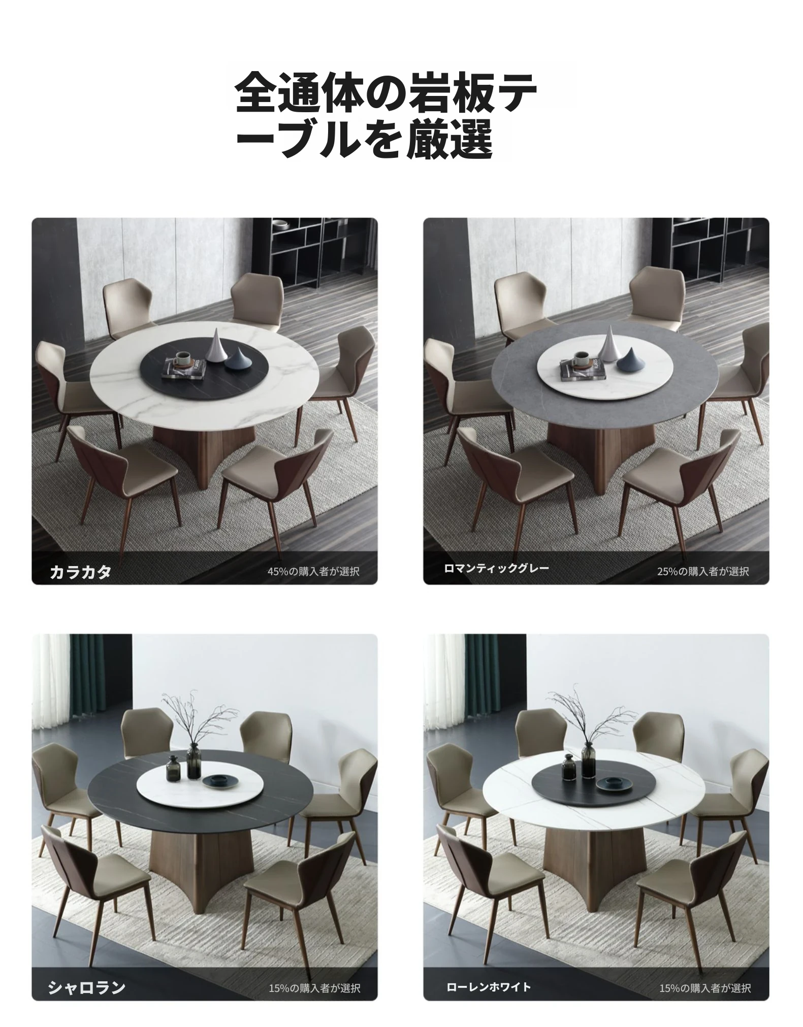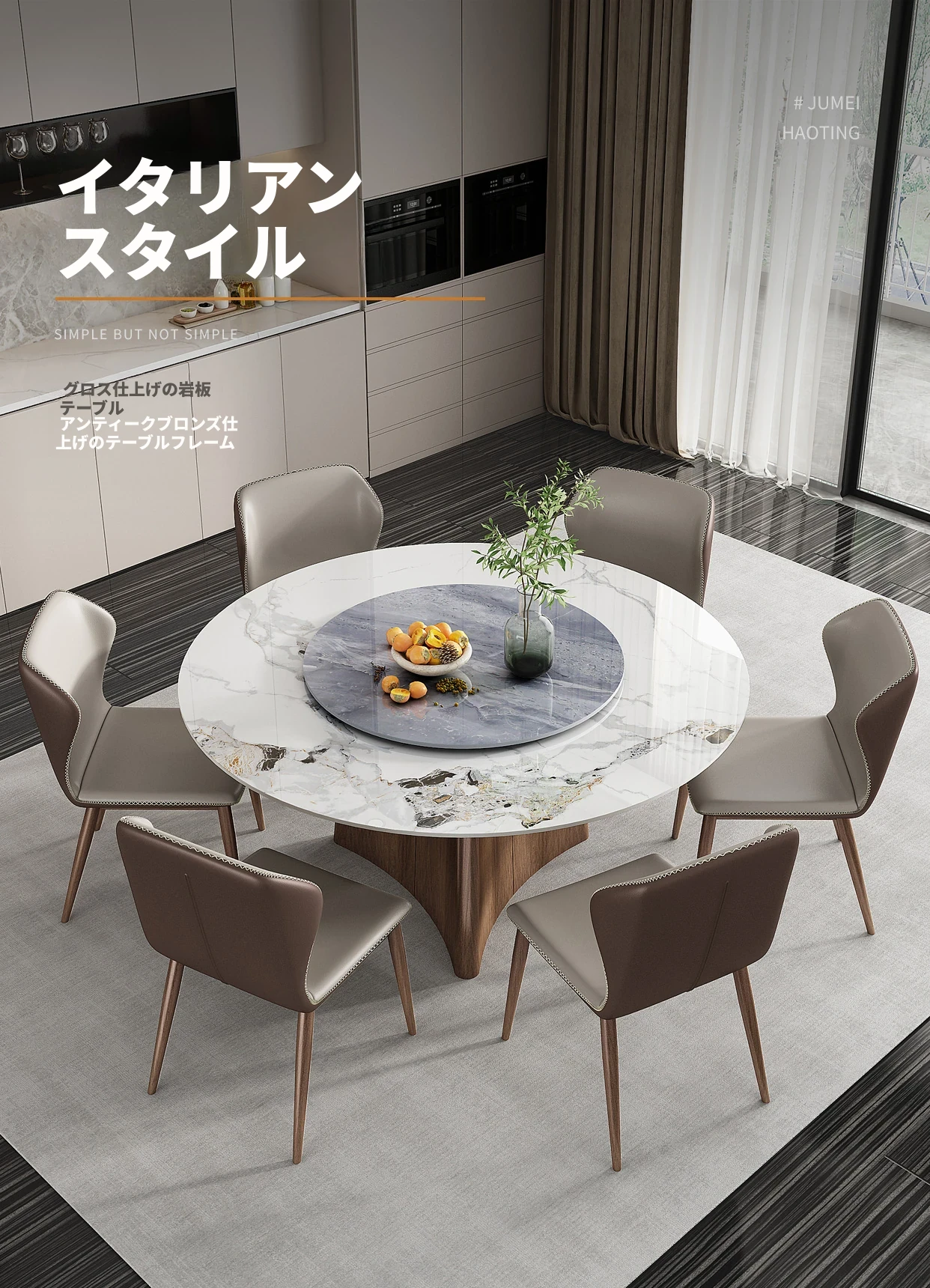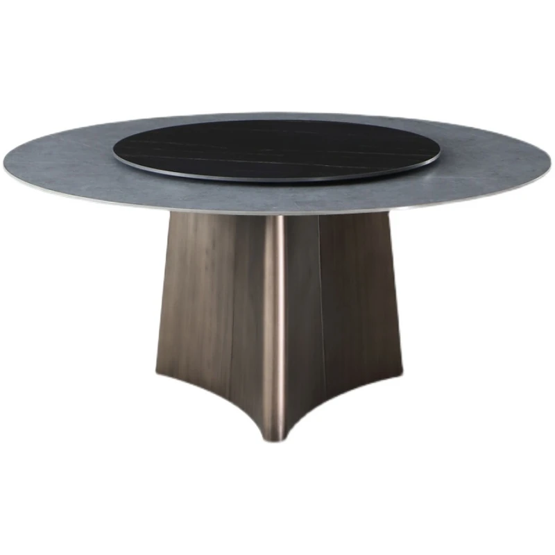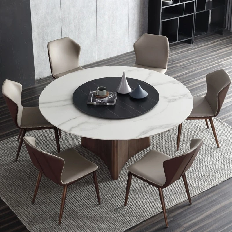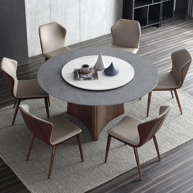 高級感あふれる軽奢岩板ダイニングテーブルセット - モダンシンプルな円形デザイン、回転盤付きで使い勝手抜群!8人用、豪華な別荘や家庭にぴったりな円卓。あなたの食卓を特別な空間に演出します!