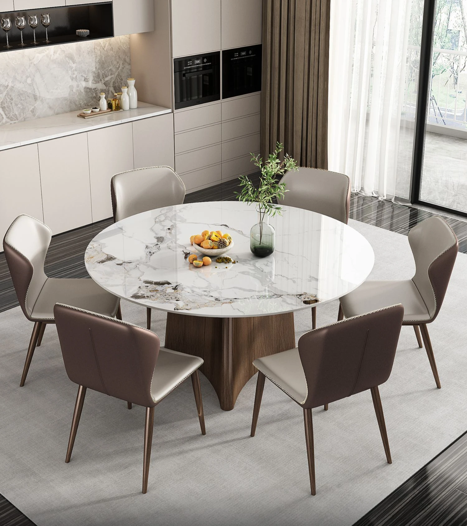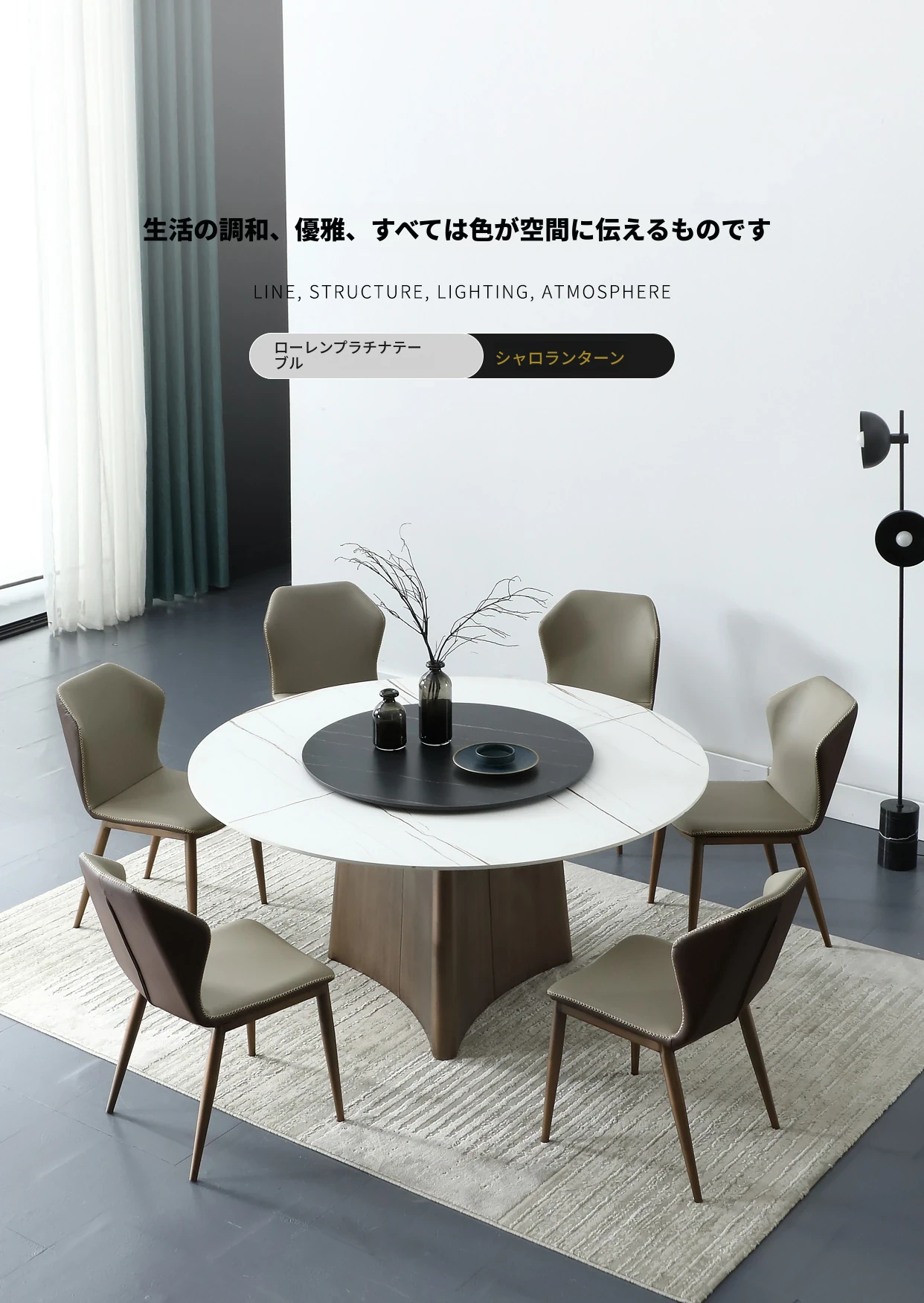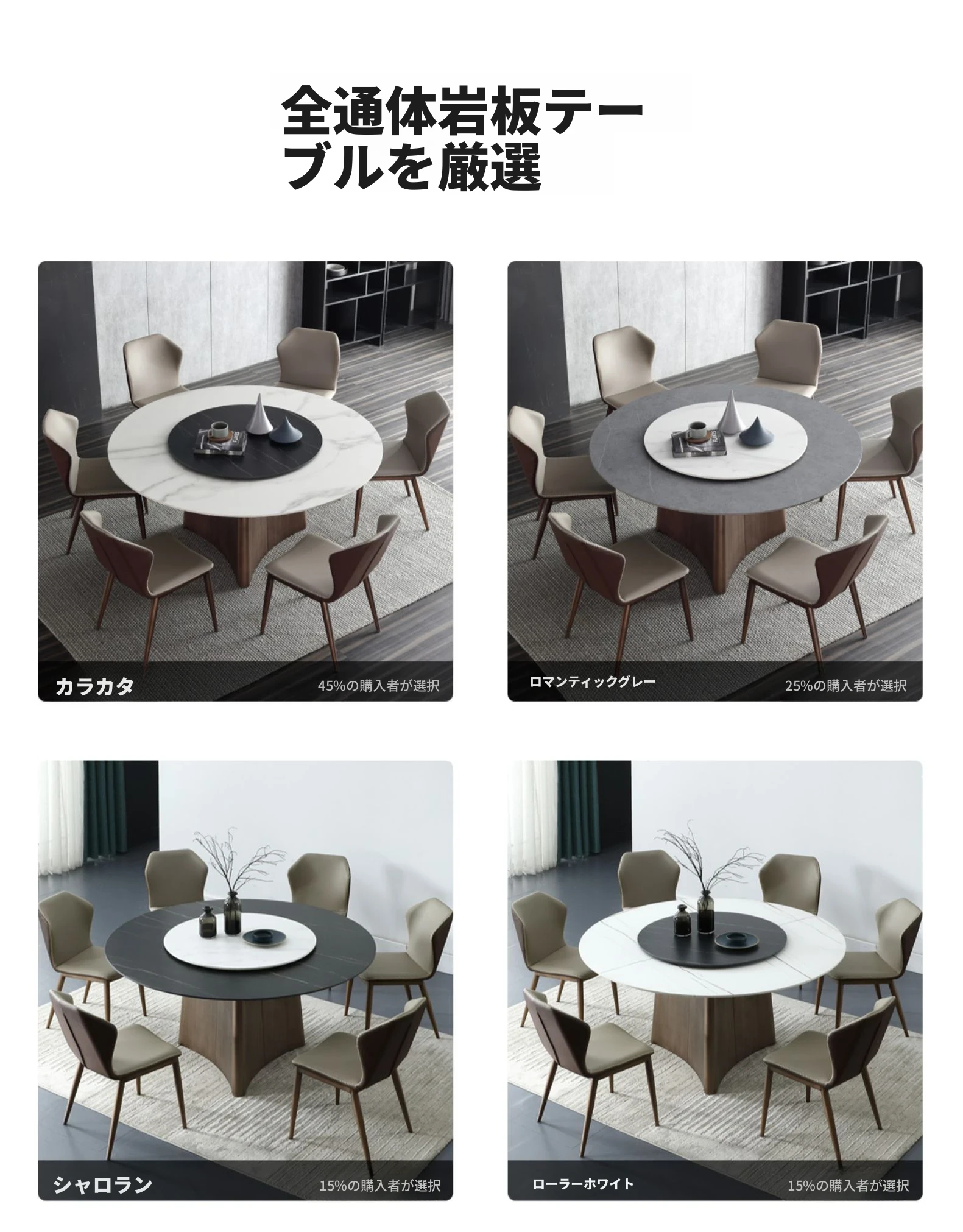 高級感あふれる軽奢岩板ダイニングテーブルセット - モダンシンプルな円形デザイン、回転盤付きで使い勝手抜群!8人用、豪華な別荘や家庭にぴったりな円卓。あなたの食卓を特別な空間に演出します!