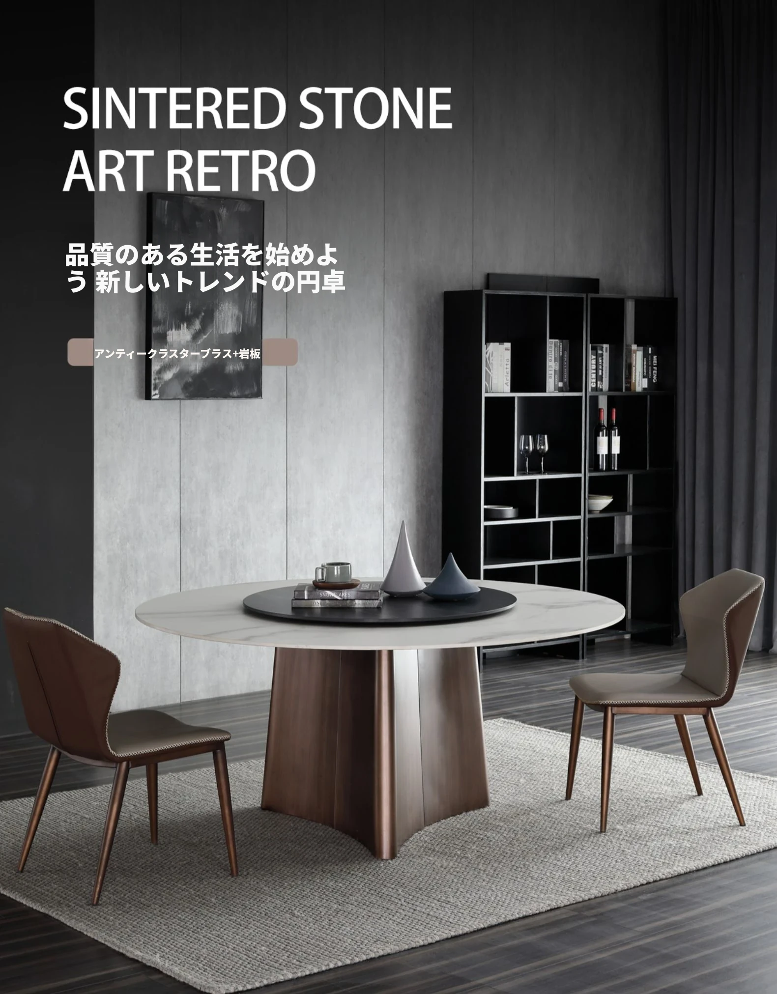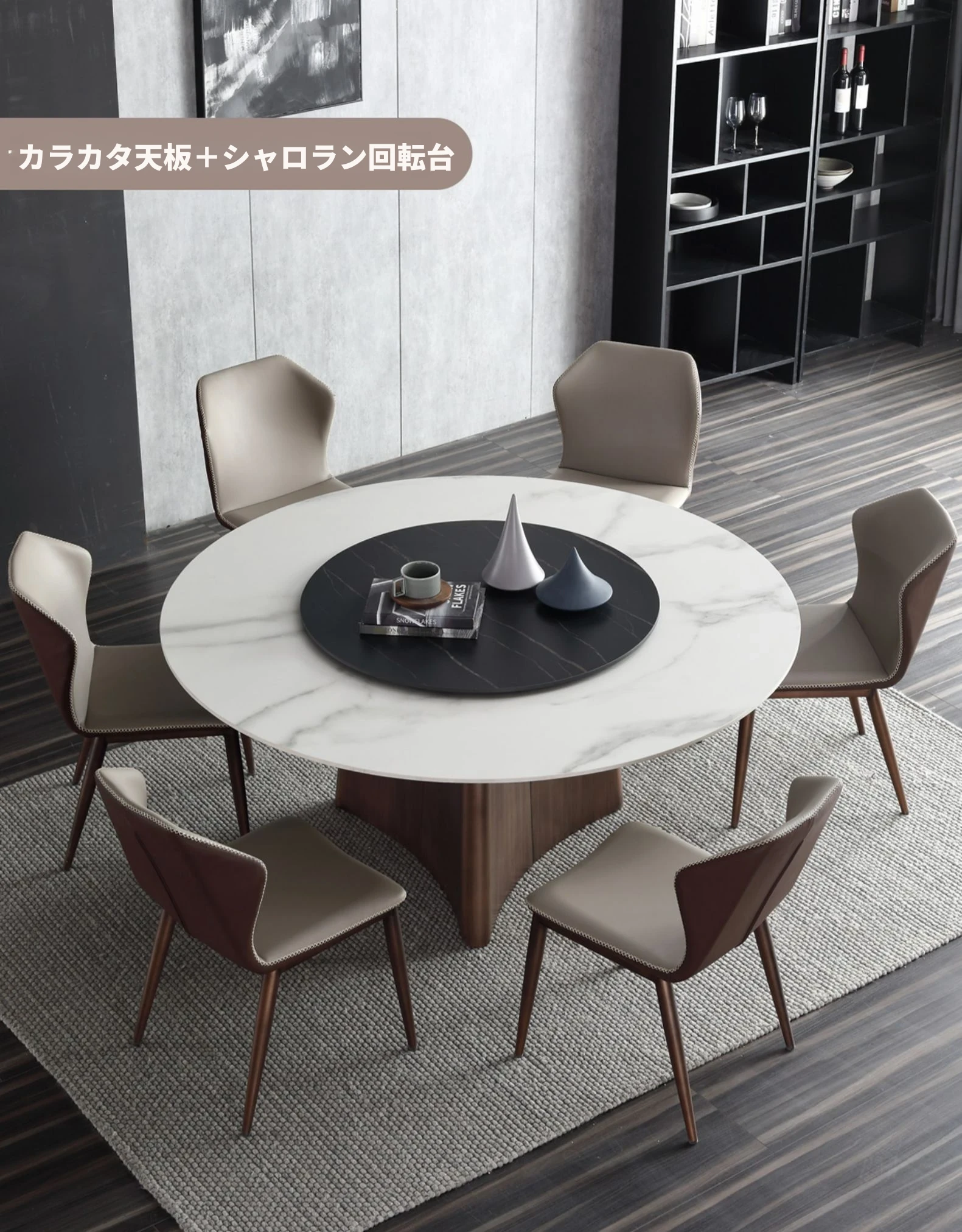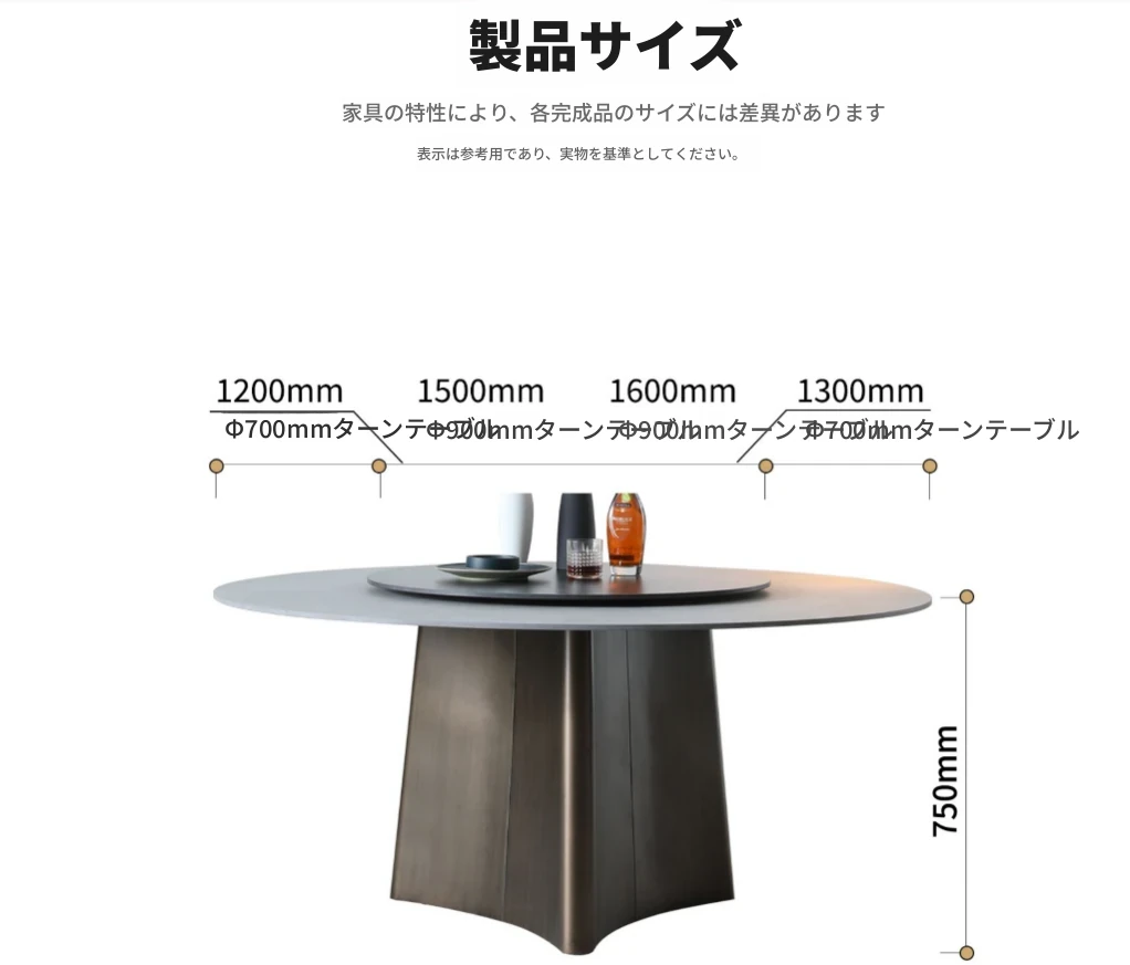 1.3メートル石板ダイニングテーブル【80CMターンテーブル付き】