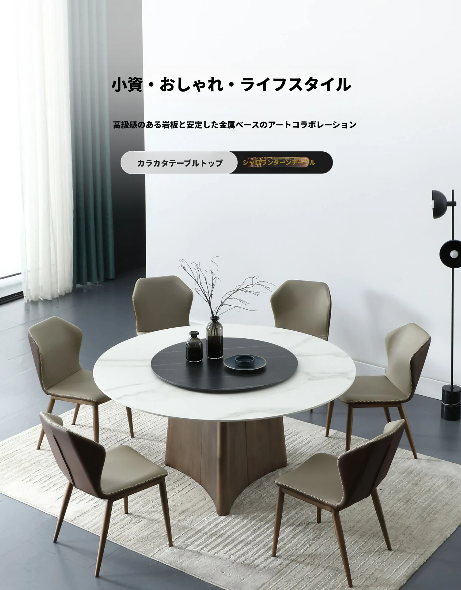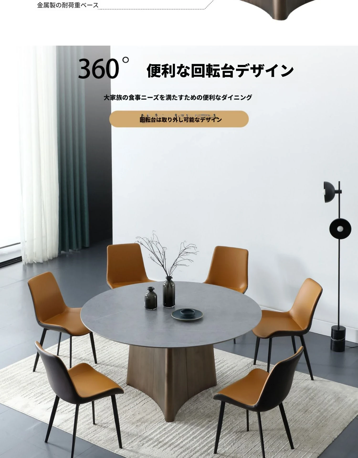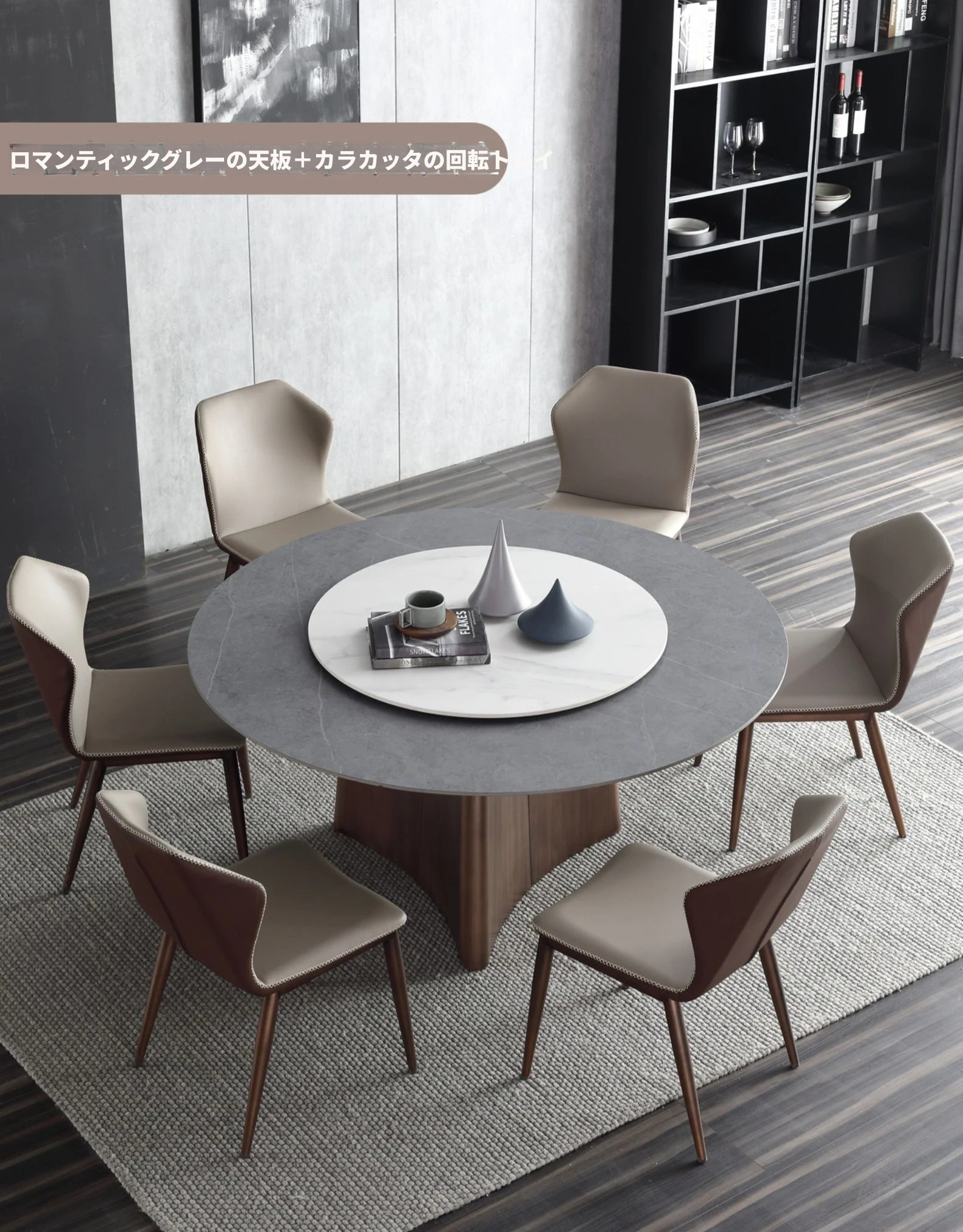 1.2メートル石板ダイニングテーブル【70CMターンテーブル付き】