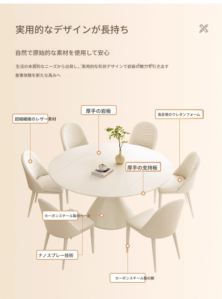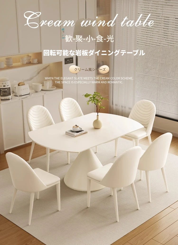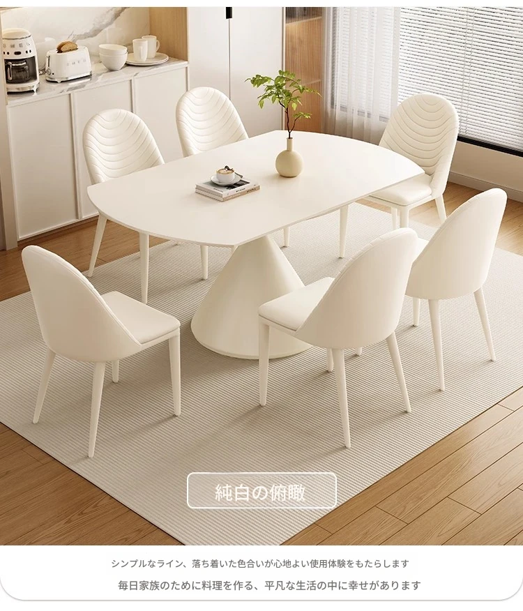 ホワイトクリーム風ダイニングテーブル&チェアセット - 高級感漂うフレンチスタイル、小型住宅やレストランに最適なソフトバックチェア!ホテルにもぴったりなデザインで、心地よい食事空間を演出します。