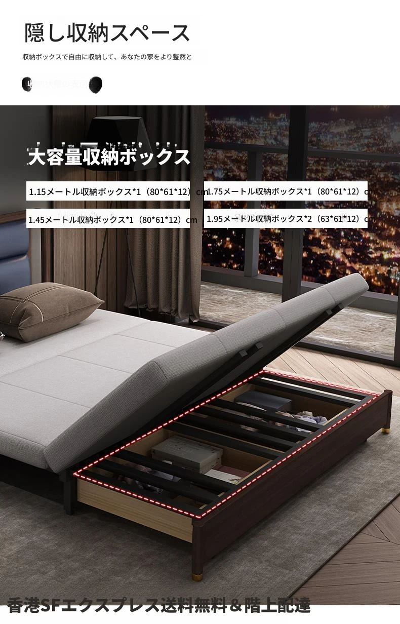 【収納ボックスあり】1.95メートルラテックス+ウレタンマットタイプ
