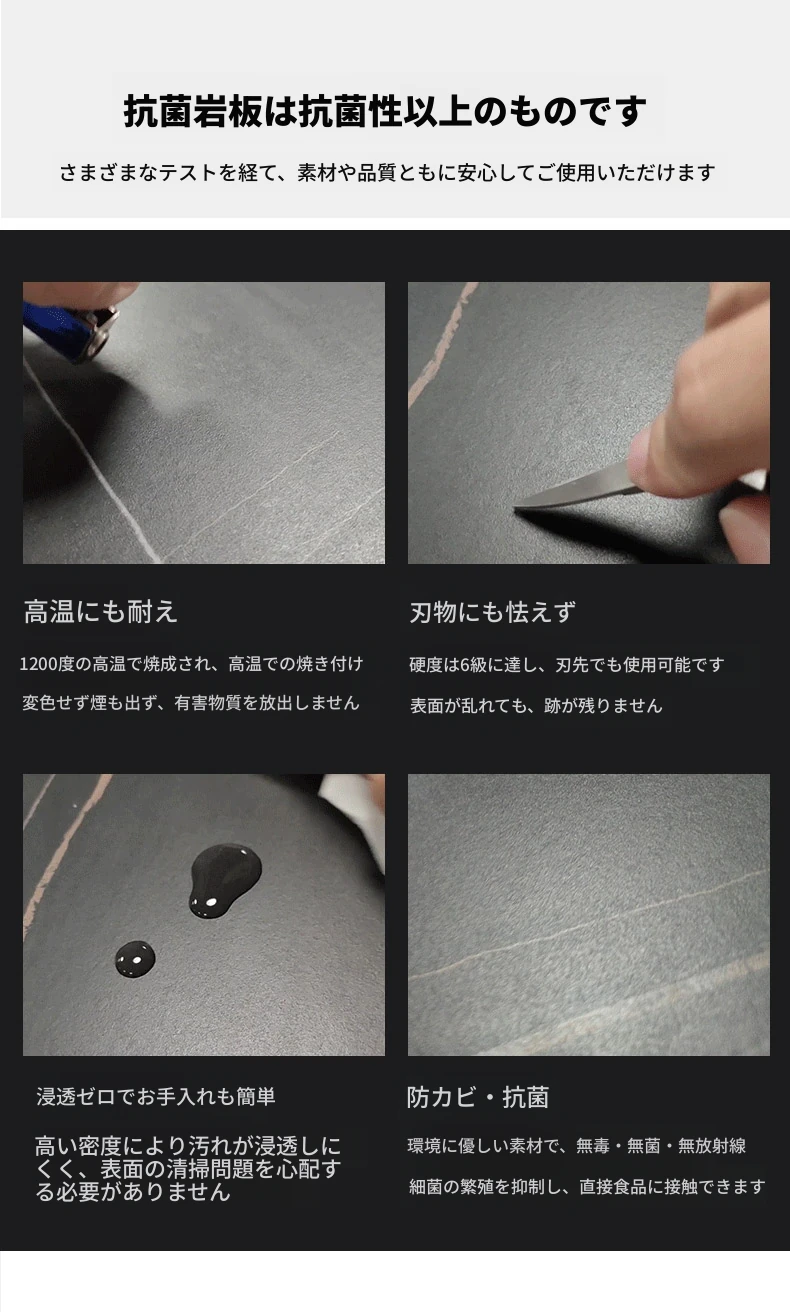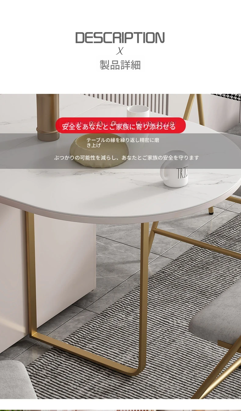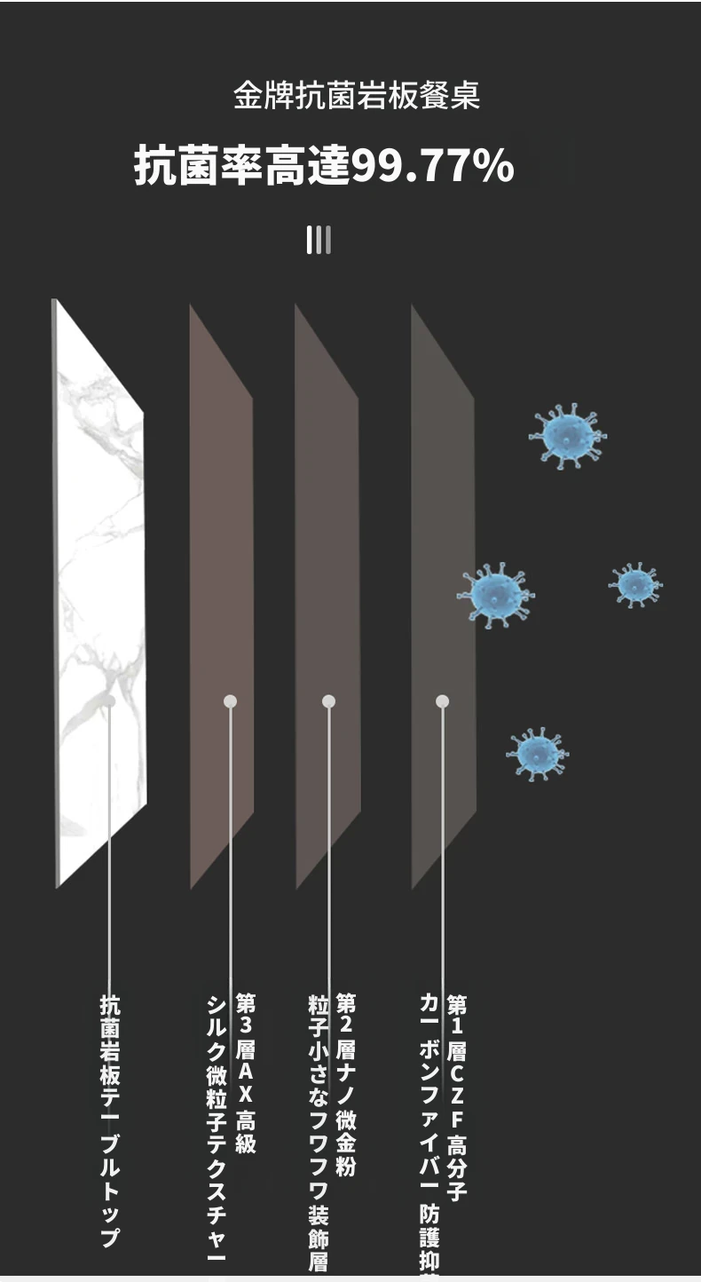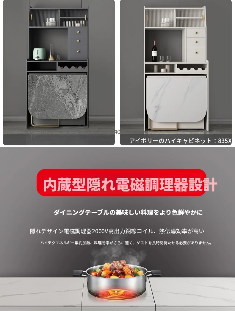 (アイボリー)アップグレード電磁調理器付き岩板ダイニングテーブル