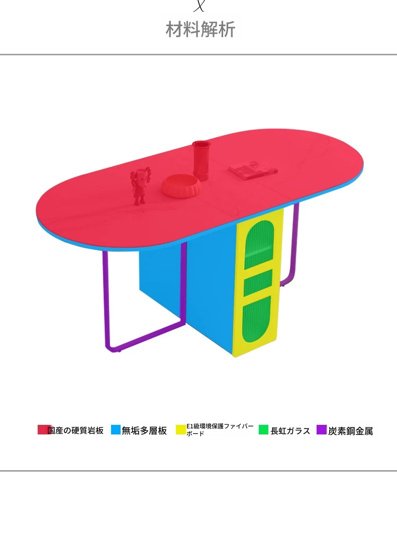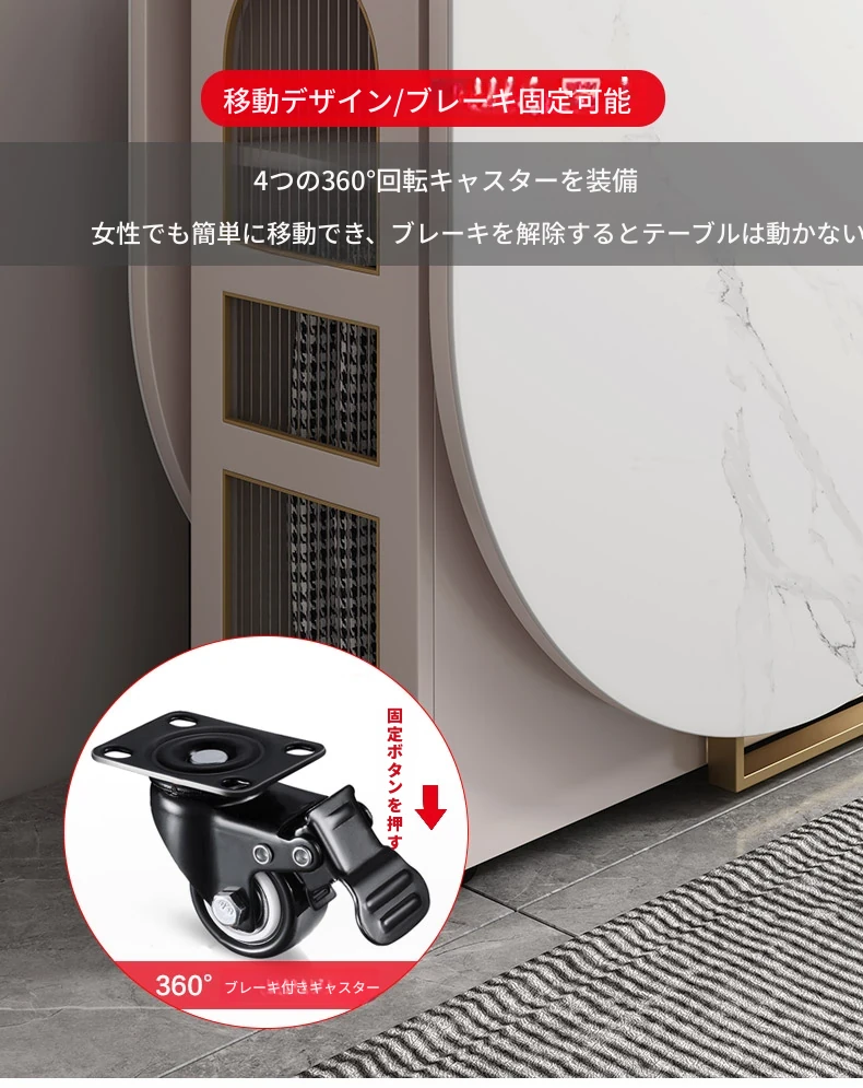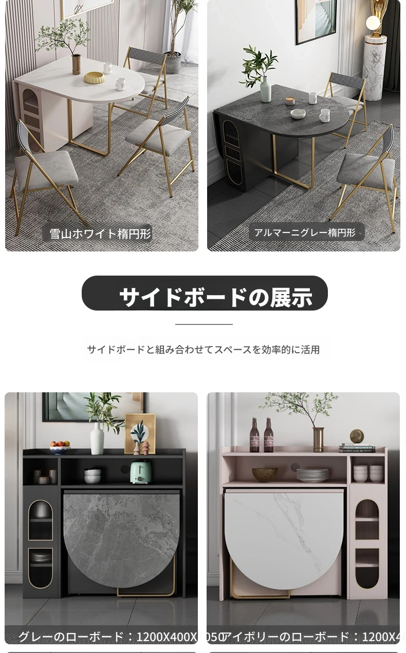 (アイボリー)岩板実木ダイニングテーブル 実木キャビネット