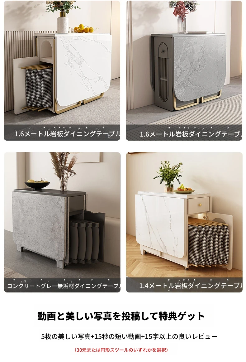 [香港送料無料]折りたたみ式ロックボードテーブル - 家庭用小型テーブル&椅子、マルチ機能の隠れた折りたたみ式電磁調理器付きダイニングテーブル。スペースを有効活用し、スタイリッシュな食事体験をお楽しみください!