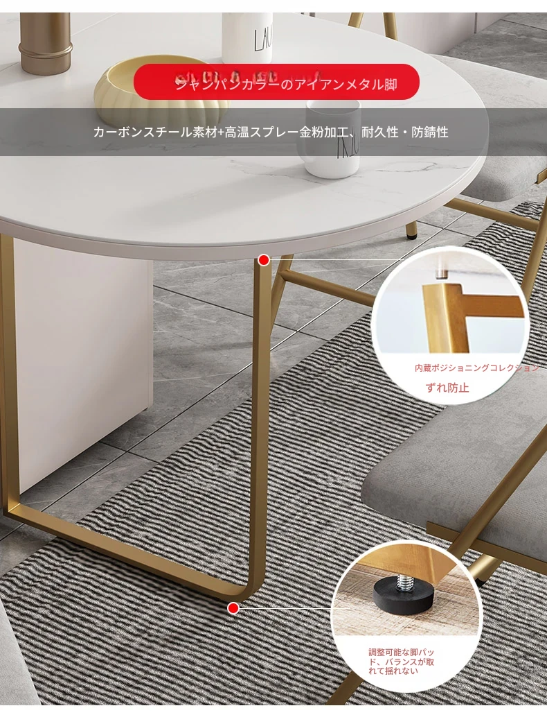 (アイボリー)岩板ダイニングテーブル+4脚カーボンスチール