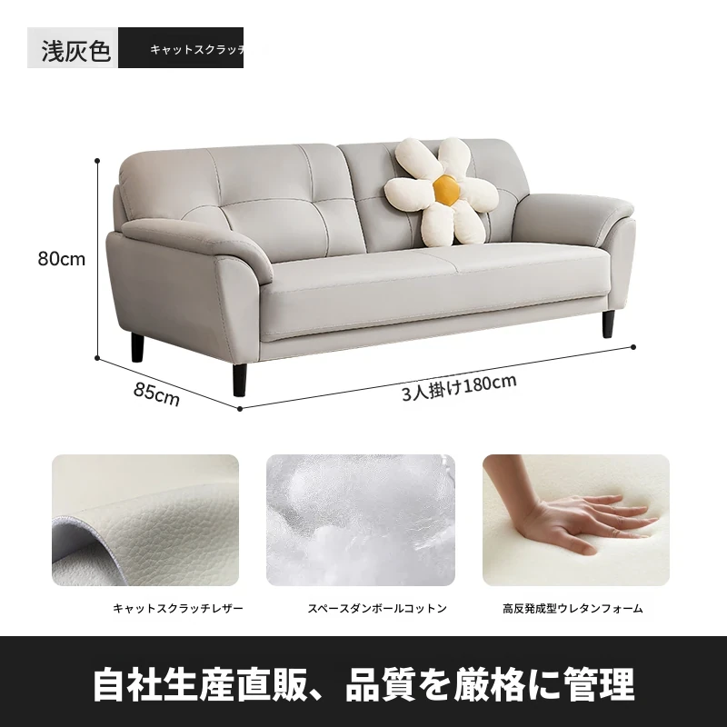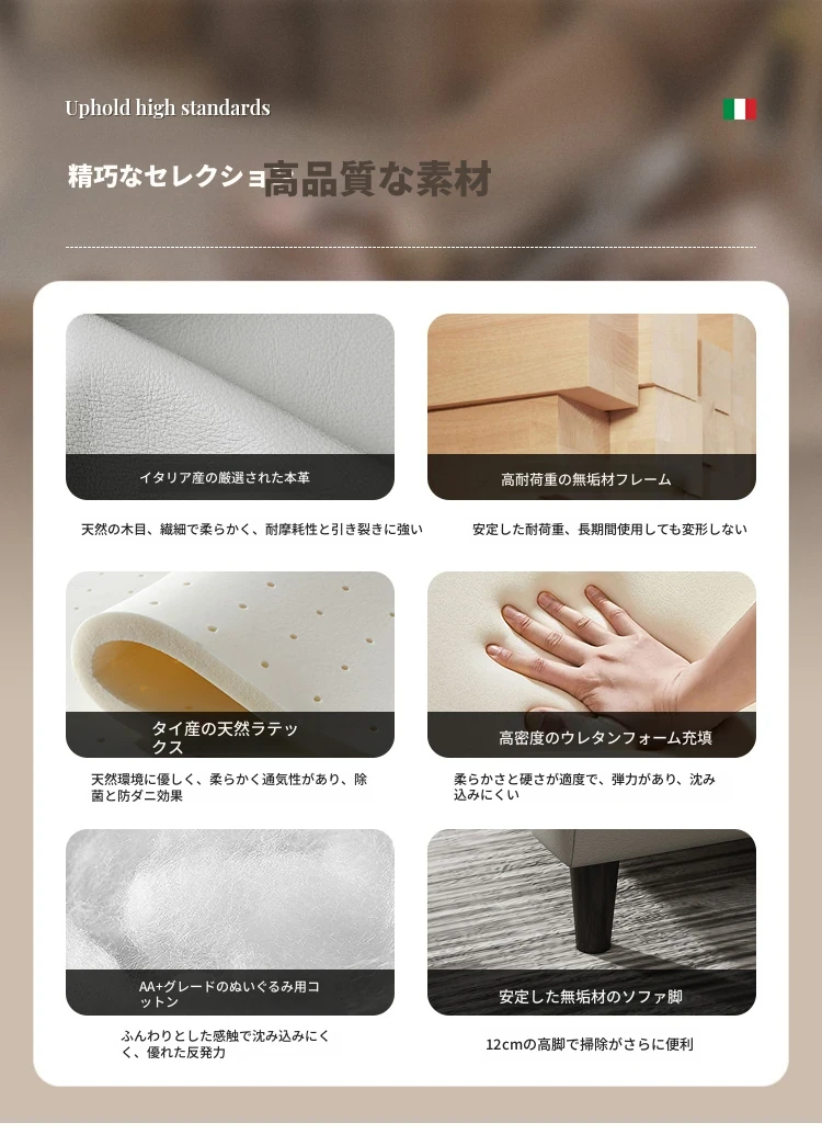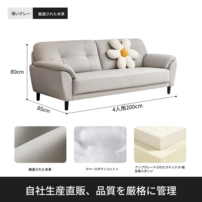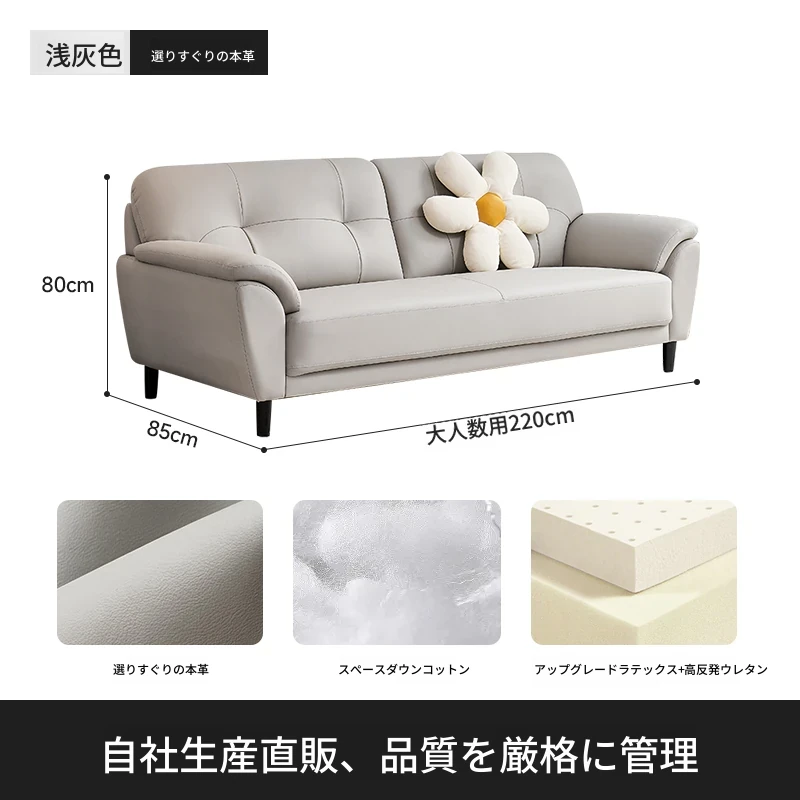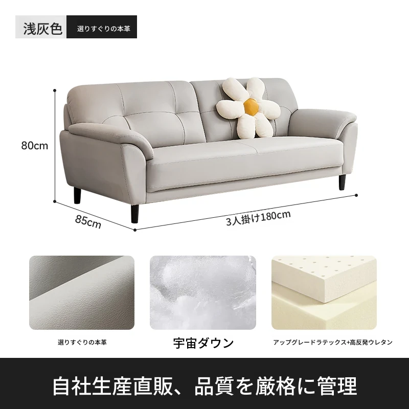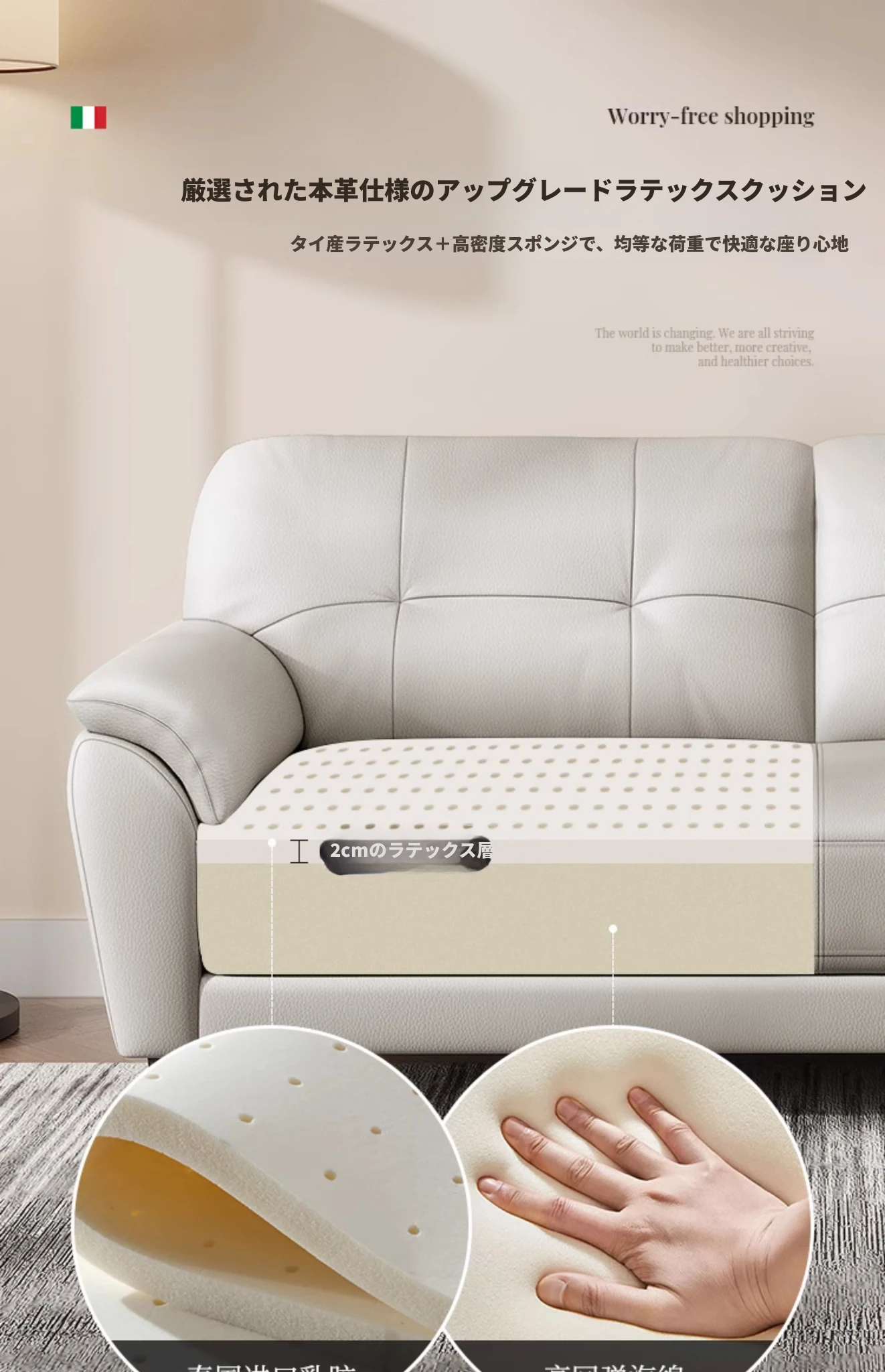 【三人1.8メートル】厳選本革【ラテックスマット】厚手トップレイヤー