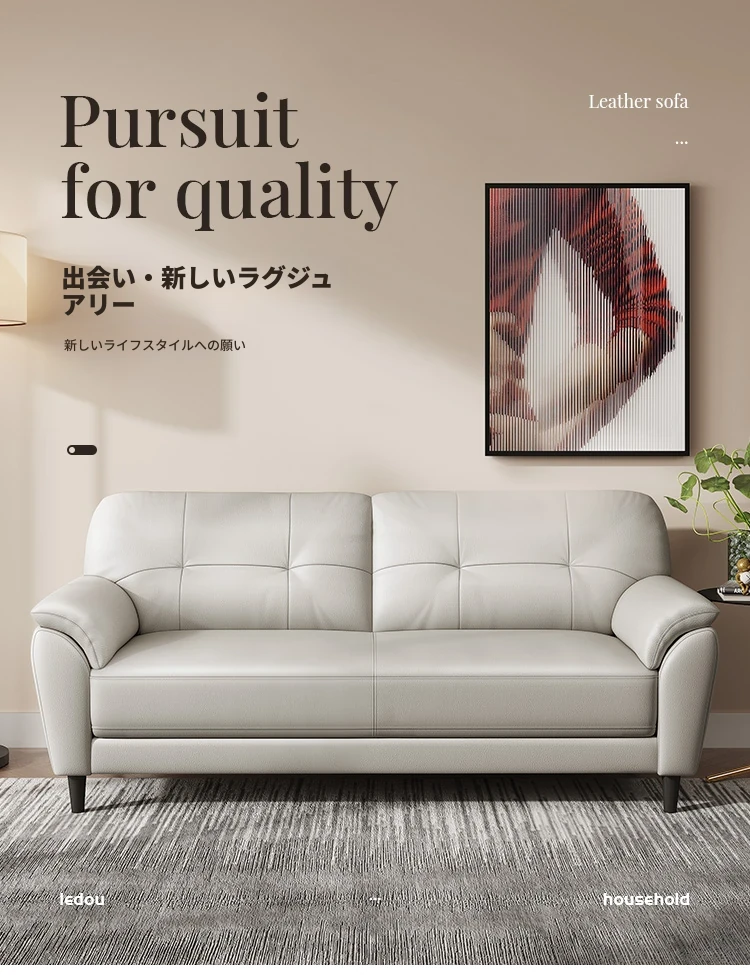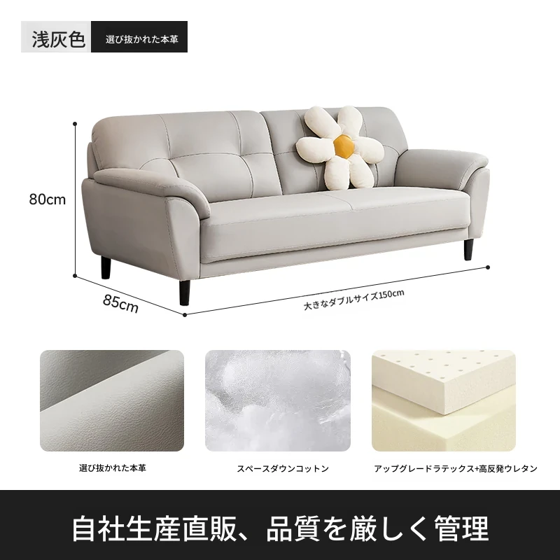 [香港送料無料] 本革製ダブルソファ シンプルでモダンなデザイン 小型リビングに最適 家庭用・オフィス用にぴったりな皮革ソファ